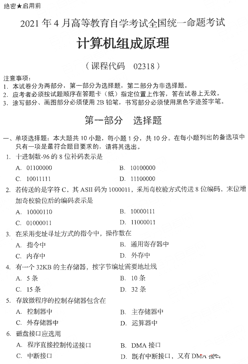 我们为考生提供2021年4月贵州自考02318计算机组成原理真题,下面是2021年4月贵州自考02318计算机组成原理真题内容,更多自考真题试卷请微信搜索"贵州自考网”微信公众号!