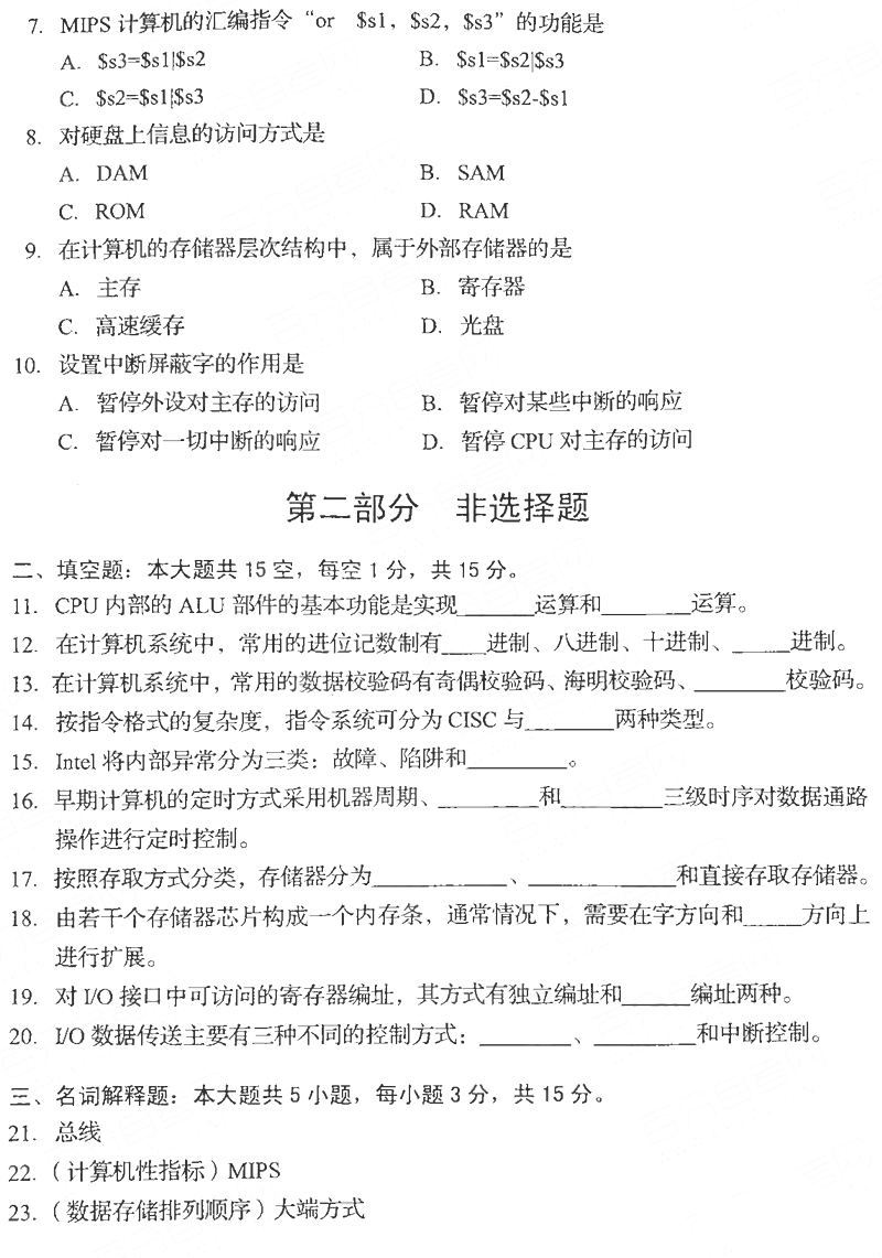本文标签:贵州自考 工学类 2021年4月贵州自考02318计算机组成原理真题