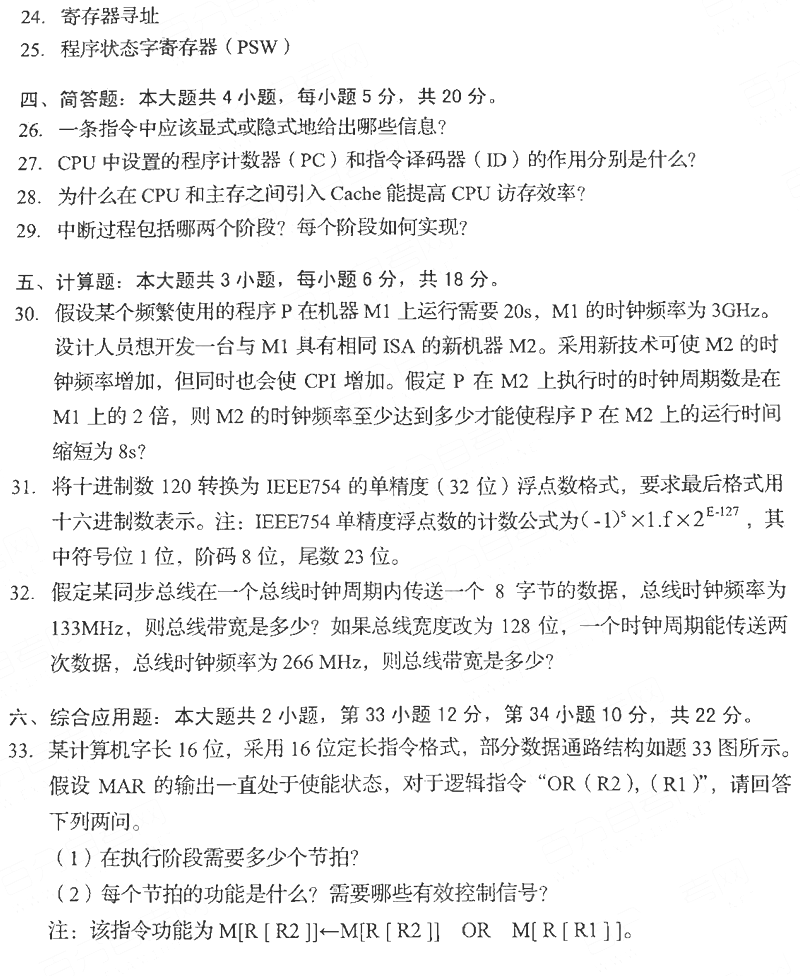 2021年4月贵州自考02318计算机组成原理真题