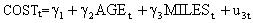 为车辆自购买之日起的年限.已知以下三个备选模型: