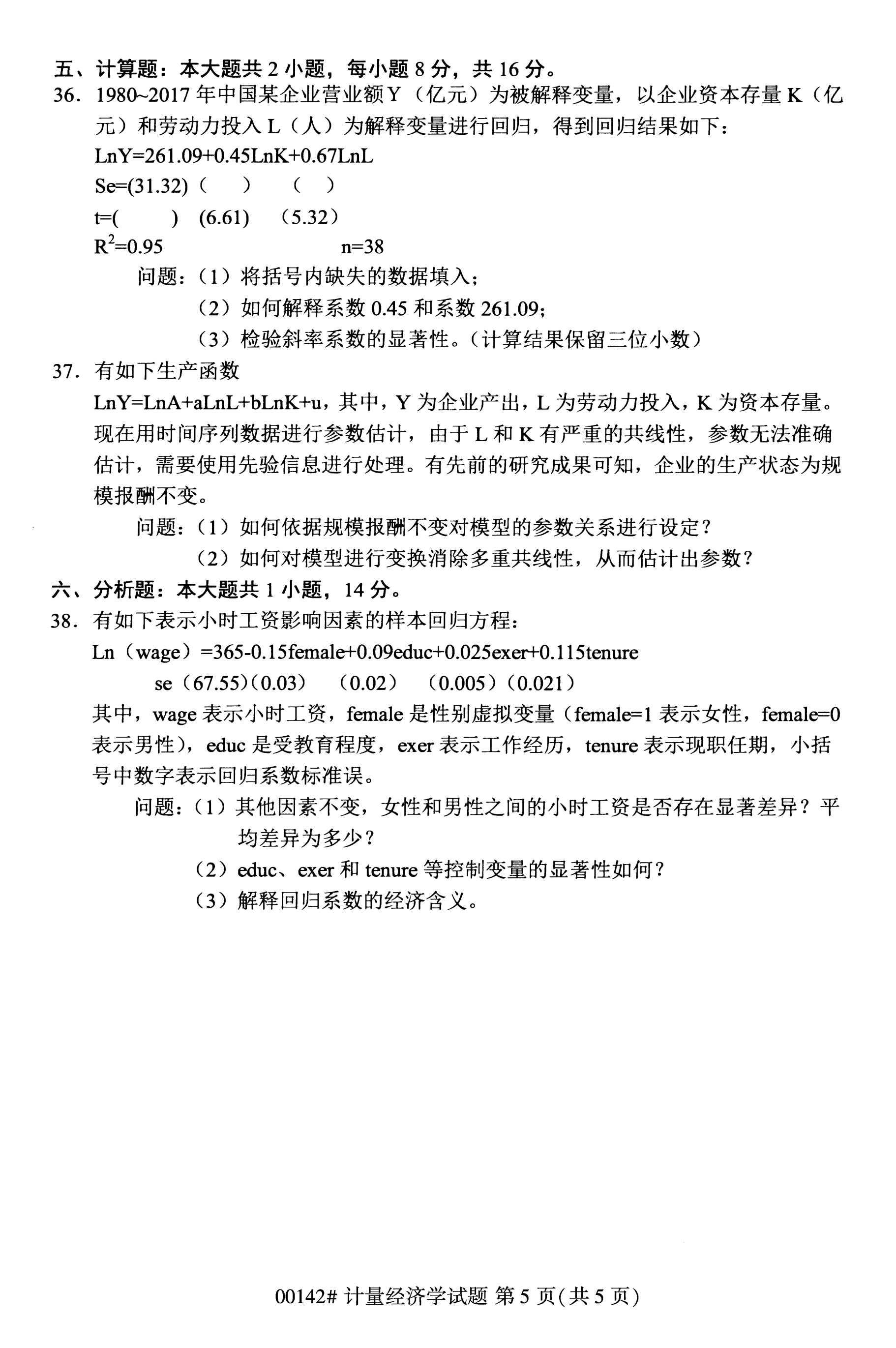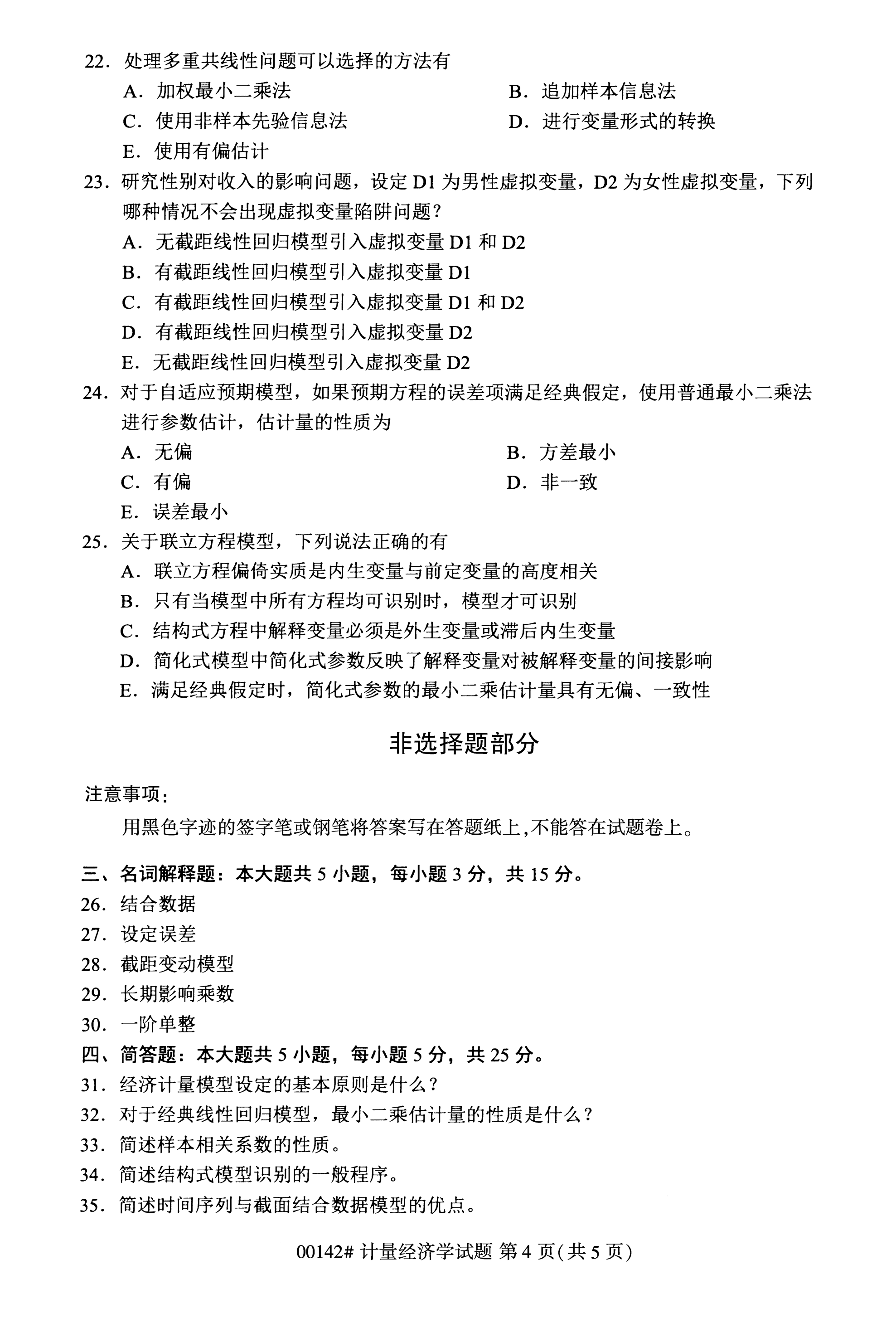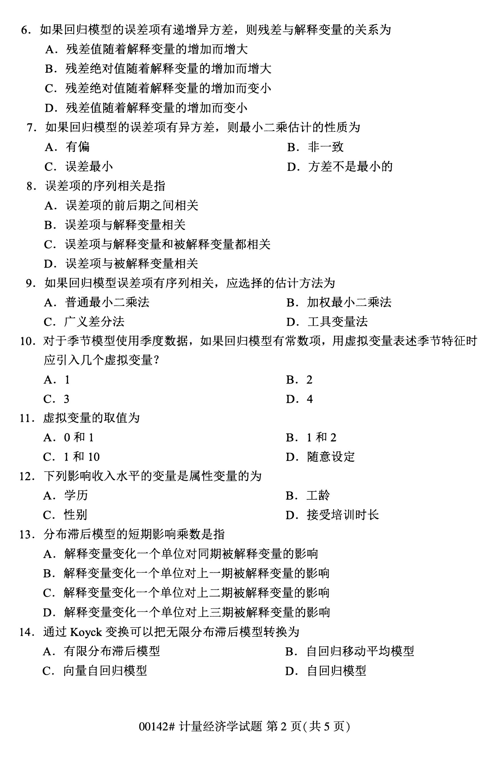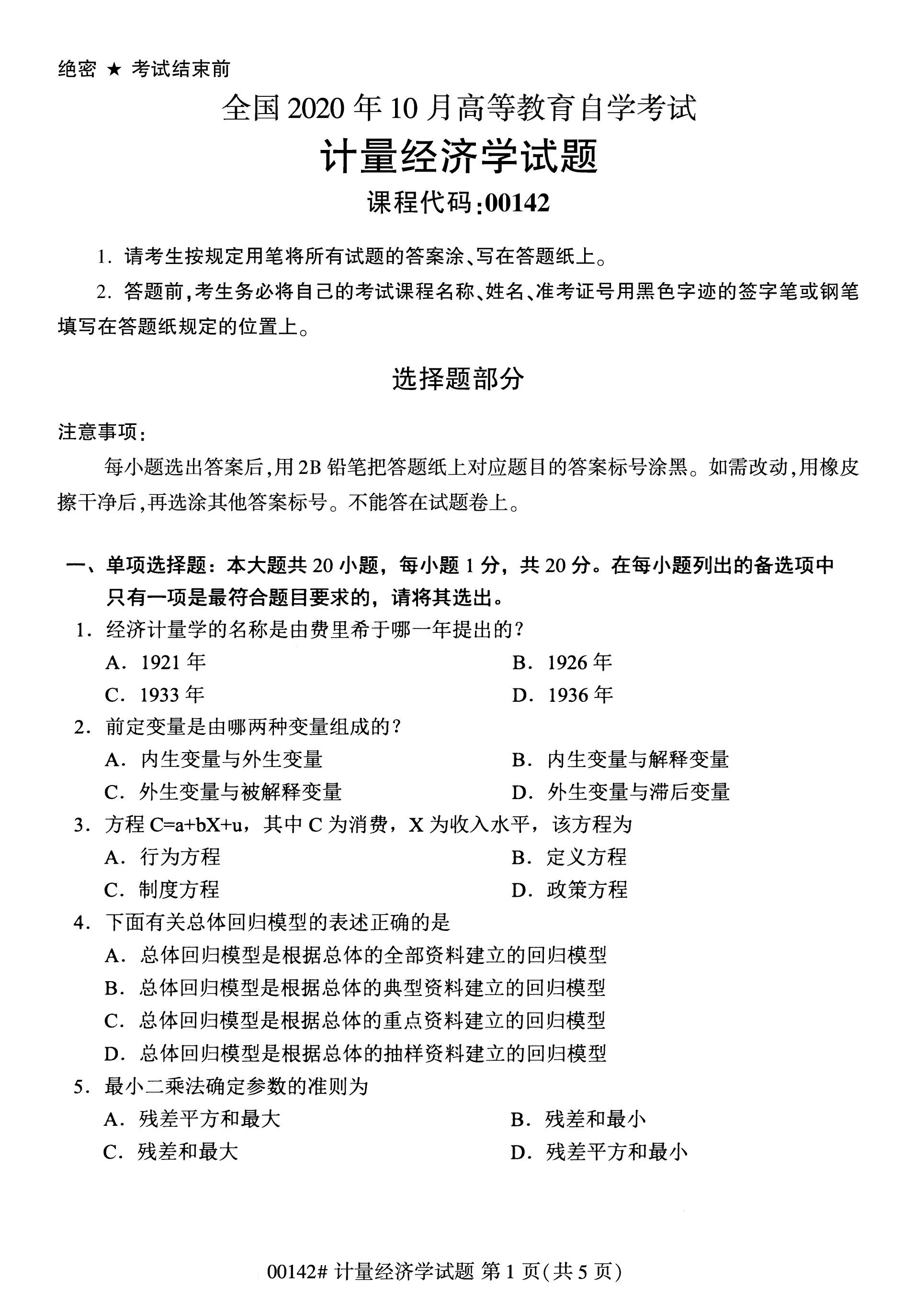 本文标签:贵州自考 理科类 2020年10月贵州自学考试计量统计学00142真题