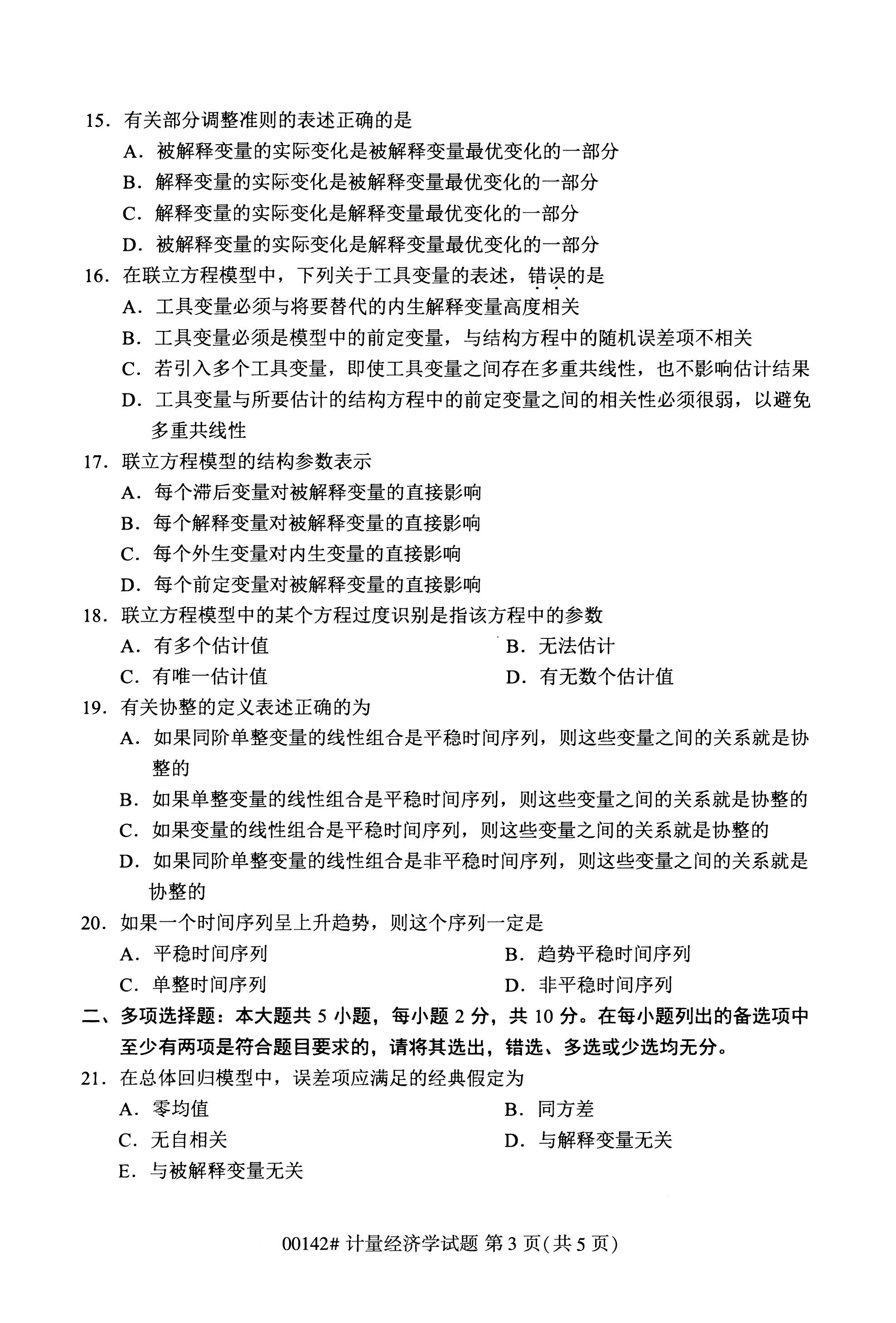 我们为考生提供2020年10月贵州自学考试计量统计学00142真题,下面是2020年10月贵州自学考试计量统计学00142真题内容,更多自考真题试卷请微信搜索"贵州自考网”微信公众号!