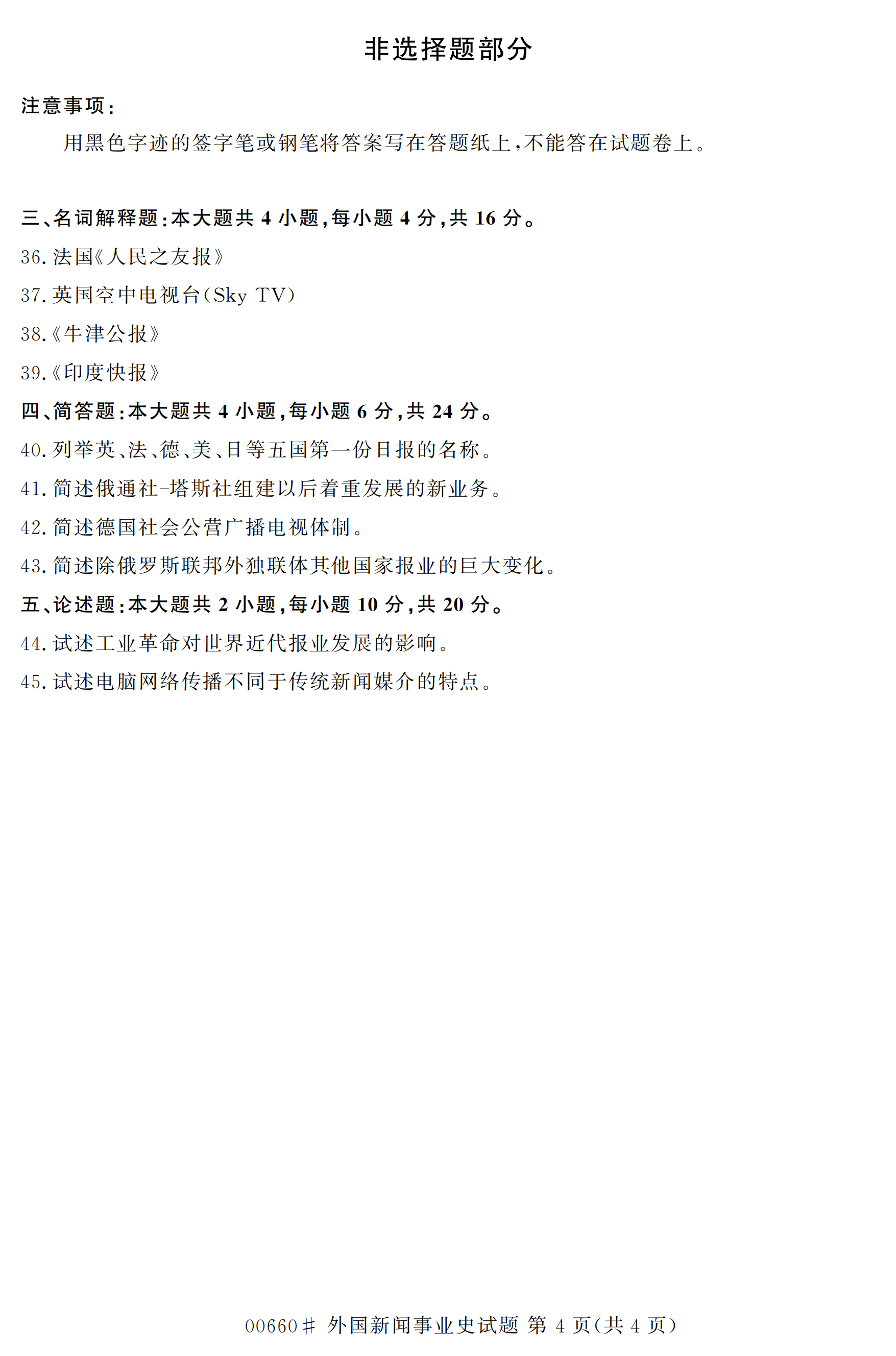 本文标签:贵州自考 文学类 2020年10月贵州高等教育自学考试外国新闻事业史00660真题