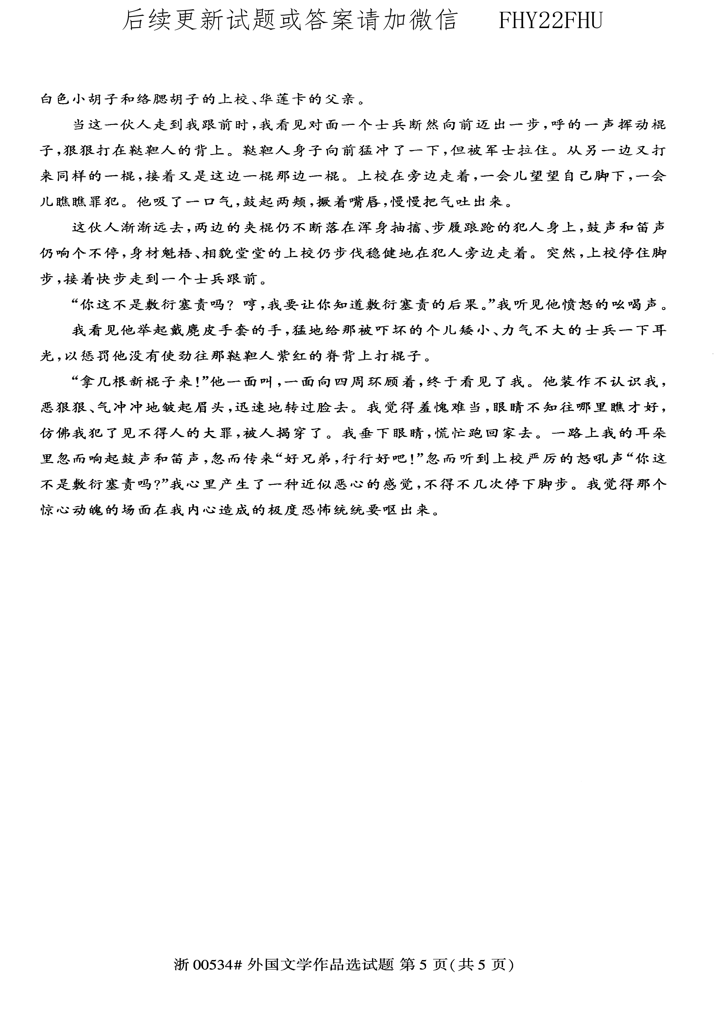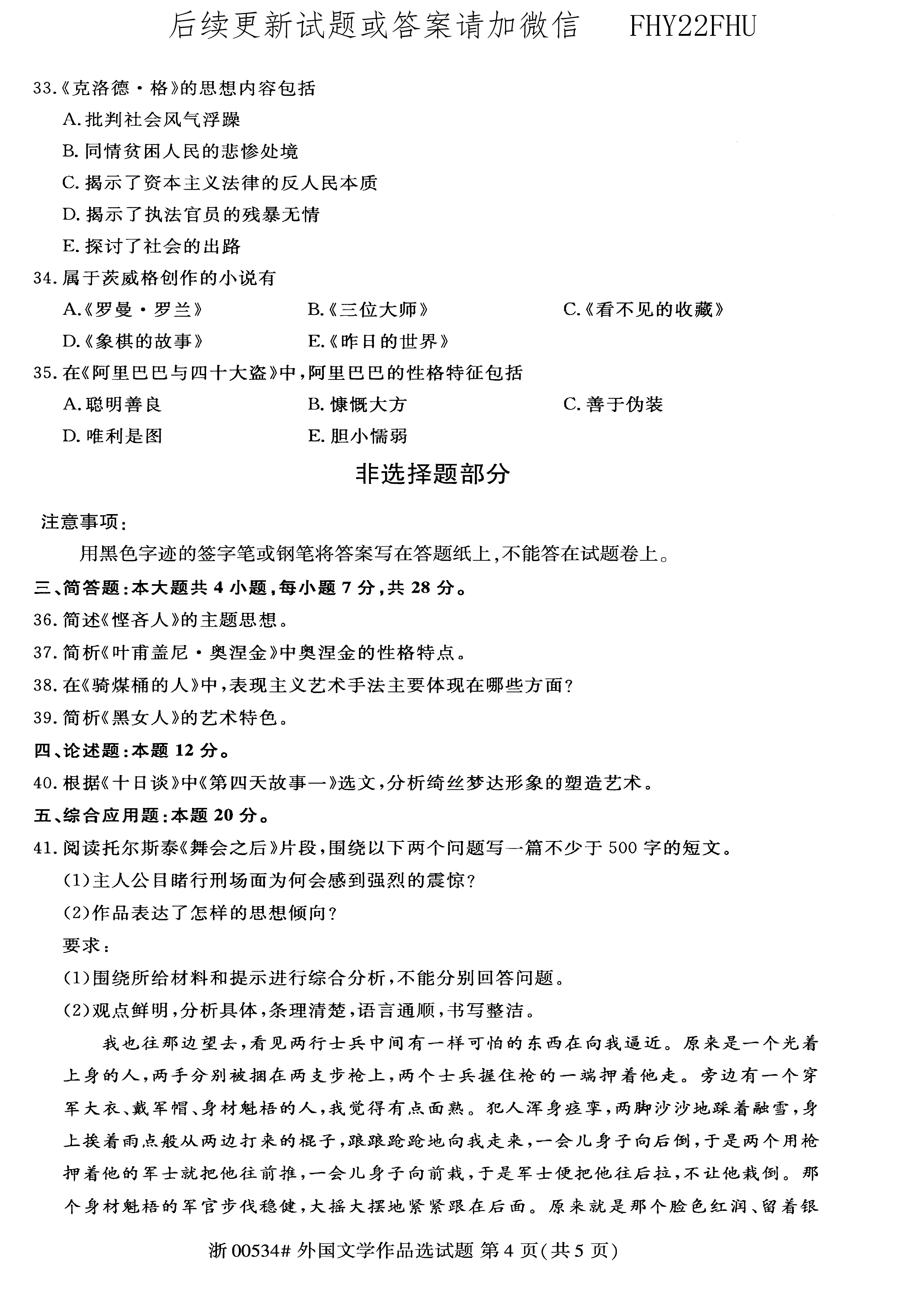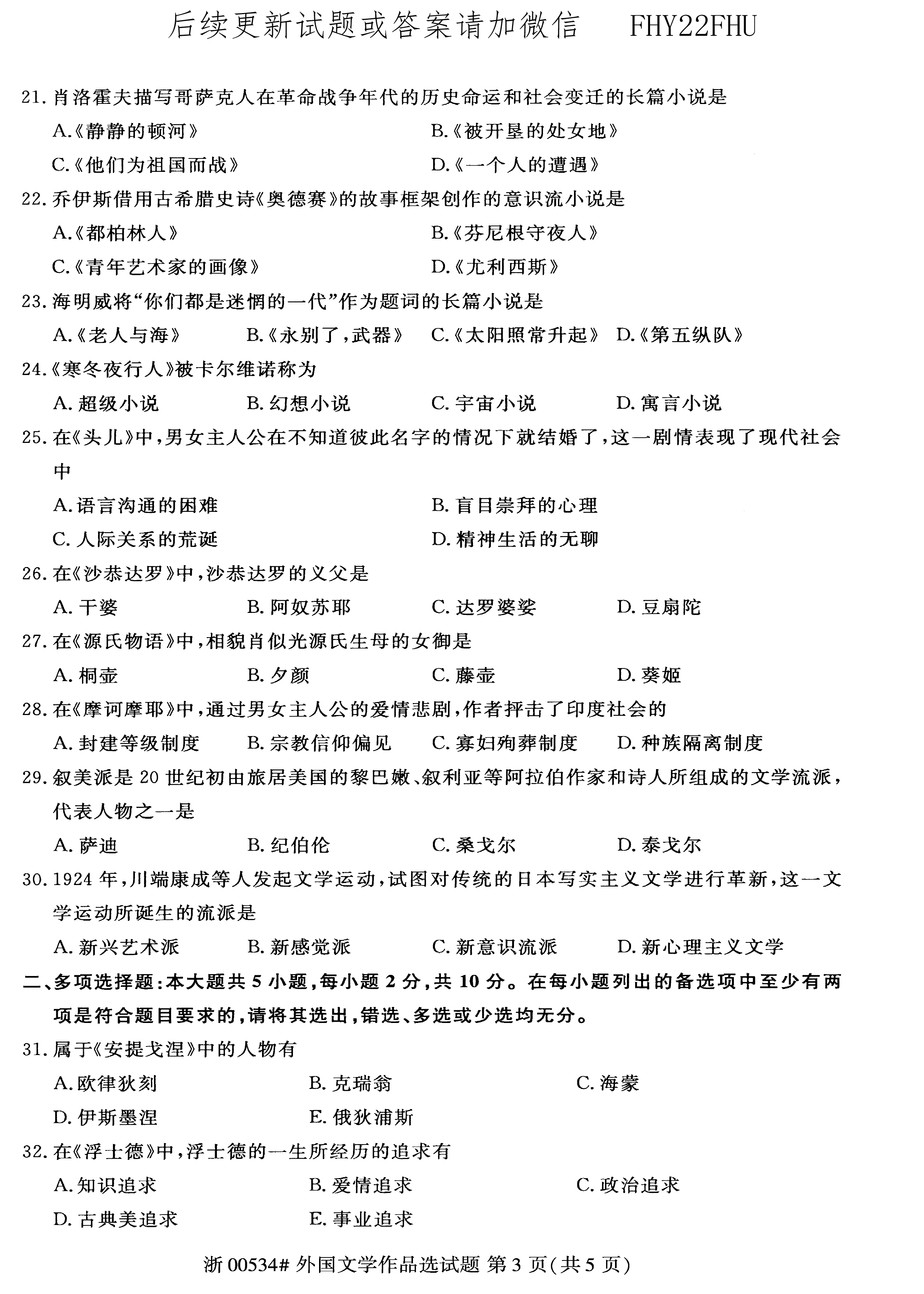 2020年10月贵州省自考00534外国文学作品选试题及答案