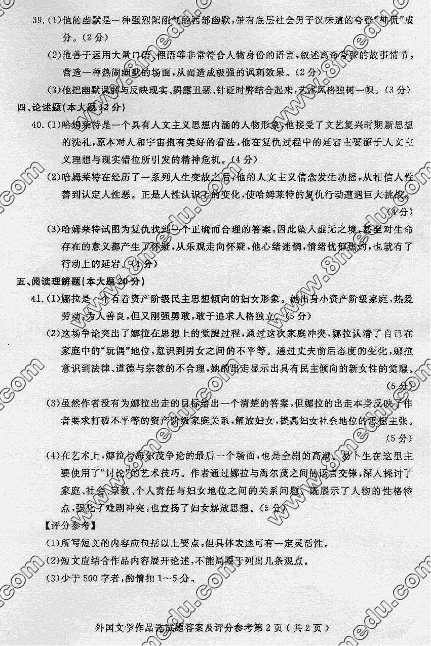 外国文学作品选 试卷