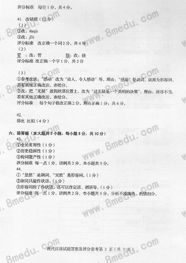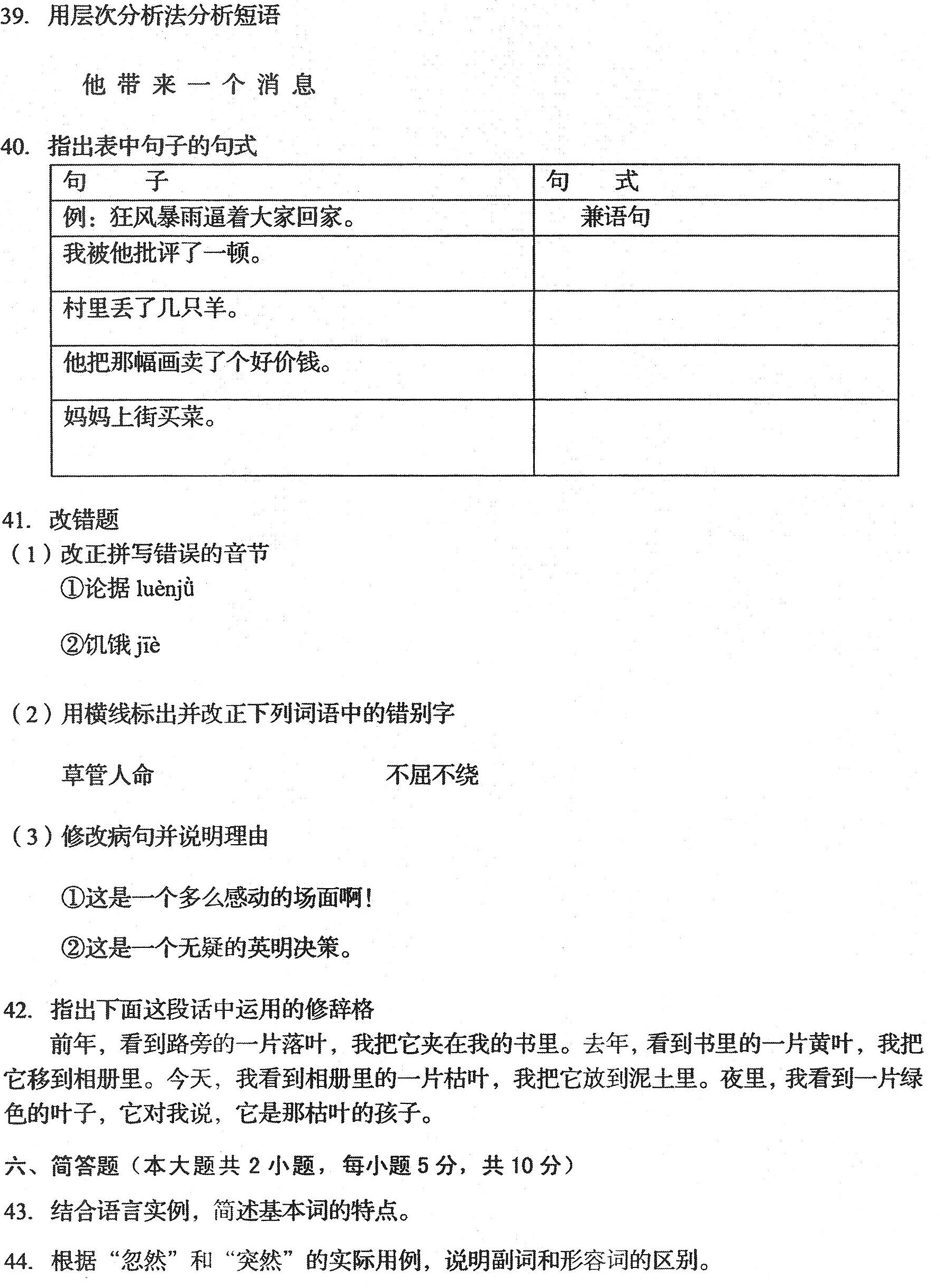 现代汉语试卷
