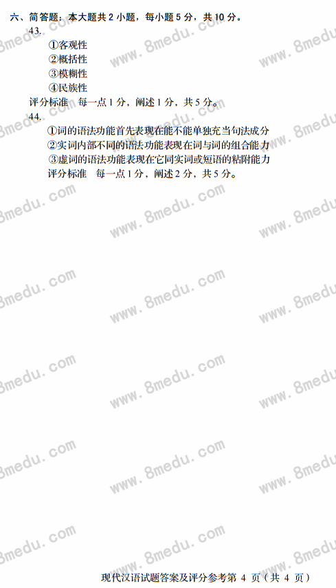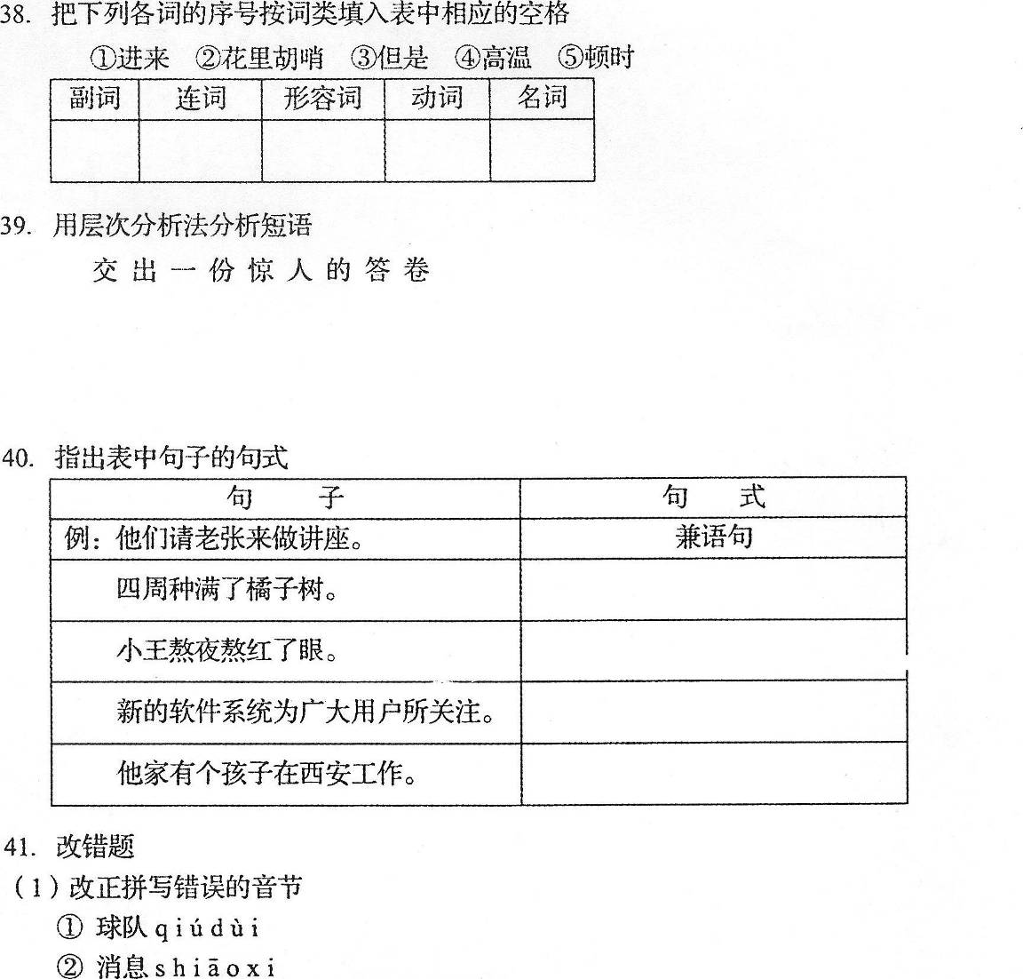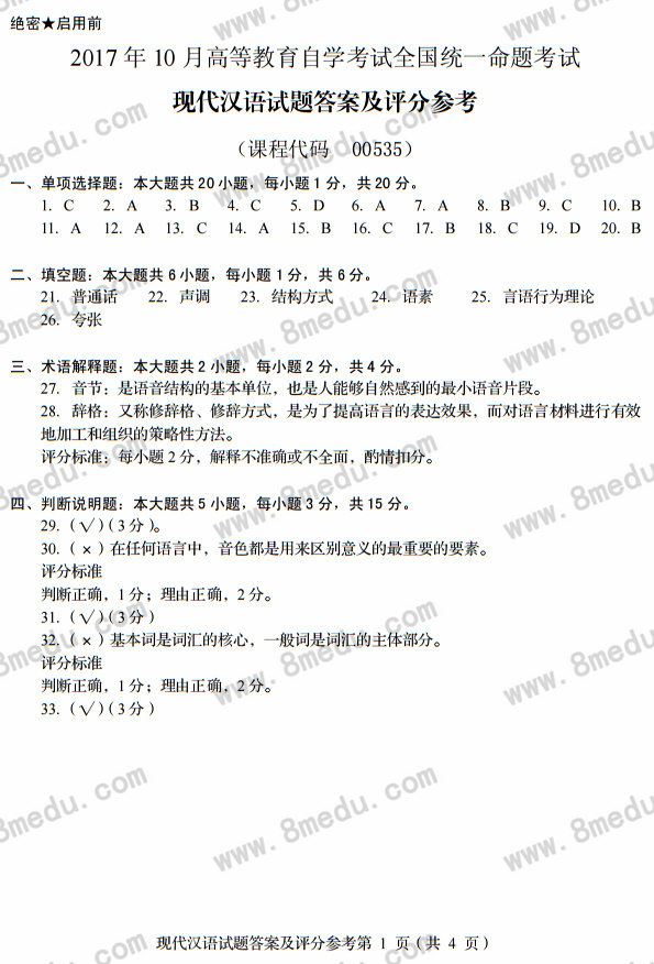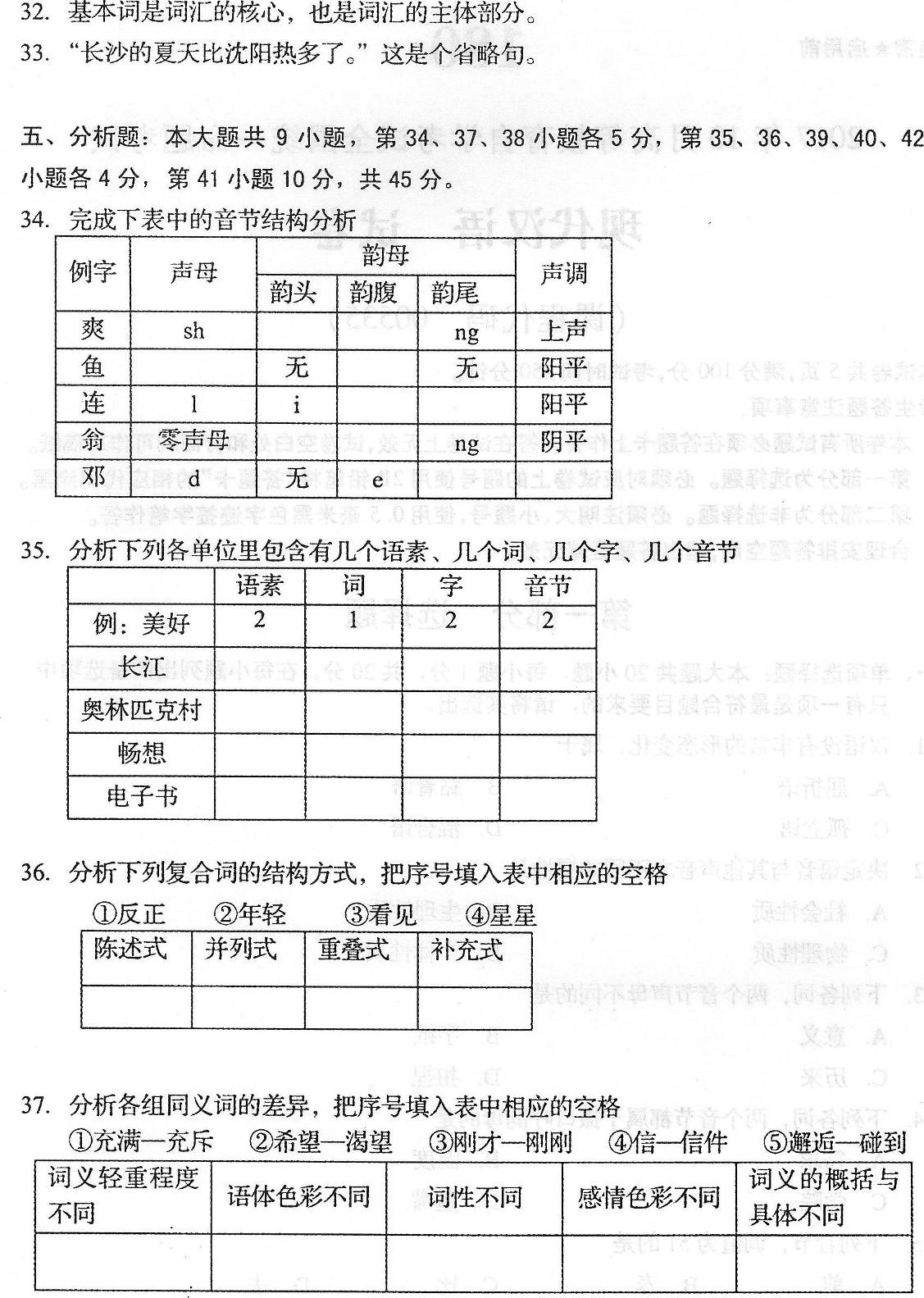 贵州省2017年10月自学考试00535现代汉语试题及答案