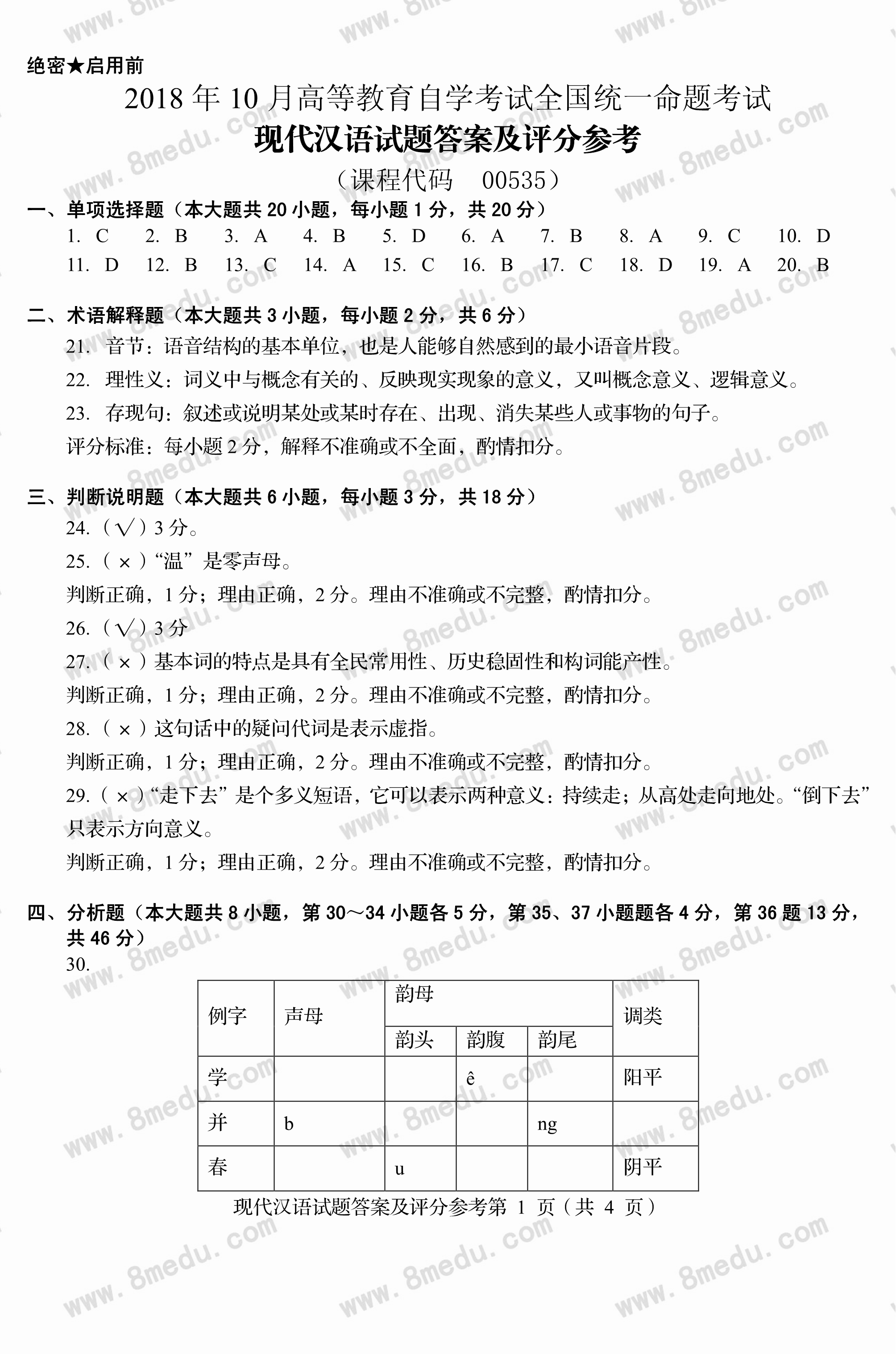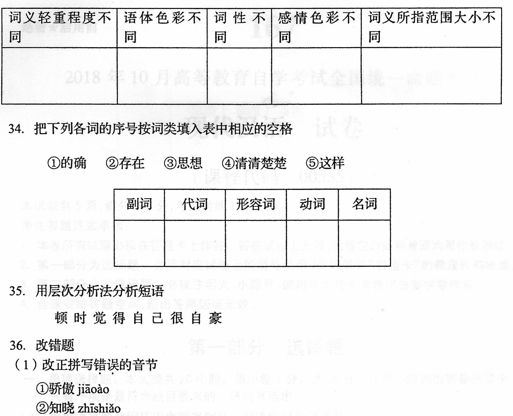 贵州省2018年10月自学考试00535现代汉语试题及答案