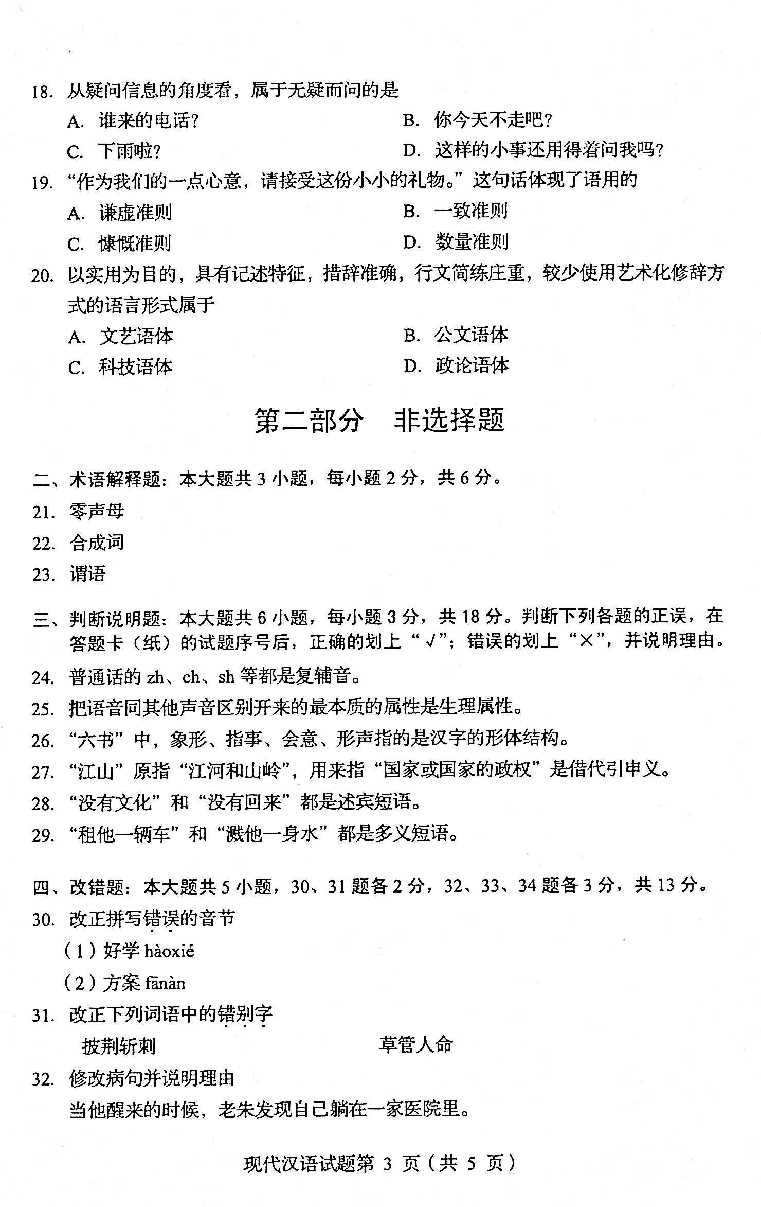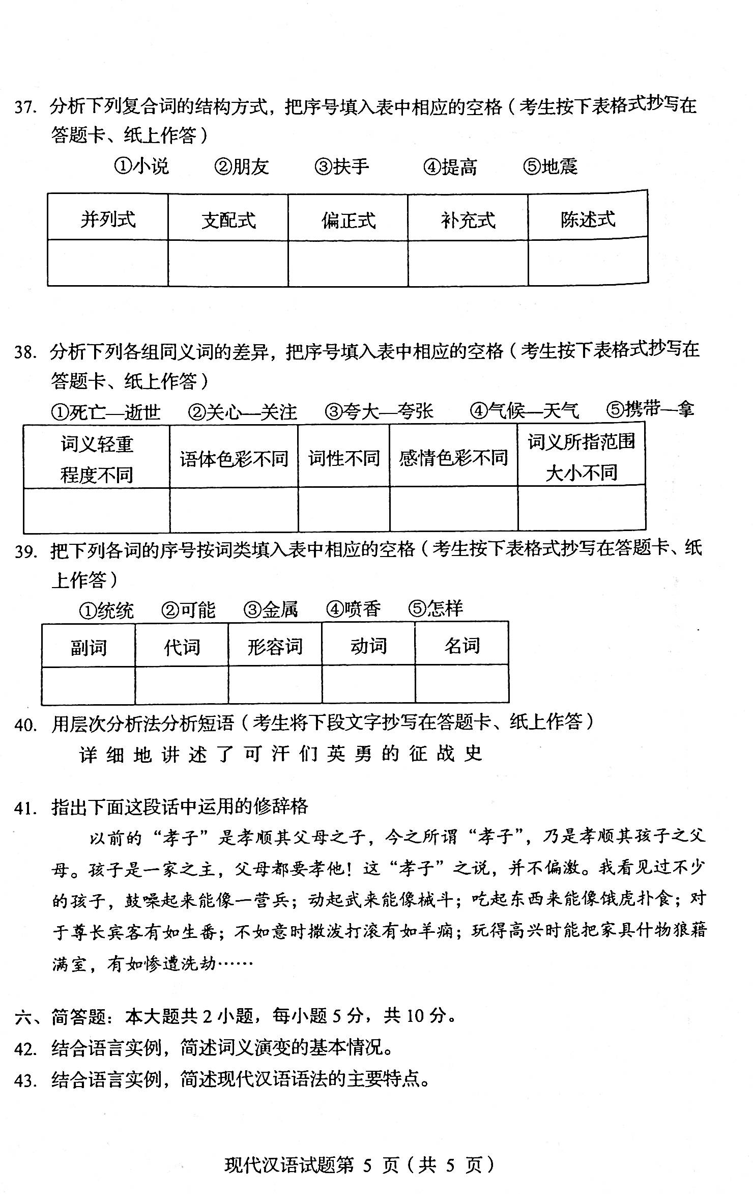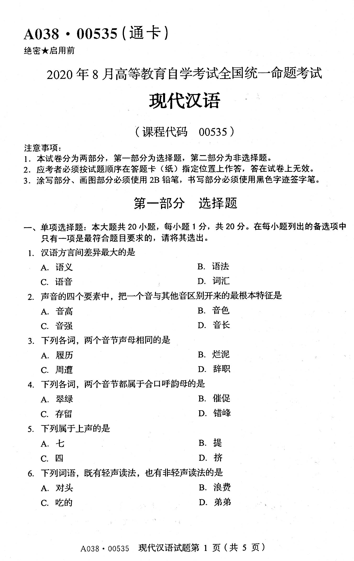 2020年08月贵州省自学考试00535现代汉语真题及答案