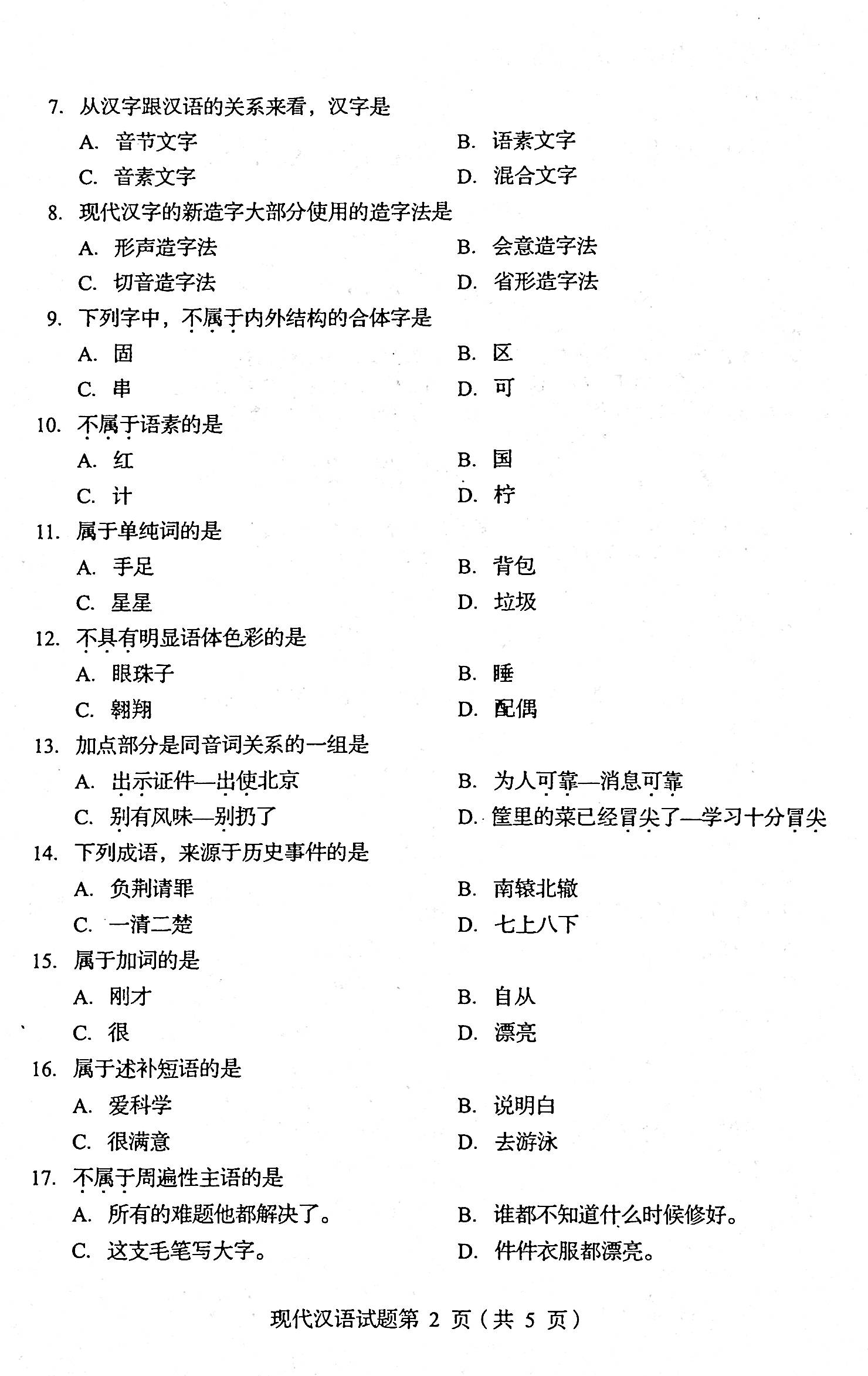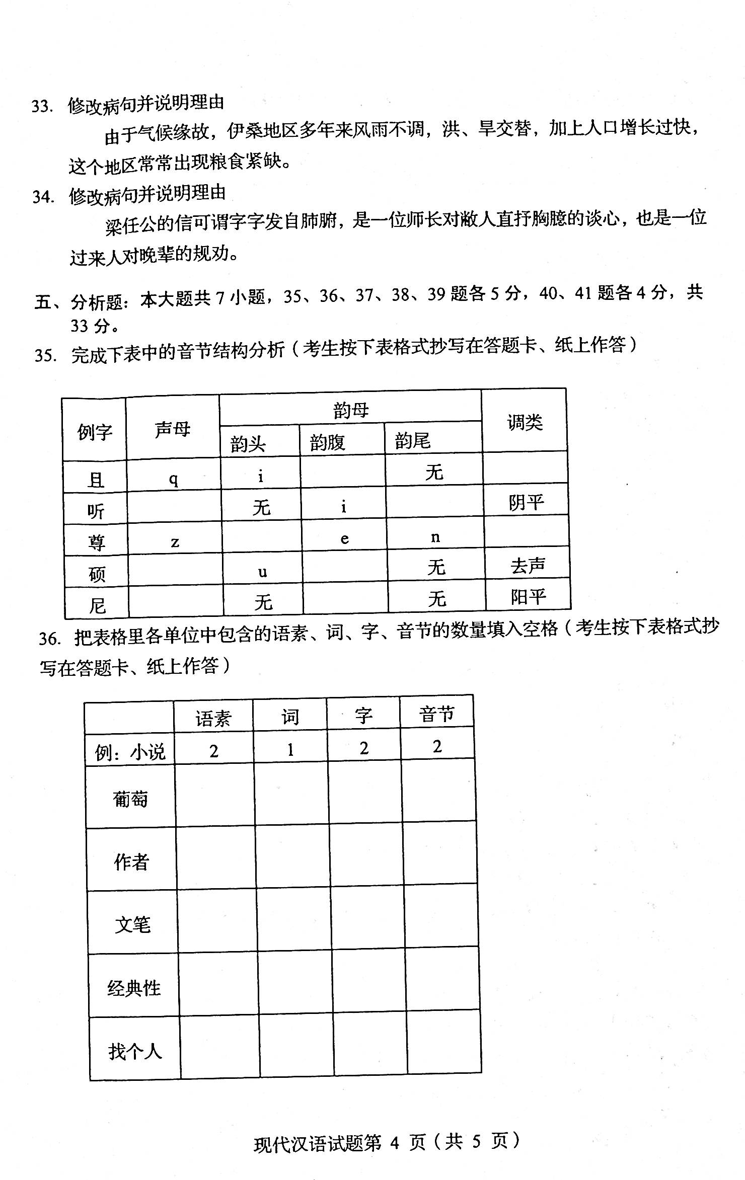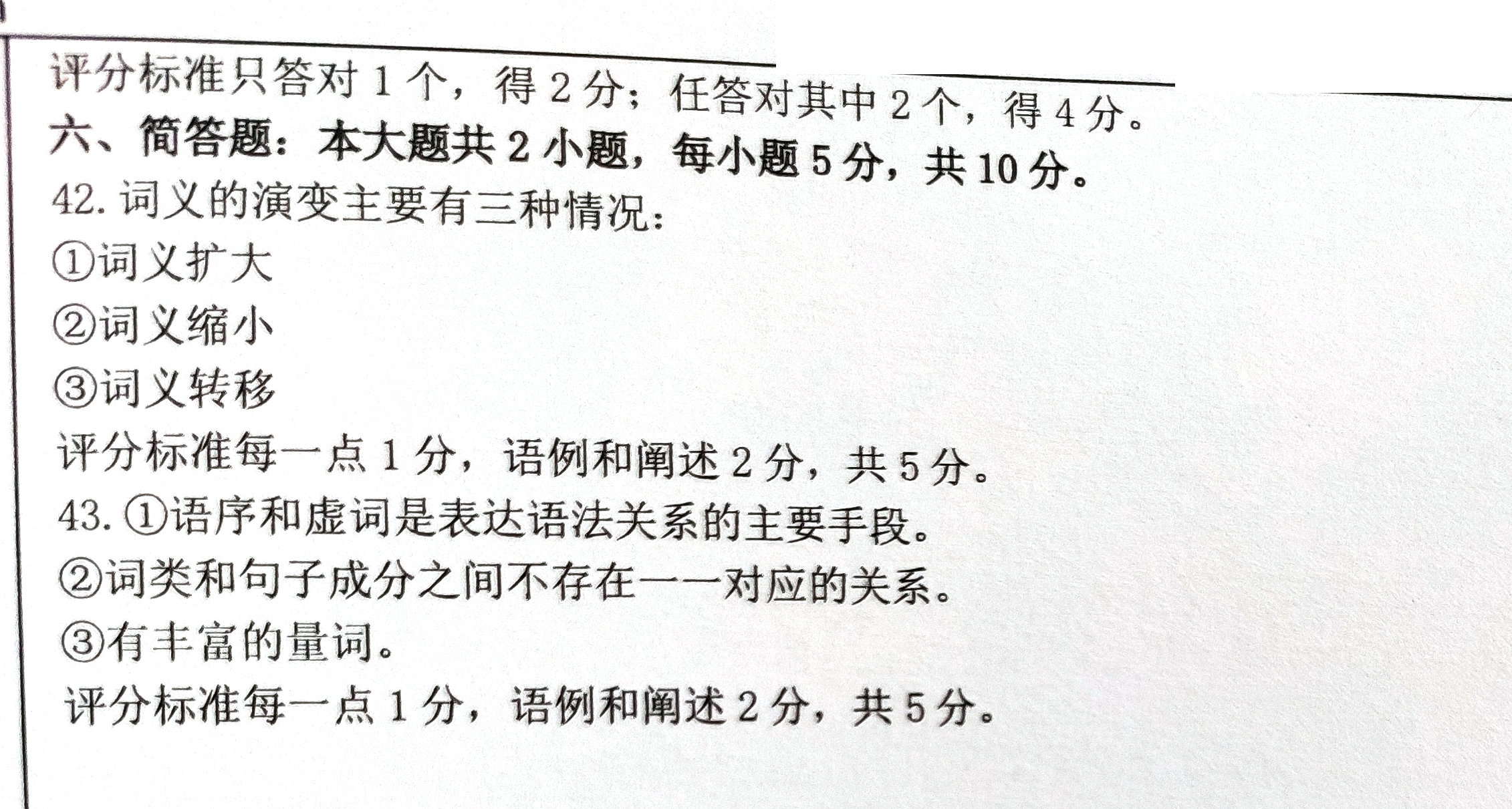 2020年08月贵州省自学考试00535现代汉语真题及答案