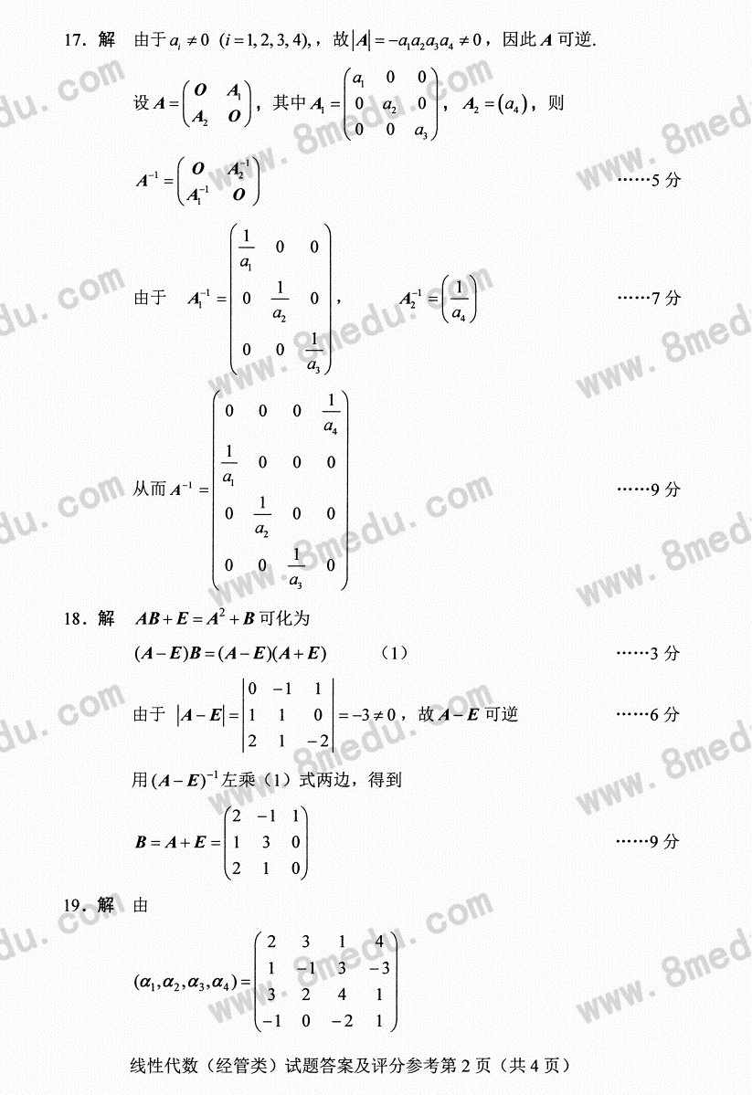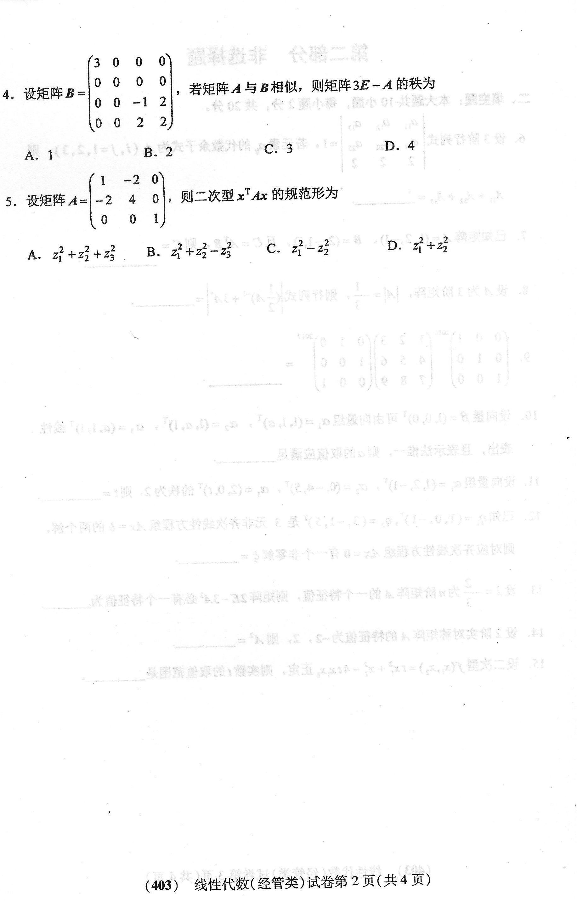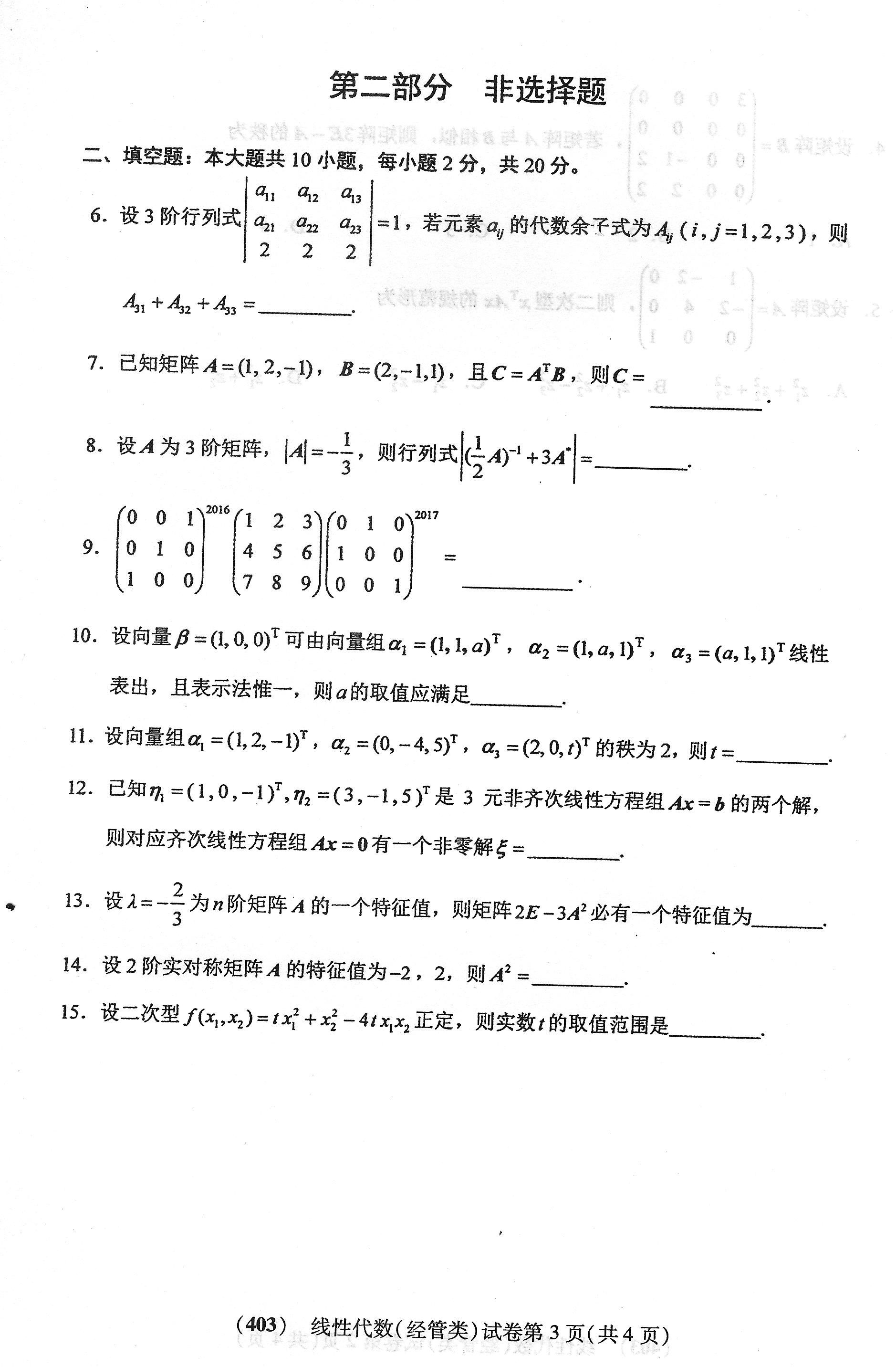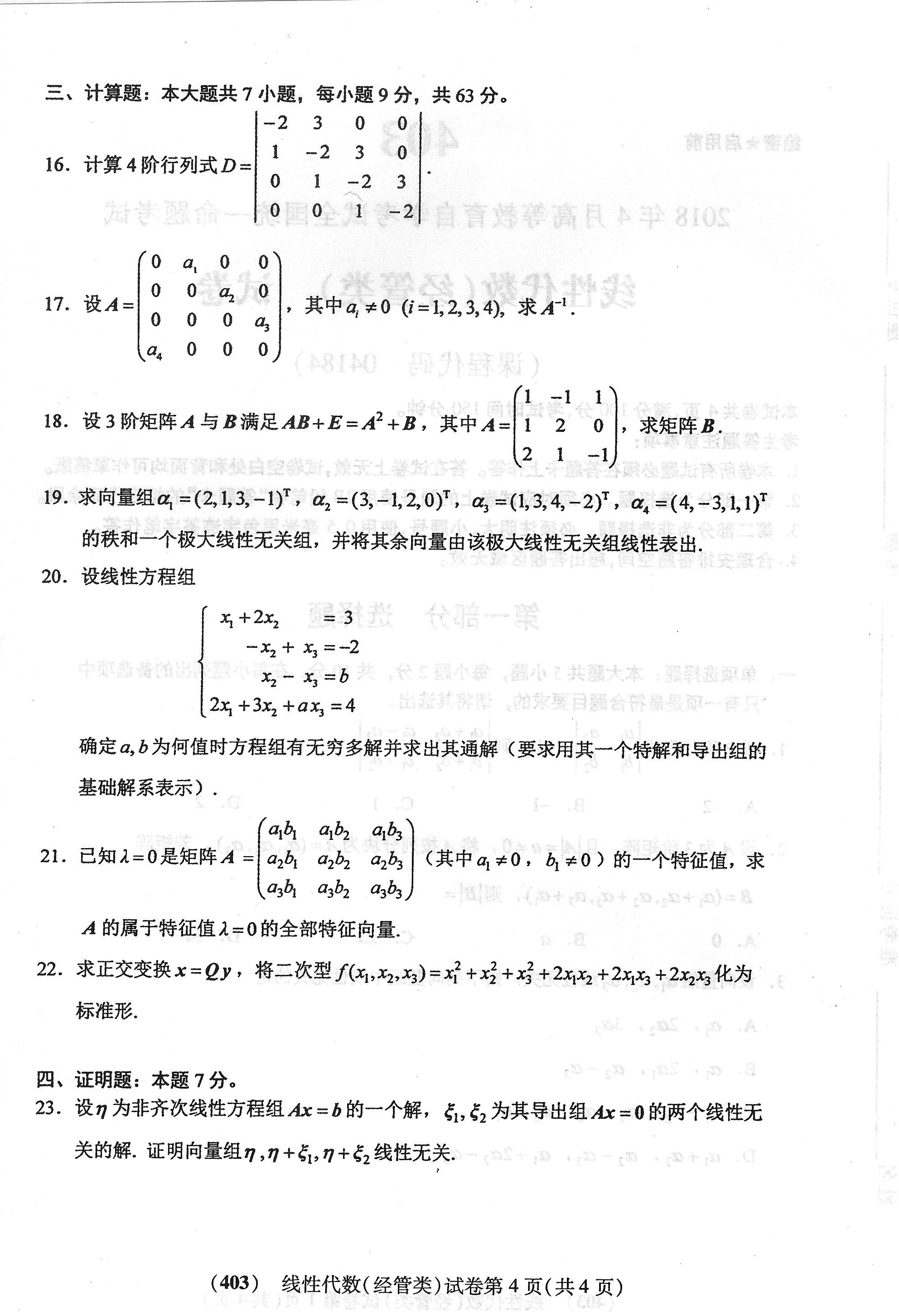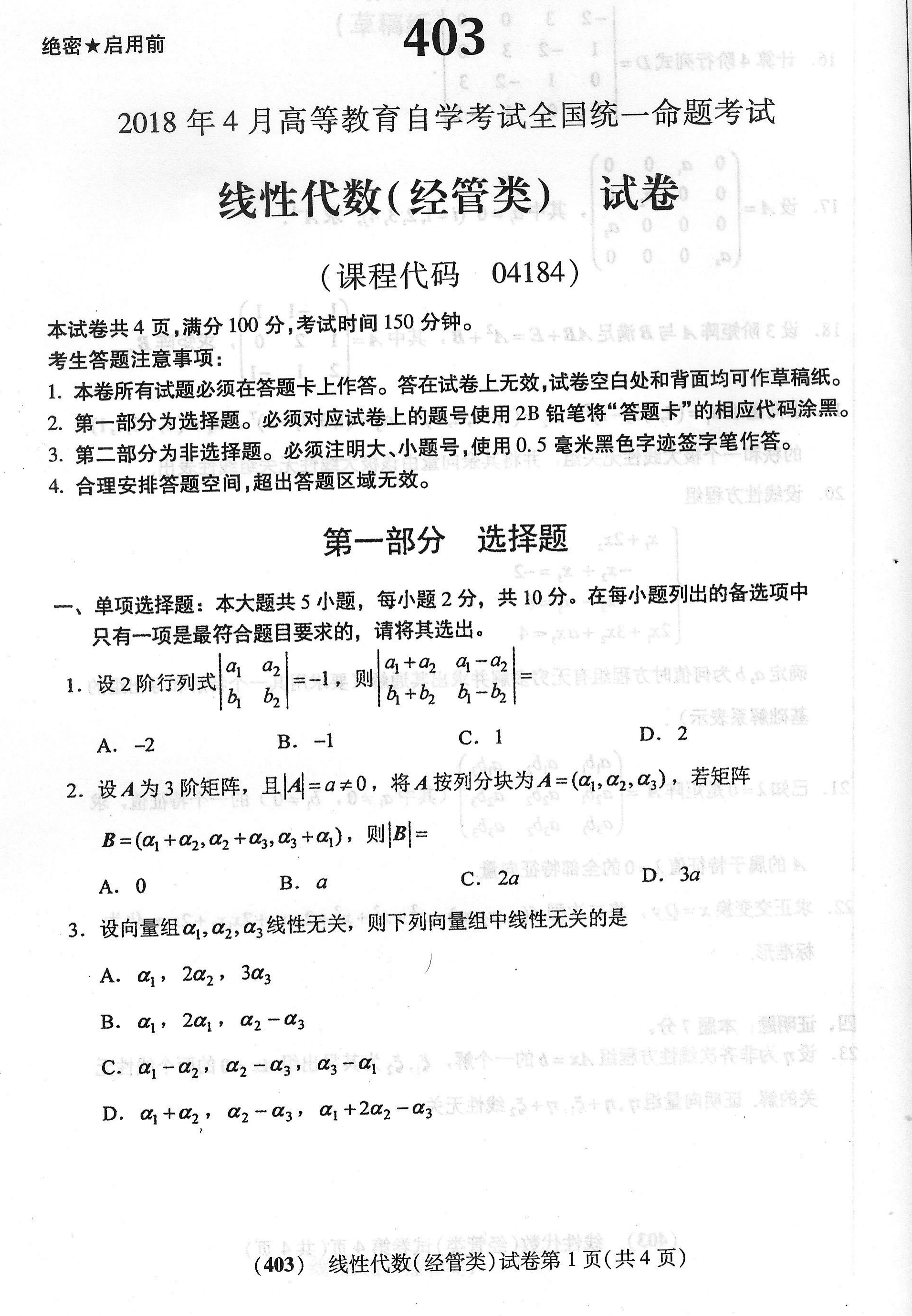 贵州省2018年04月自学考试04184线性代数(经管类)真题及答案