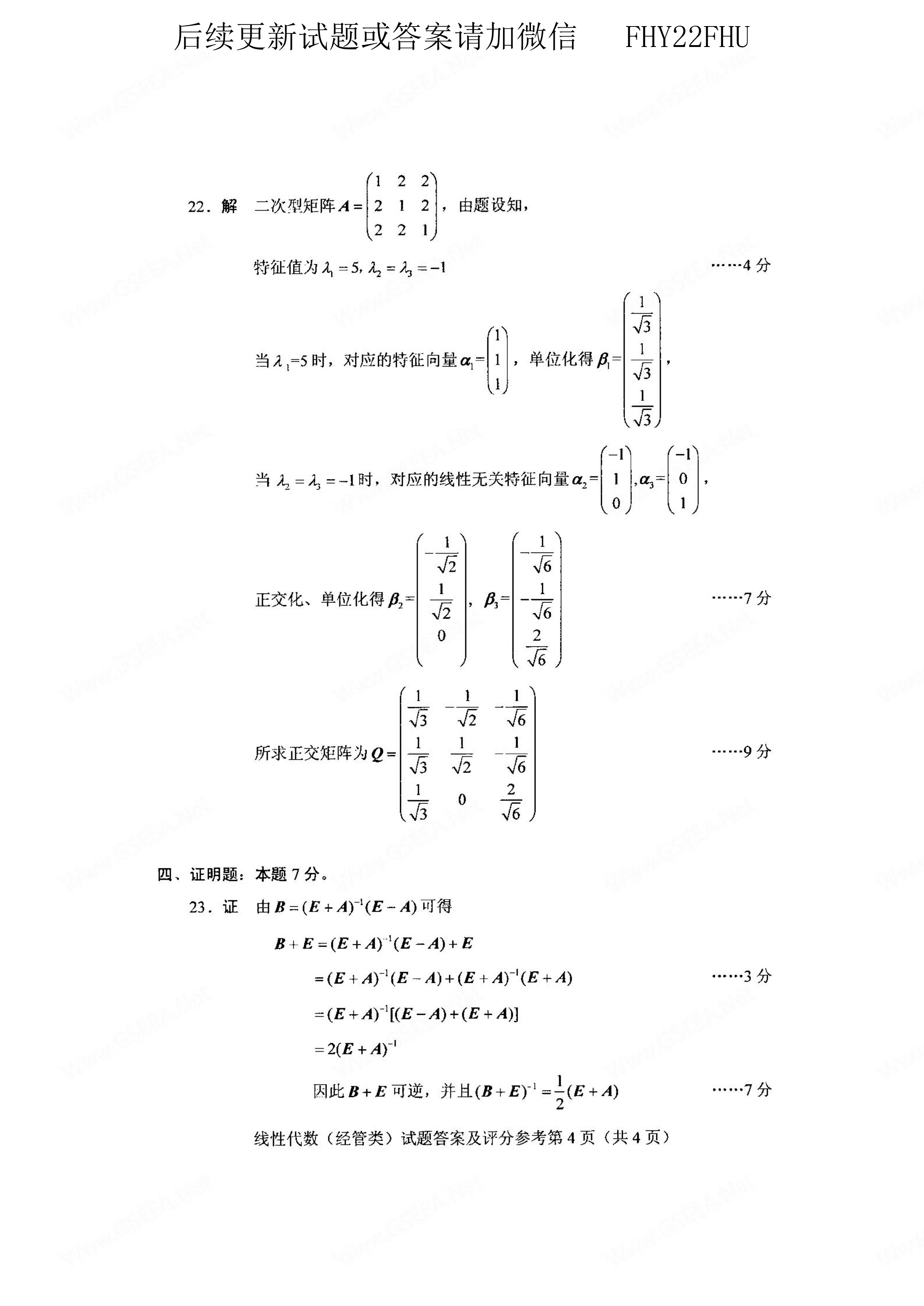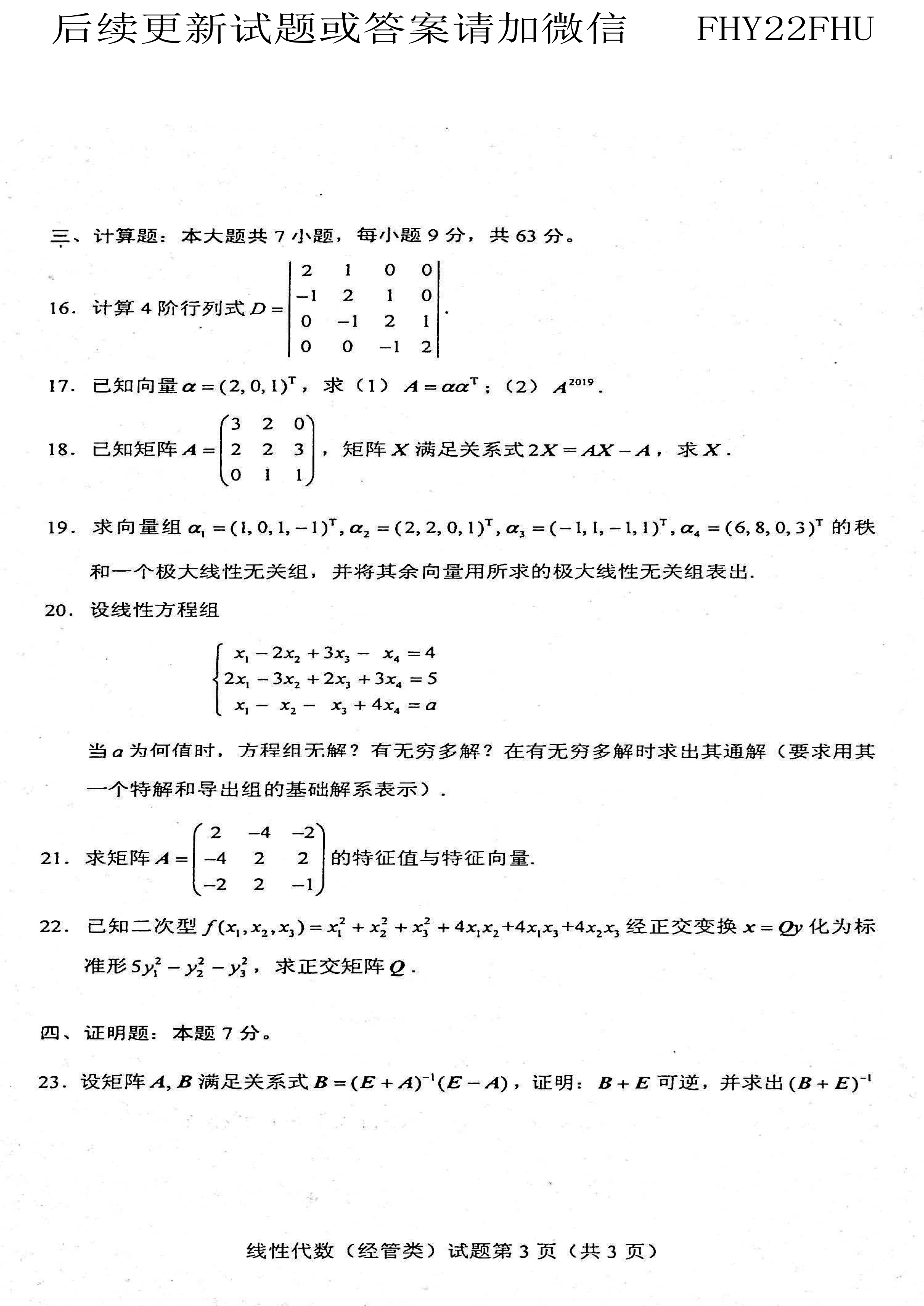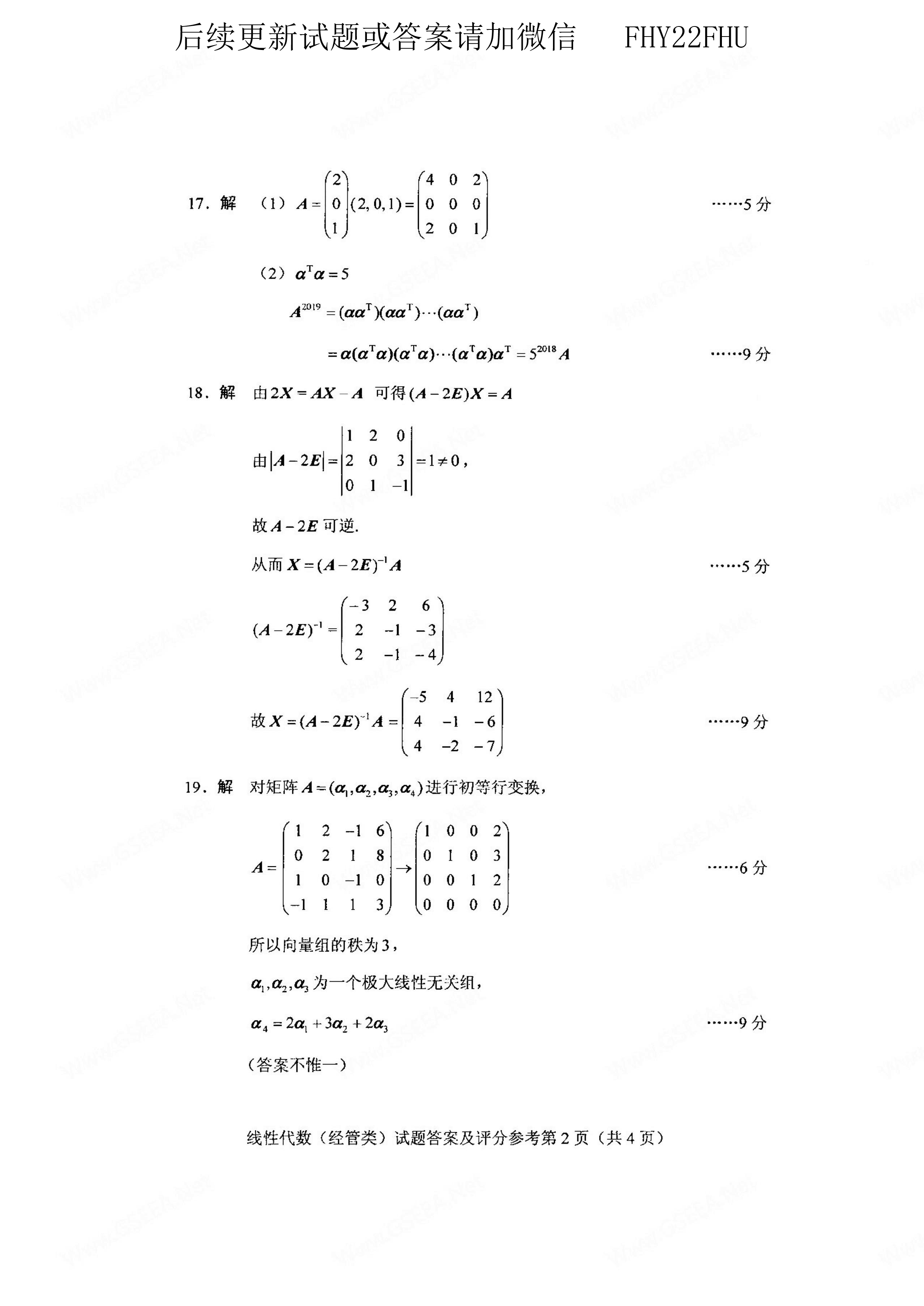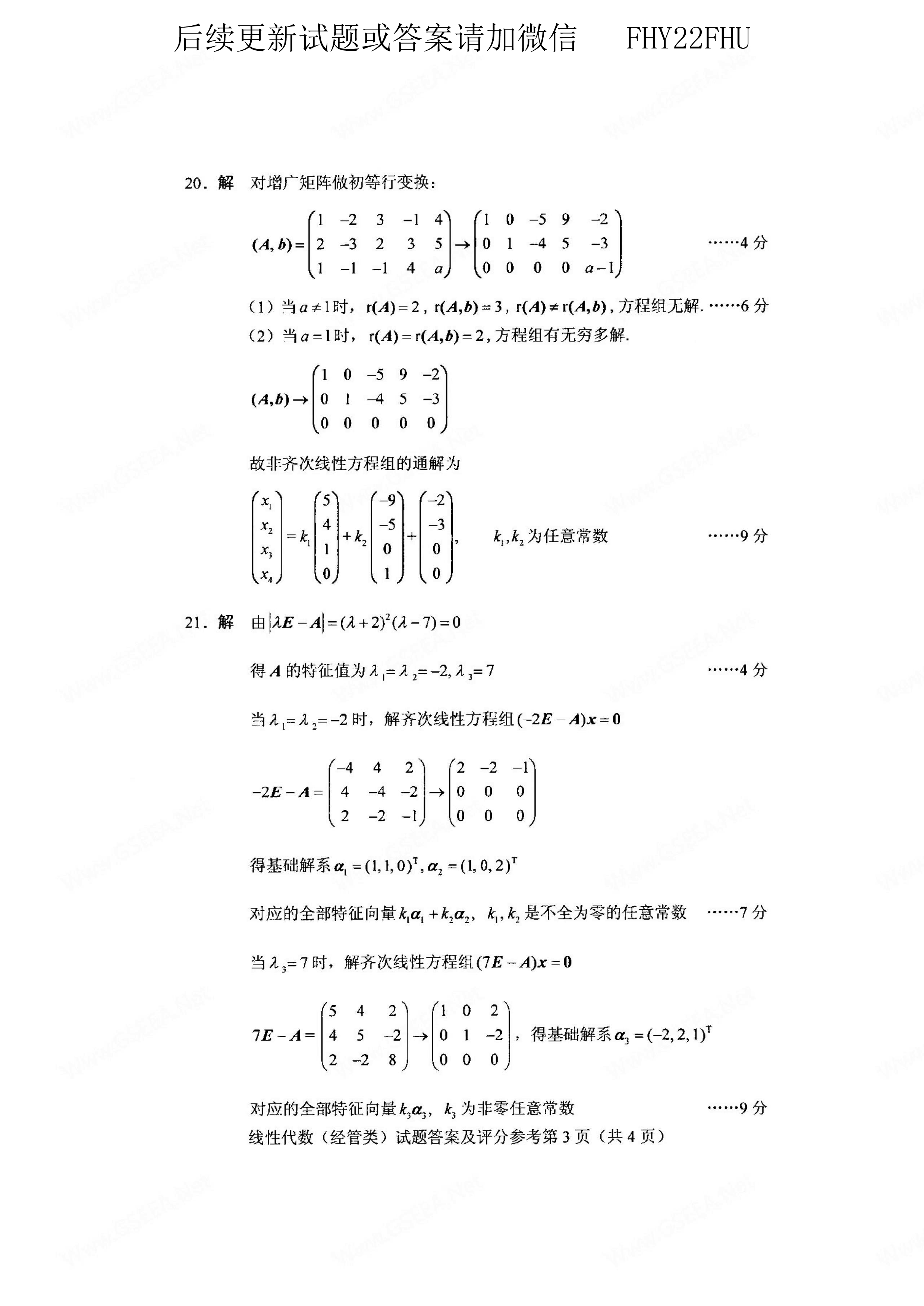 2021年04月贵州省自考04184线性代数(经管类)试题及答案