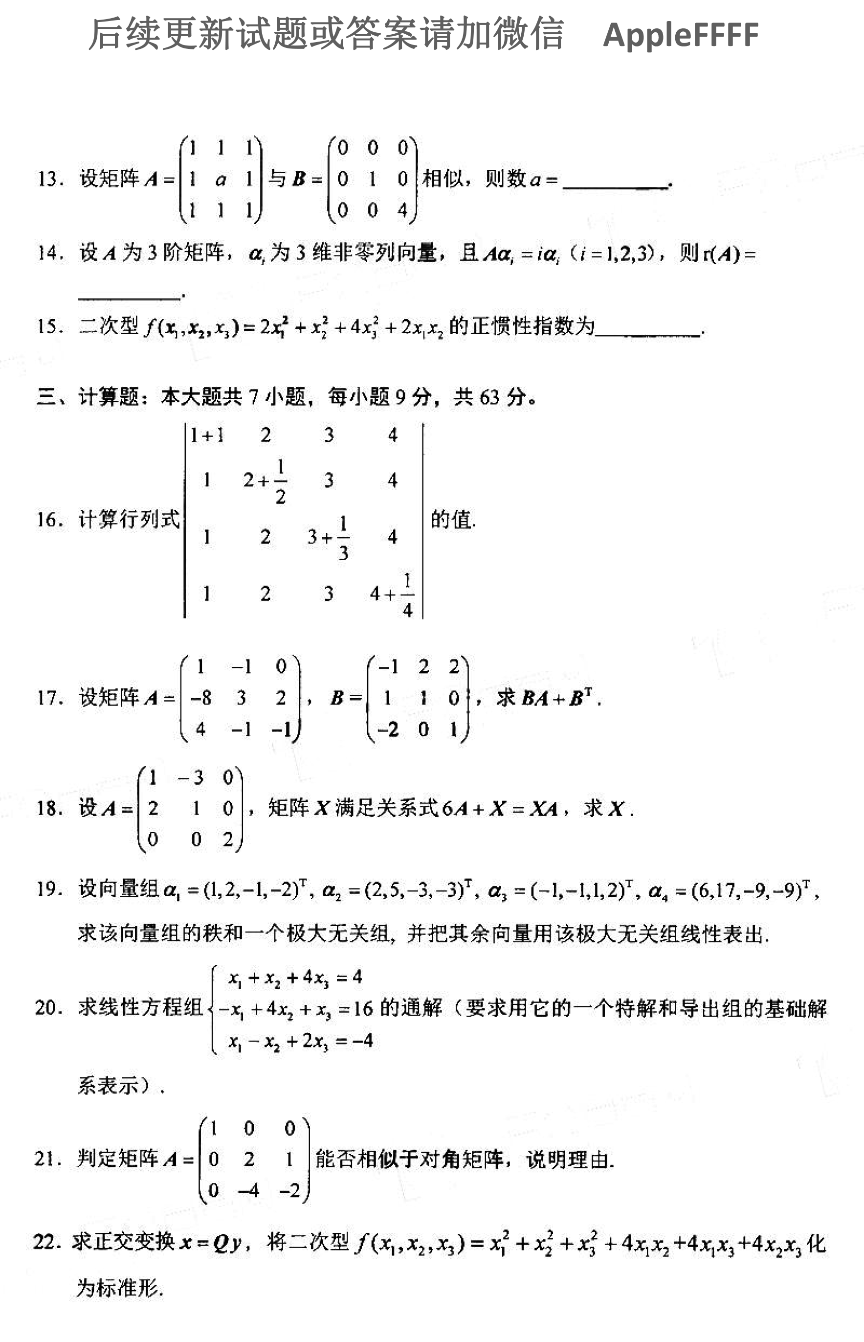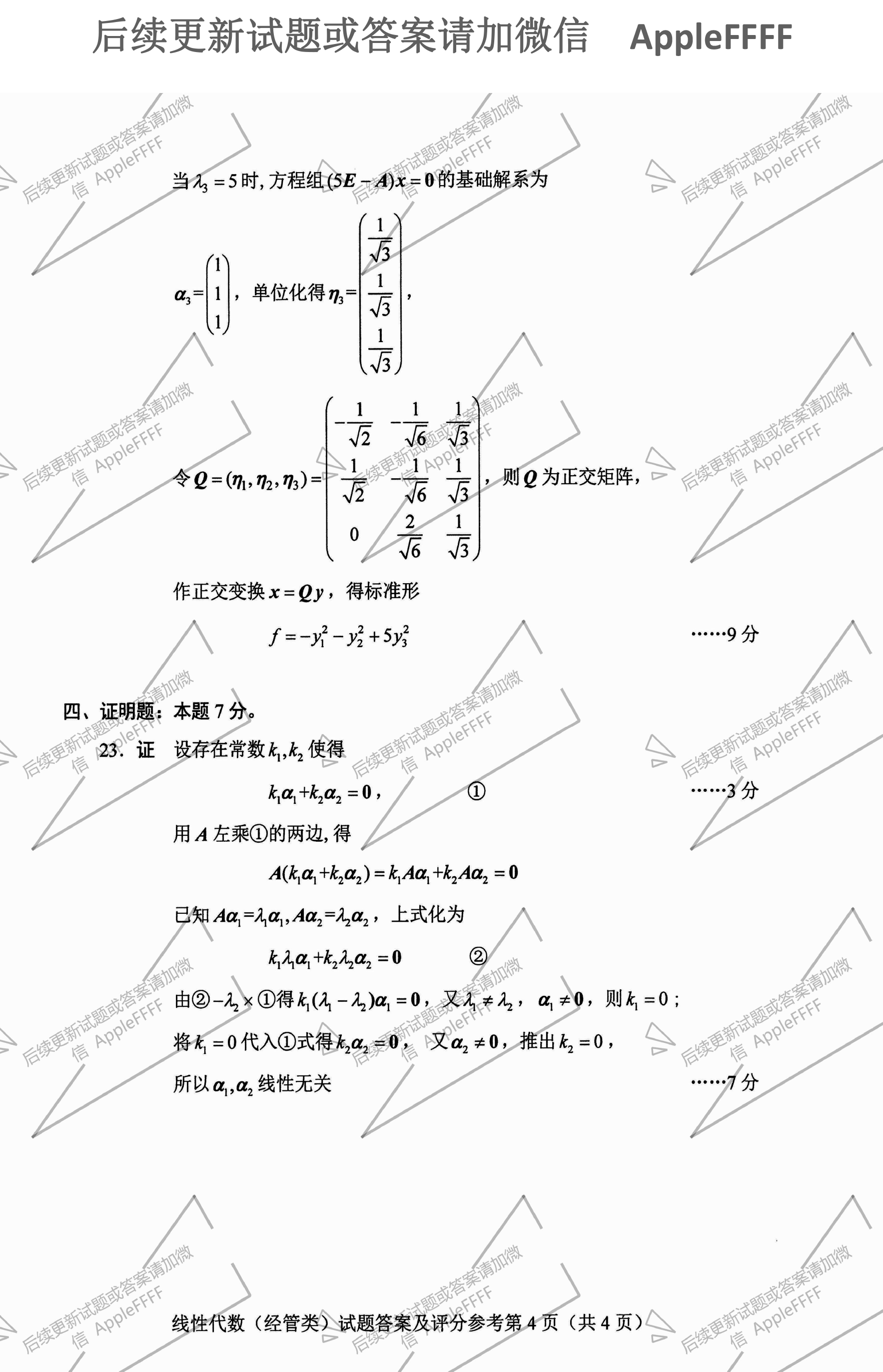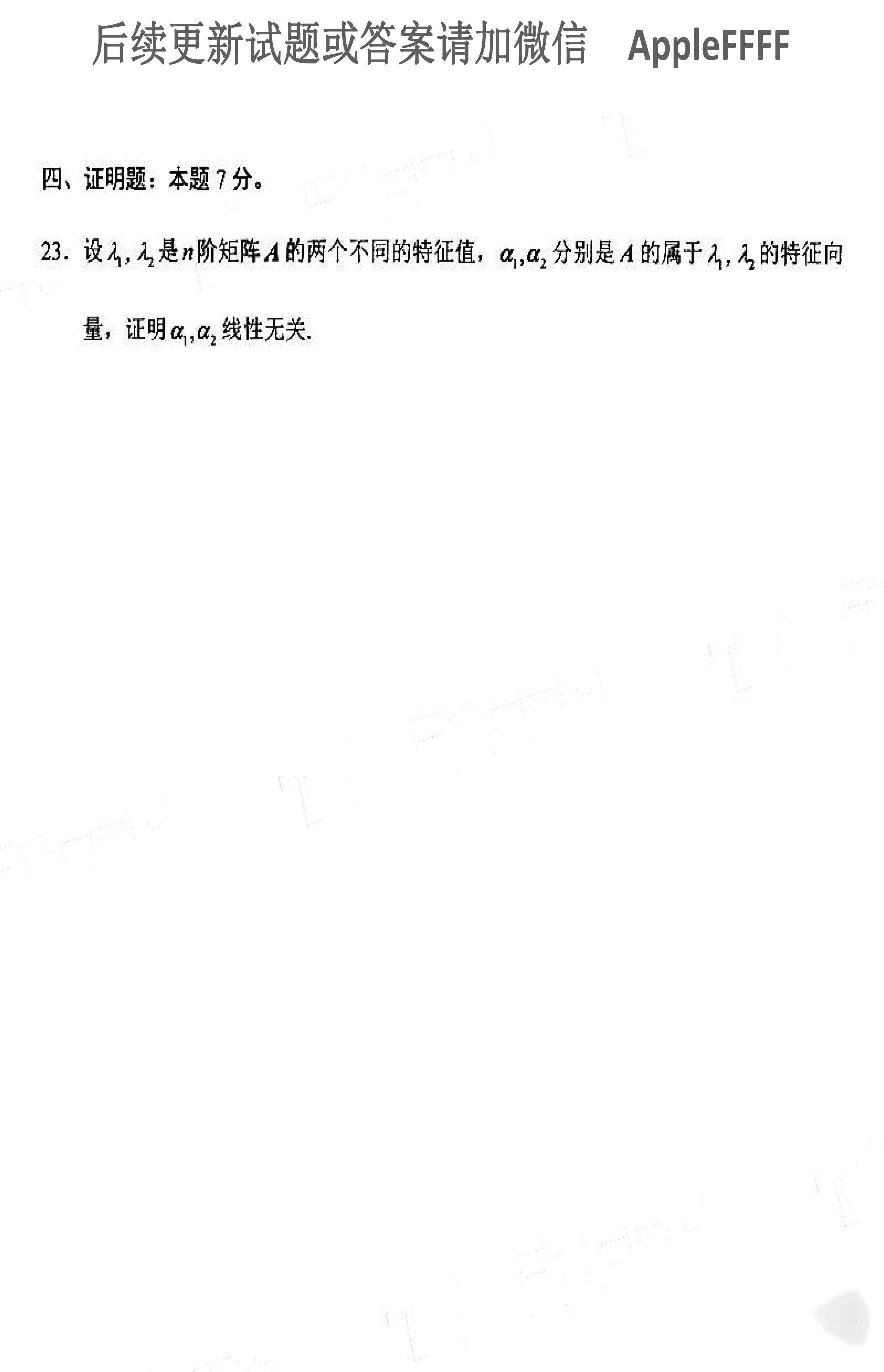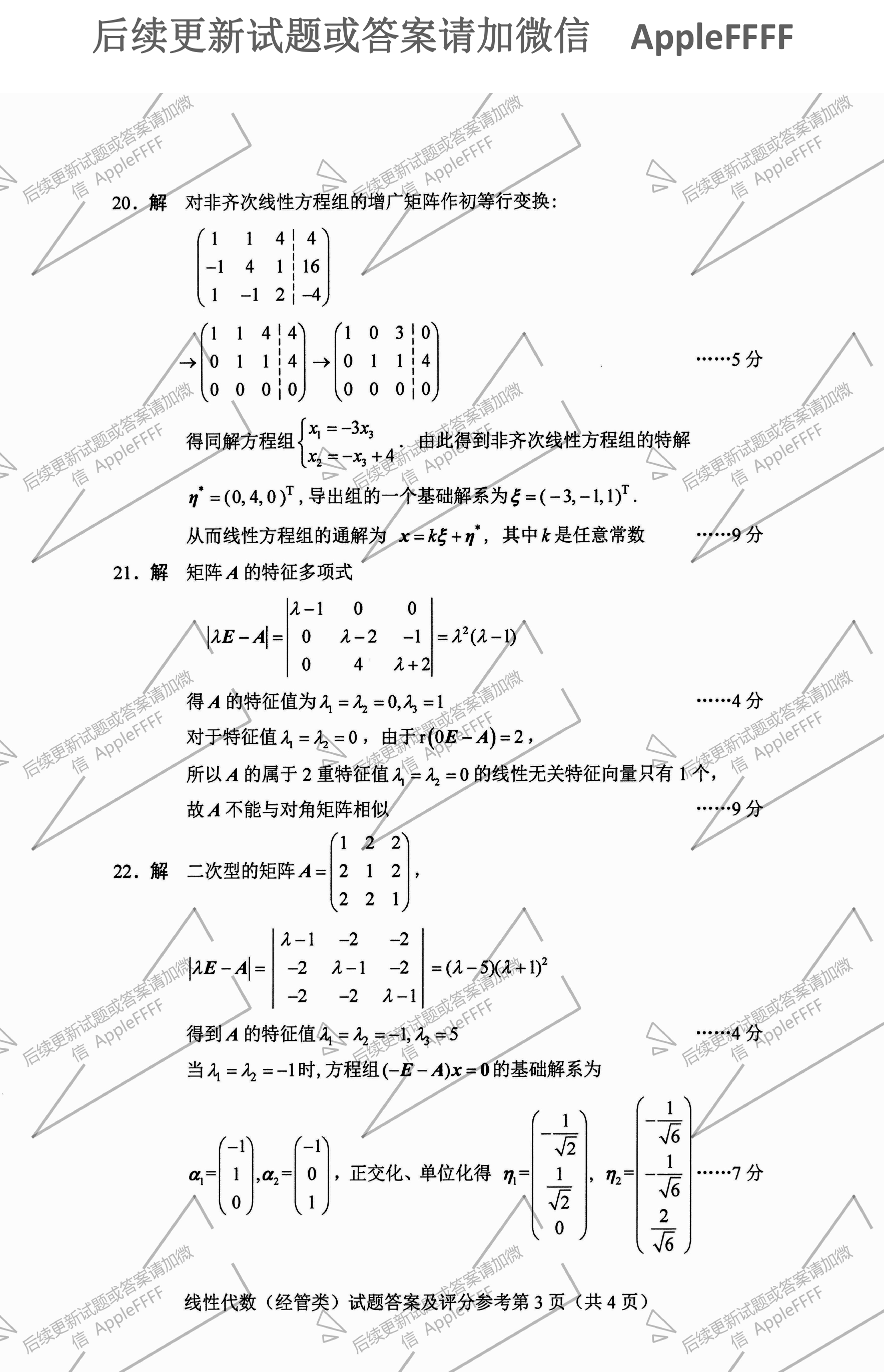 贵州省2021年10月自考04184线性代数(经管类)试题及答案