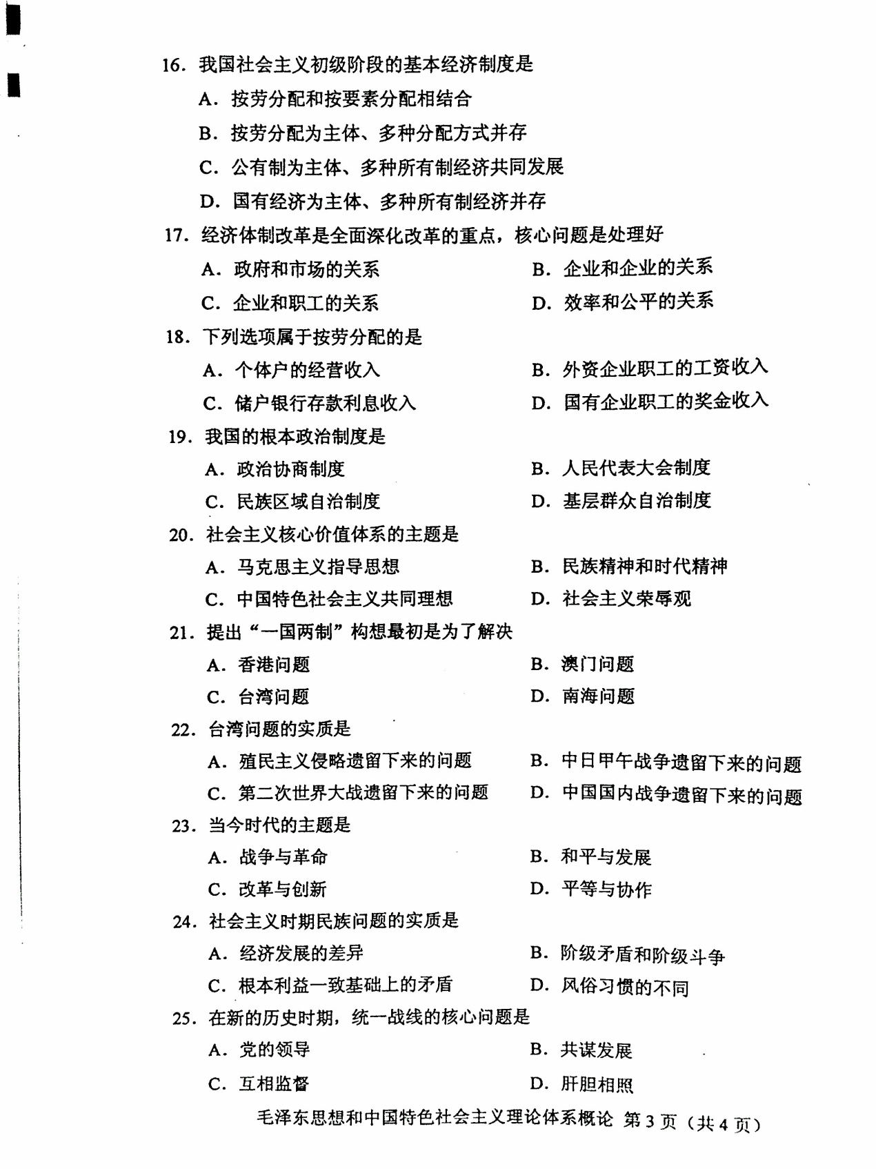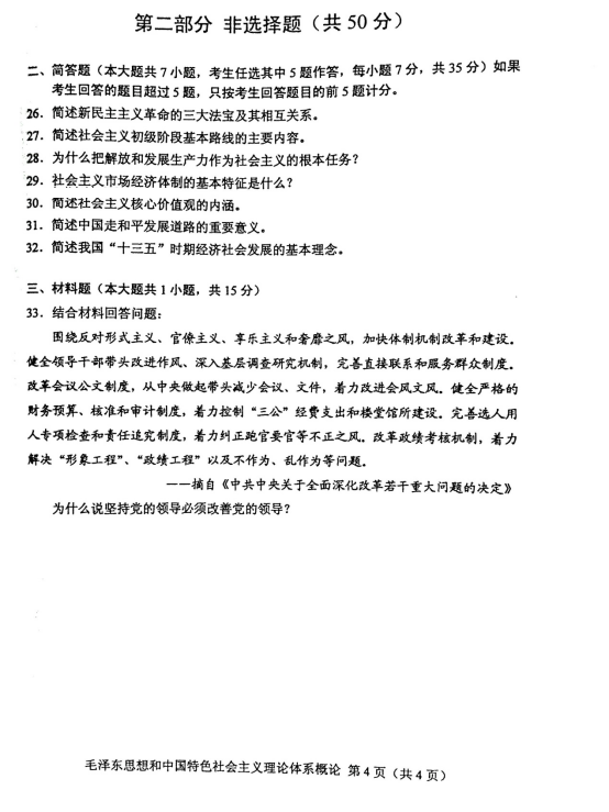 2016年04月贵州自考12656***思想和中国特色社会主义理论真题及答案