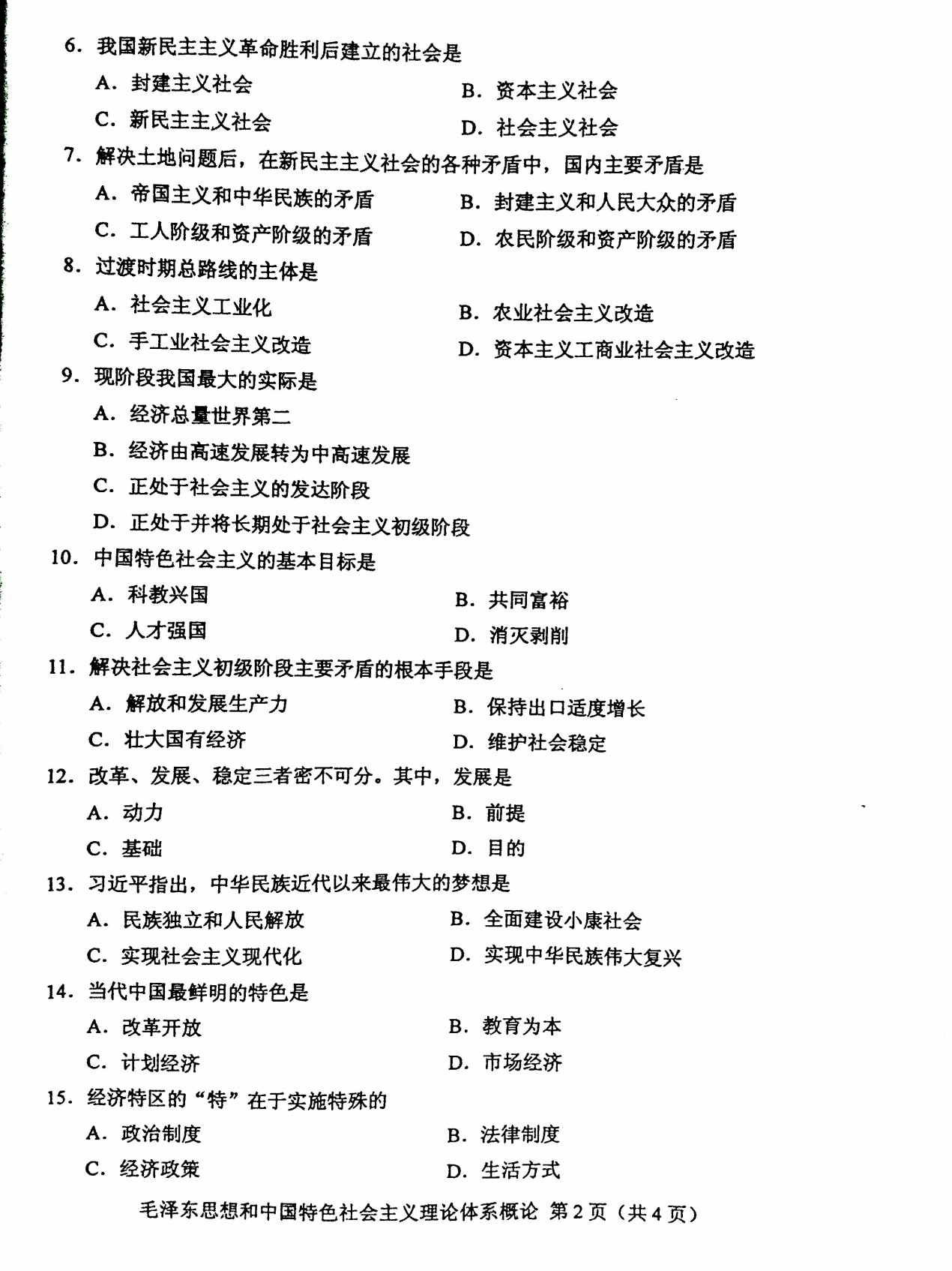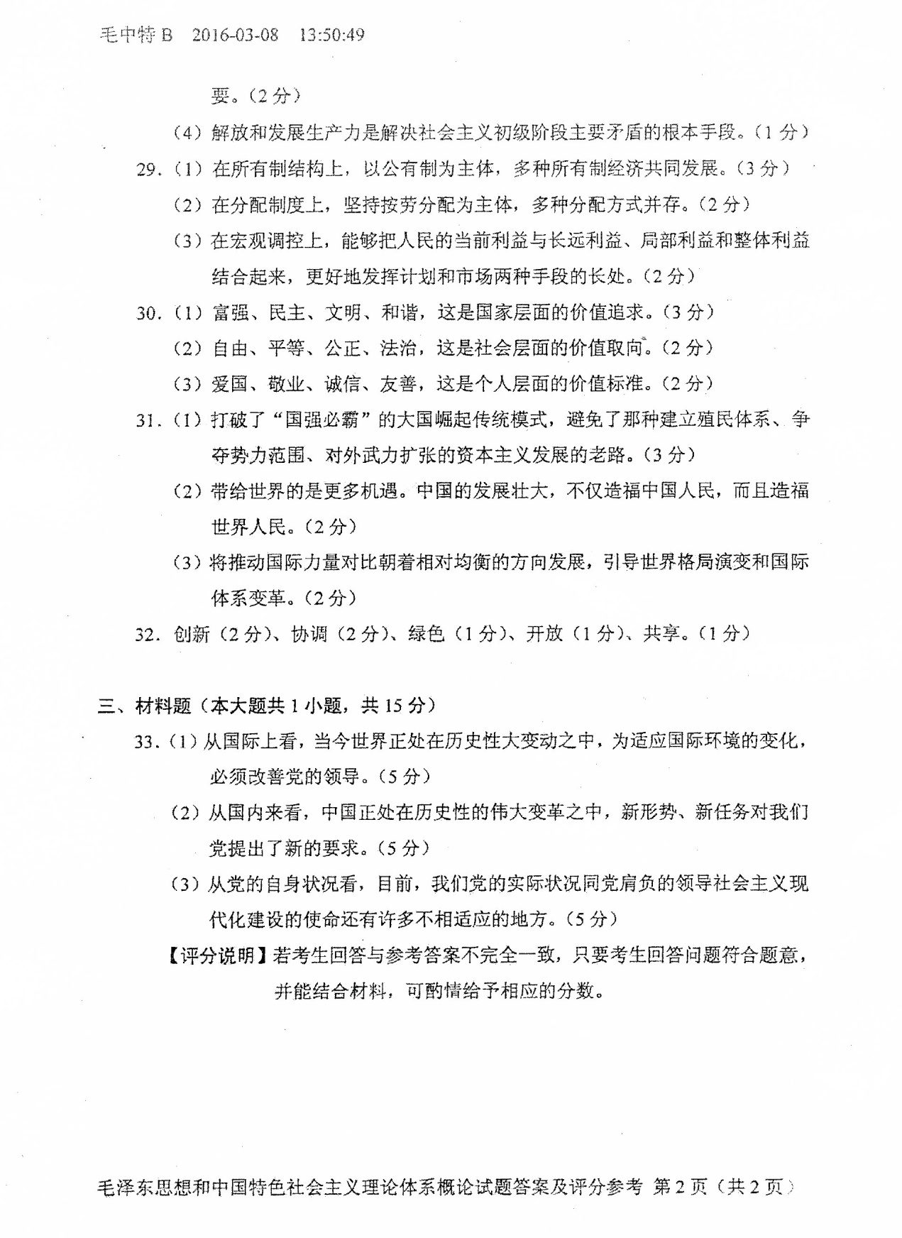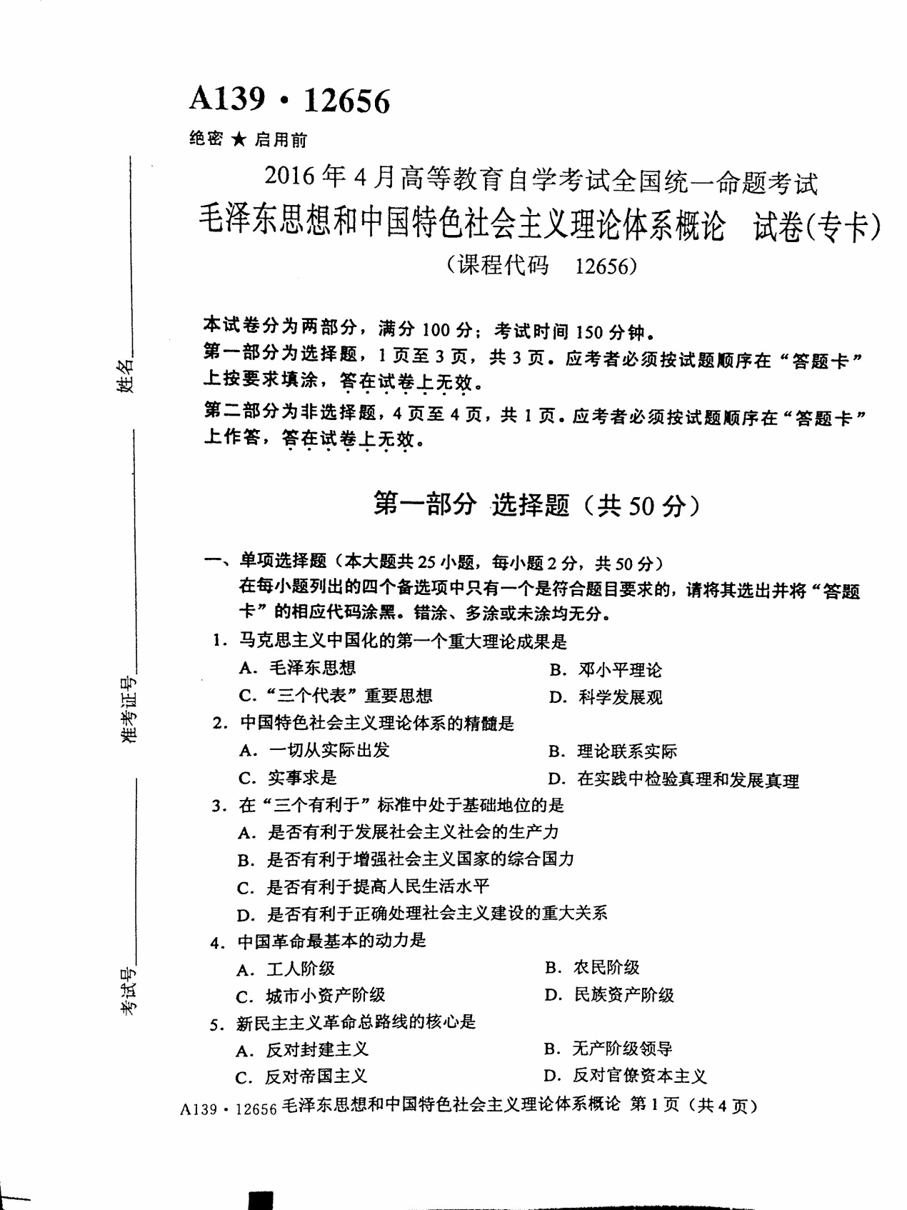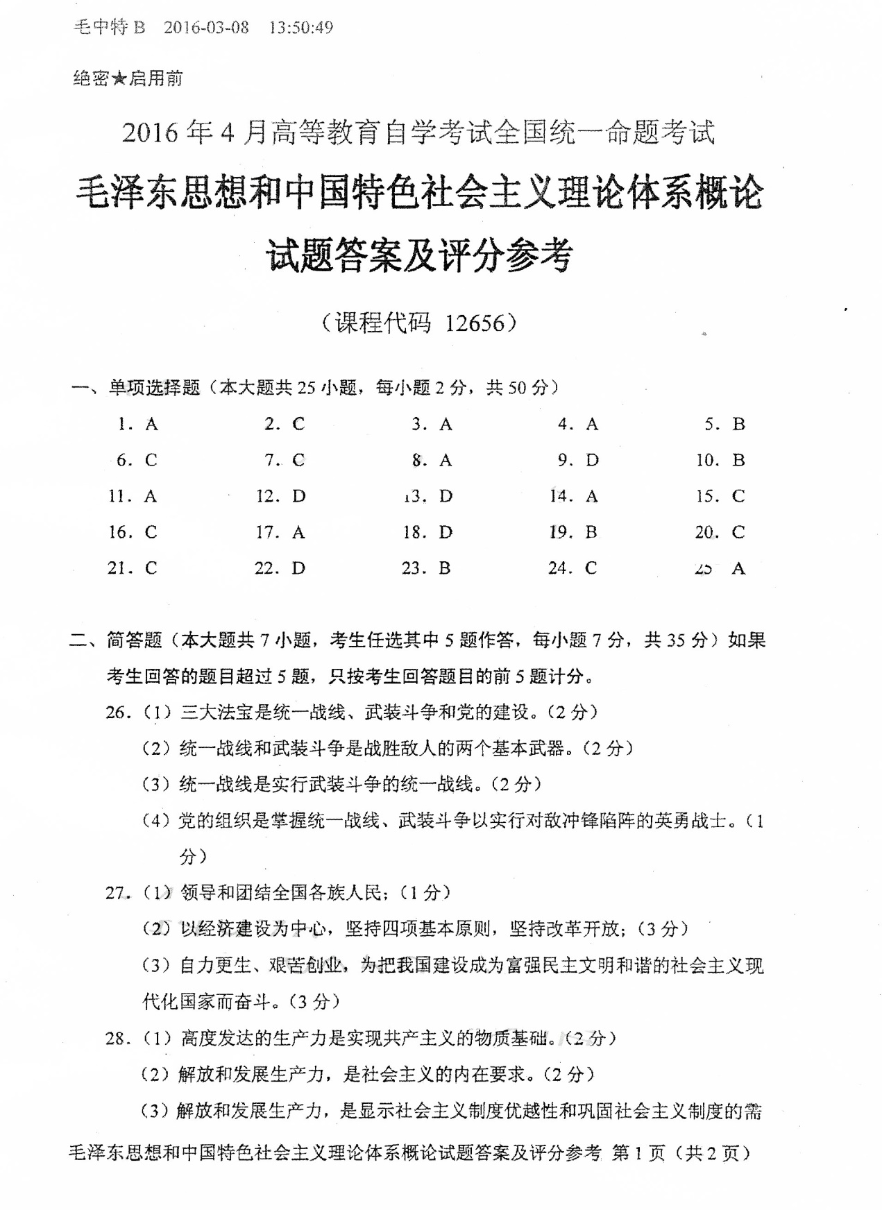 2016年04月贵州自考12656毛泽东思想和中国特色社会主义理论真题及答案