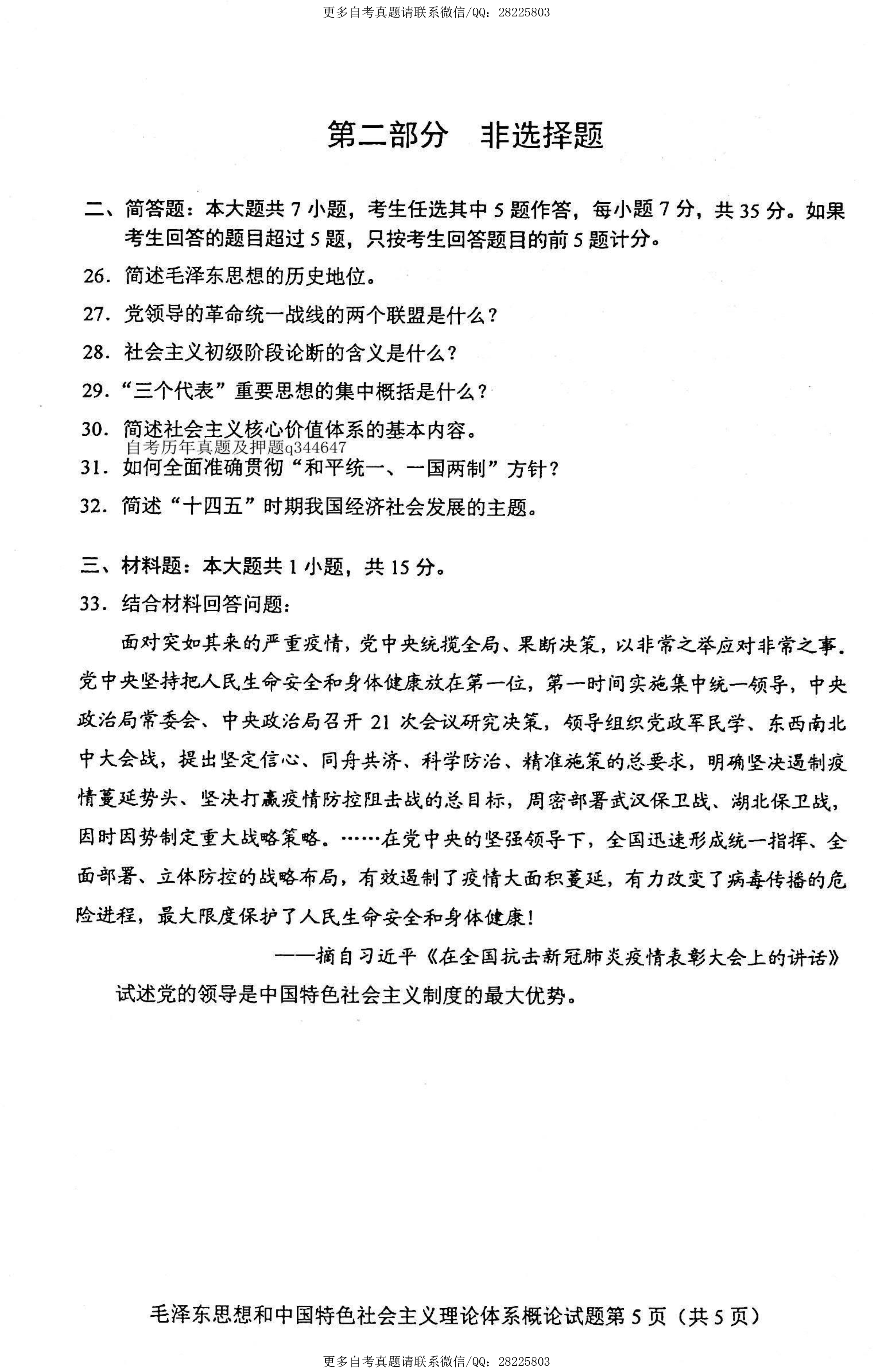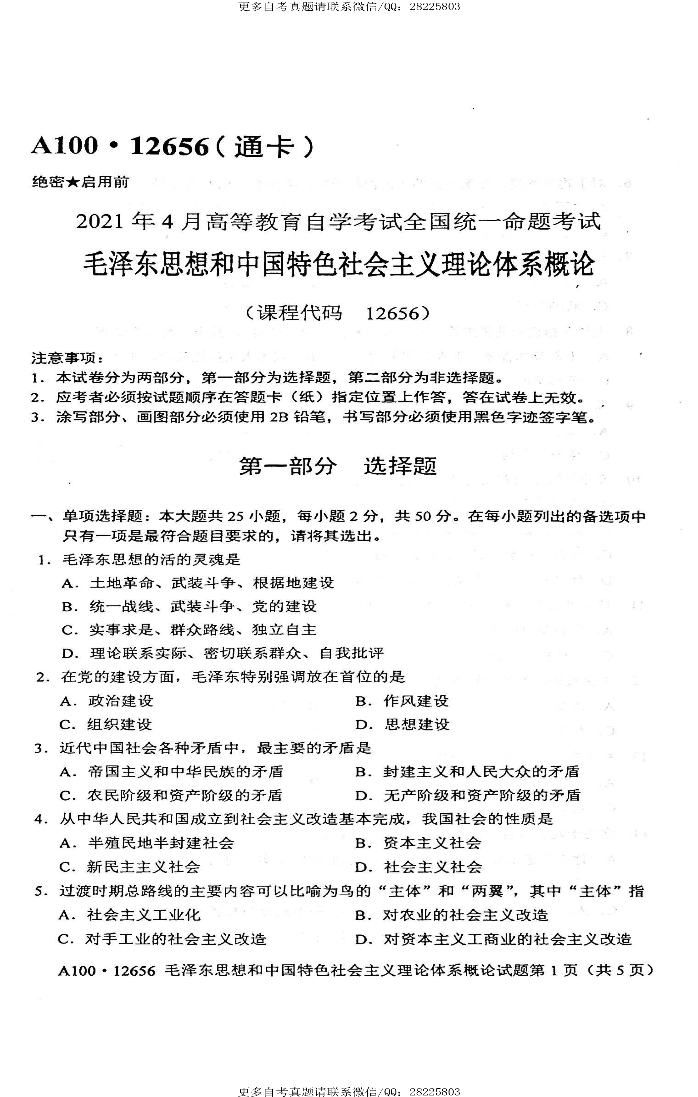 2021年4月贵州自考12656毛泽东思想和中国特色社会主义理论试题及答案解析