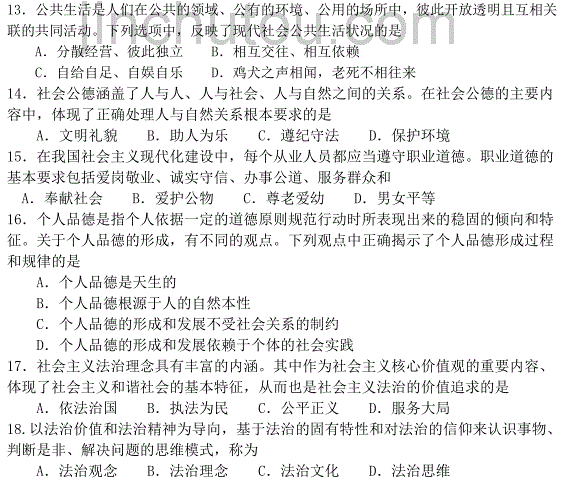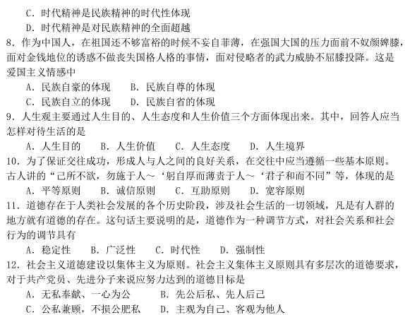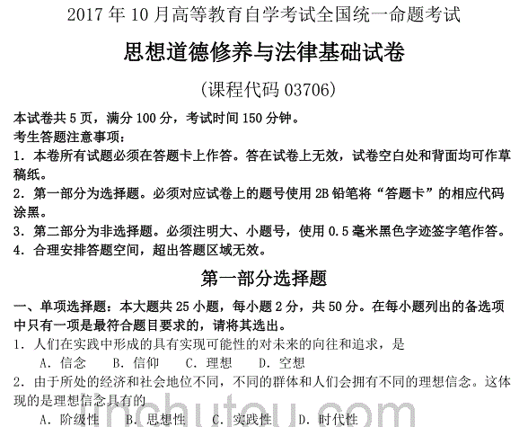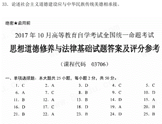 贵州省2017年10月自考03706思想道德修养与法律基础试题及答案