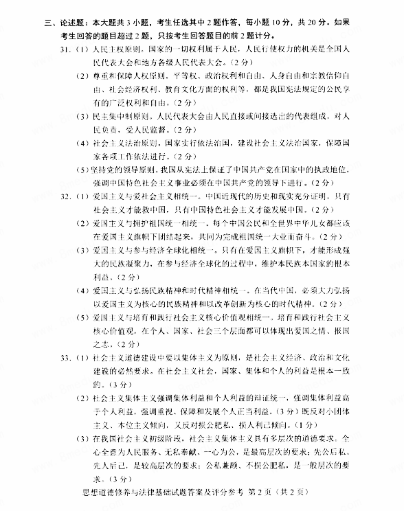 三、论述题:本大题共3小题,考生任选其中2题作答,每小题10分,共20分。如果
