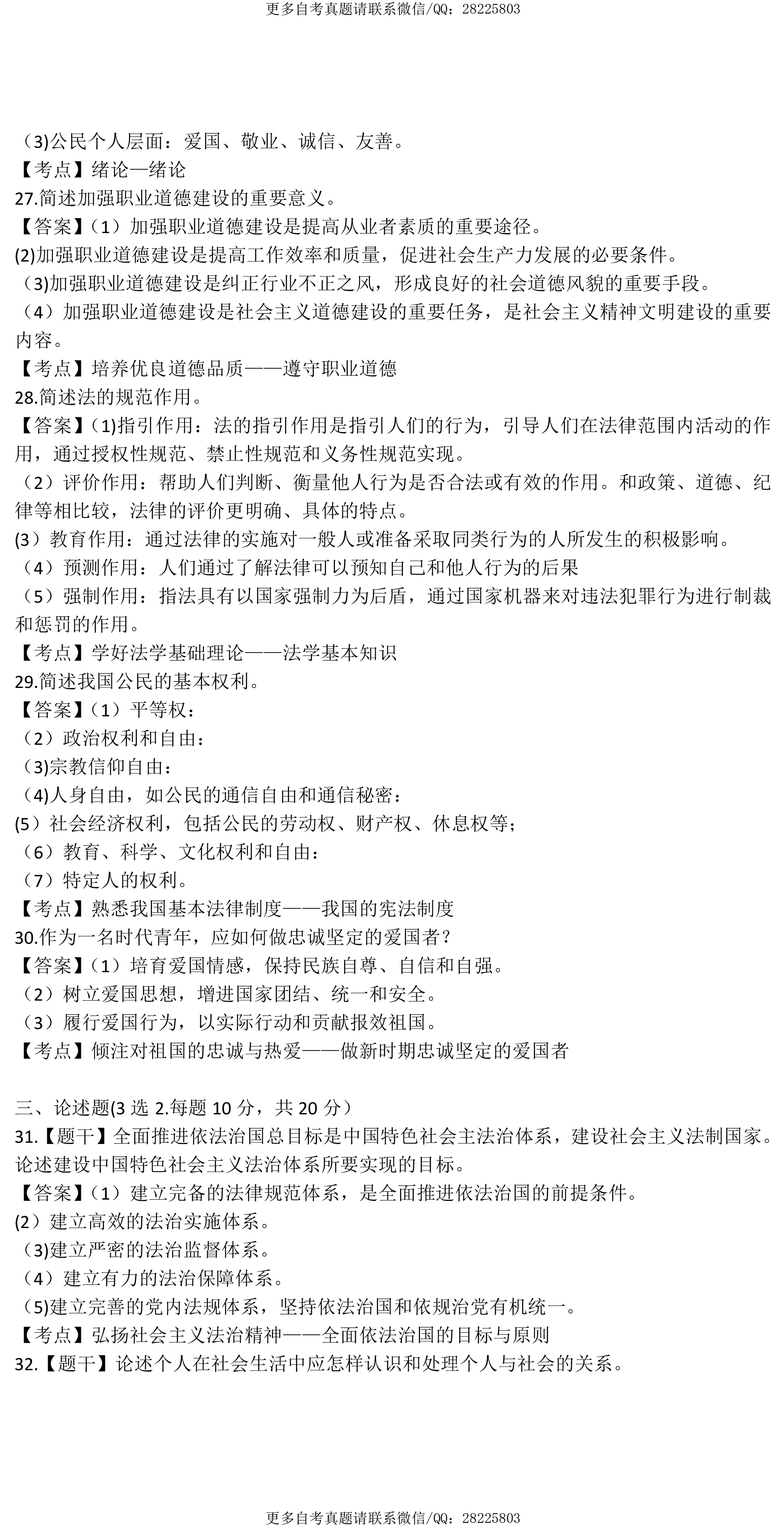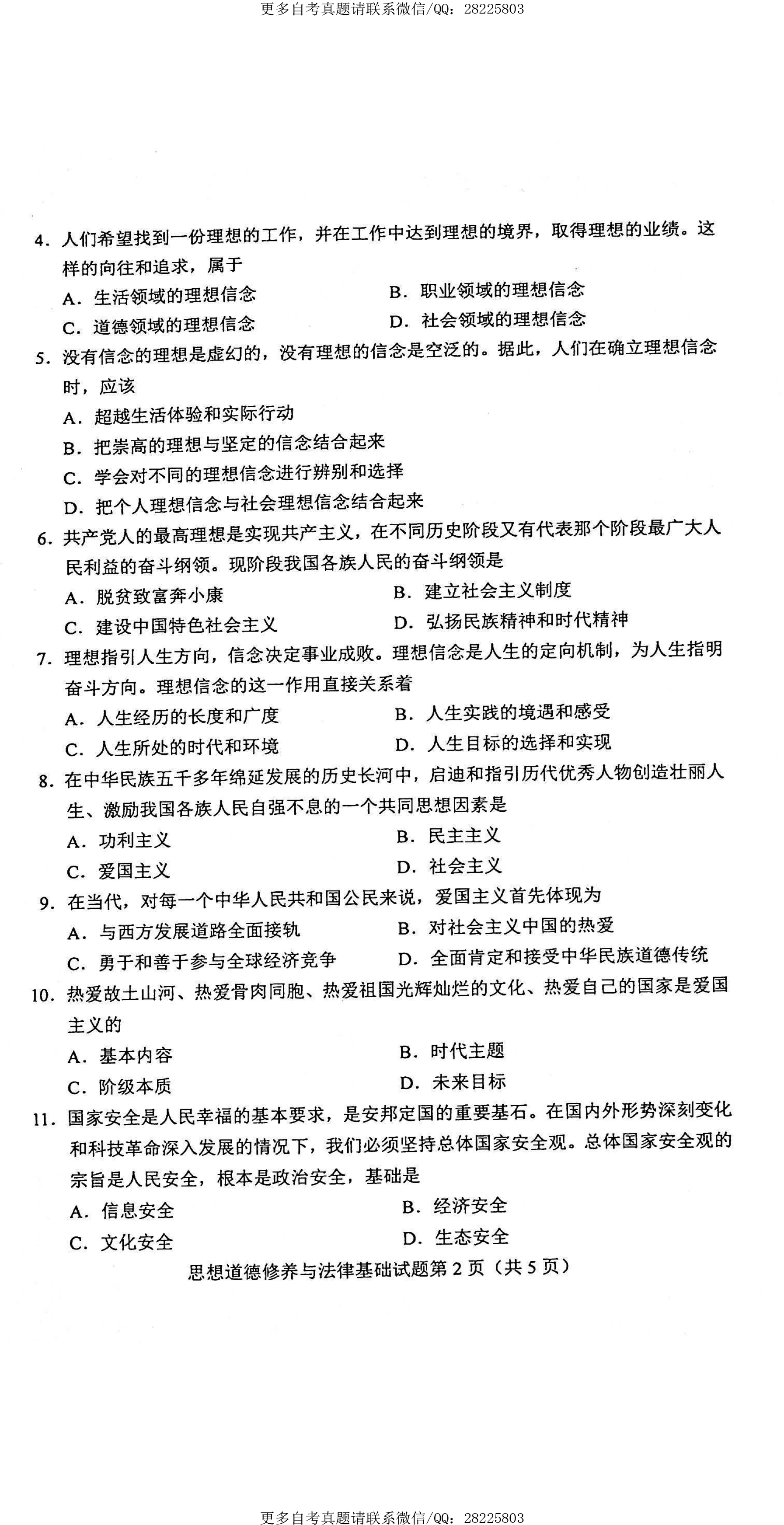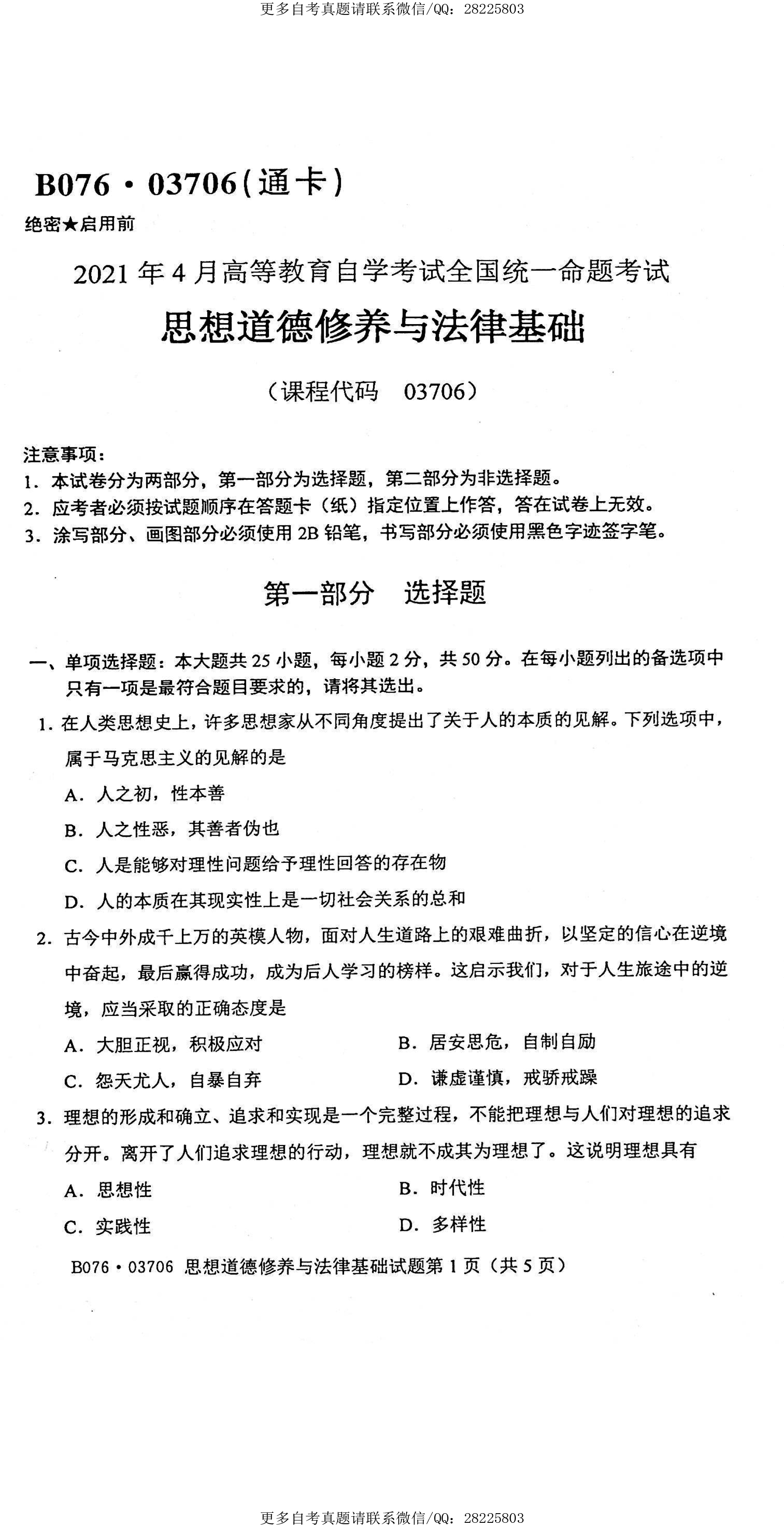 2021年4月贵州省自考03706思想道德修养与法律基础真题及答案