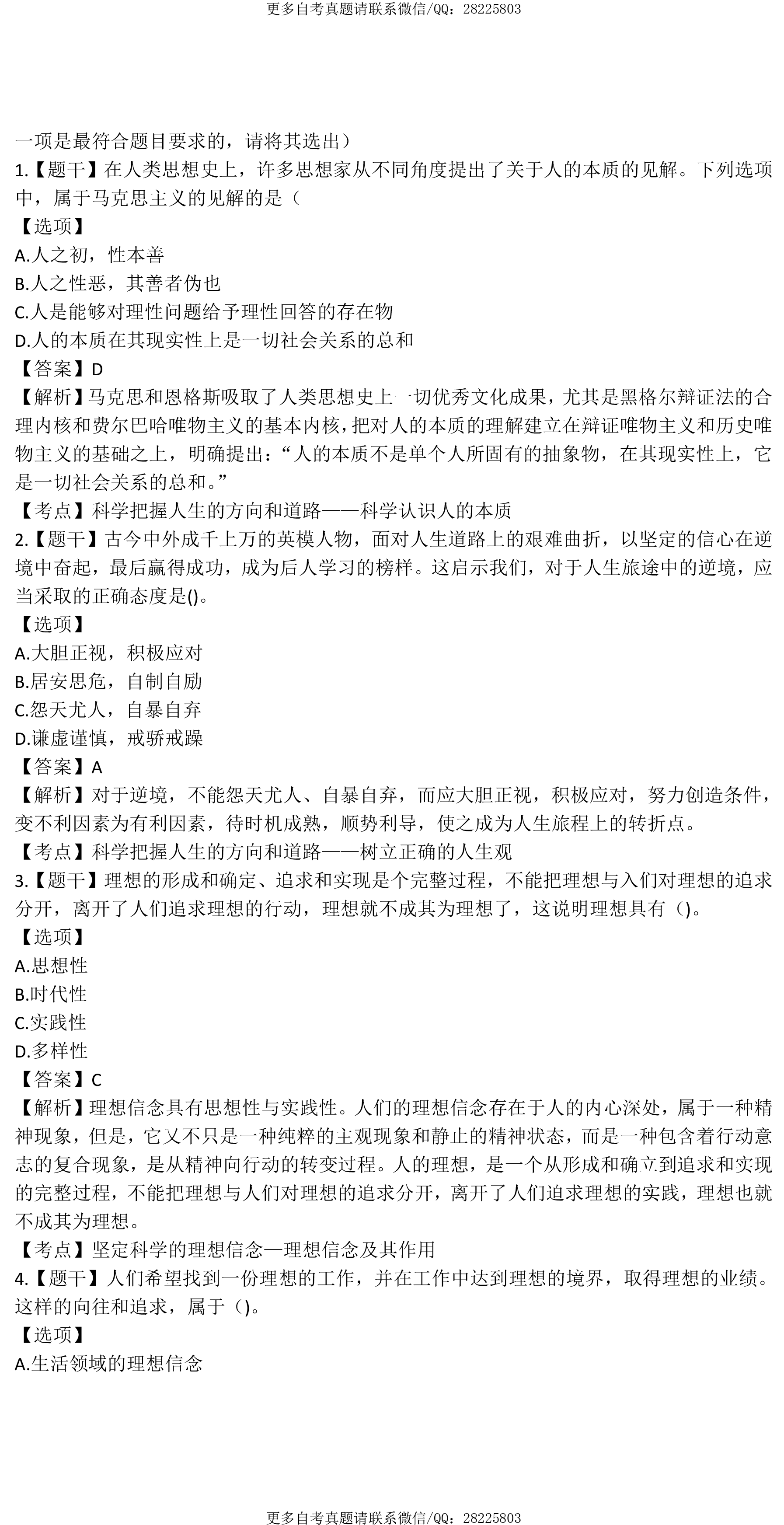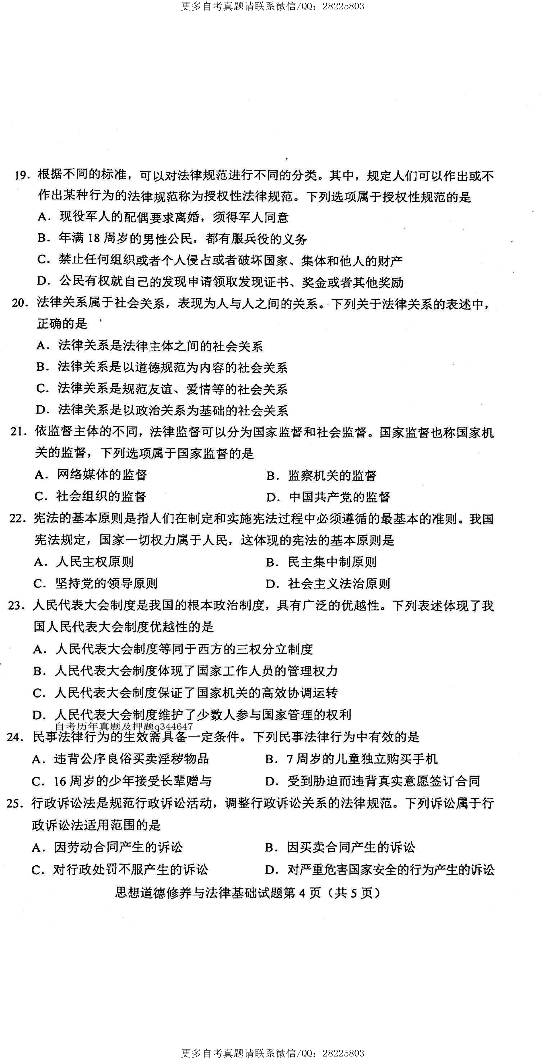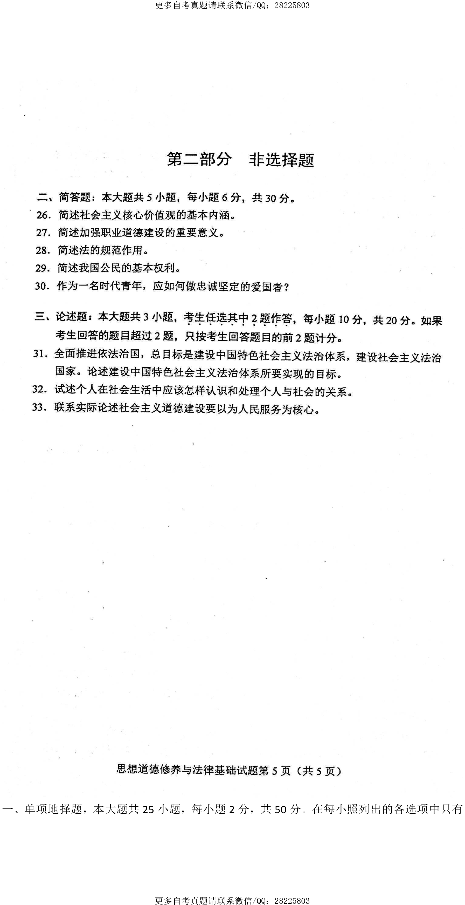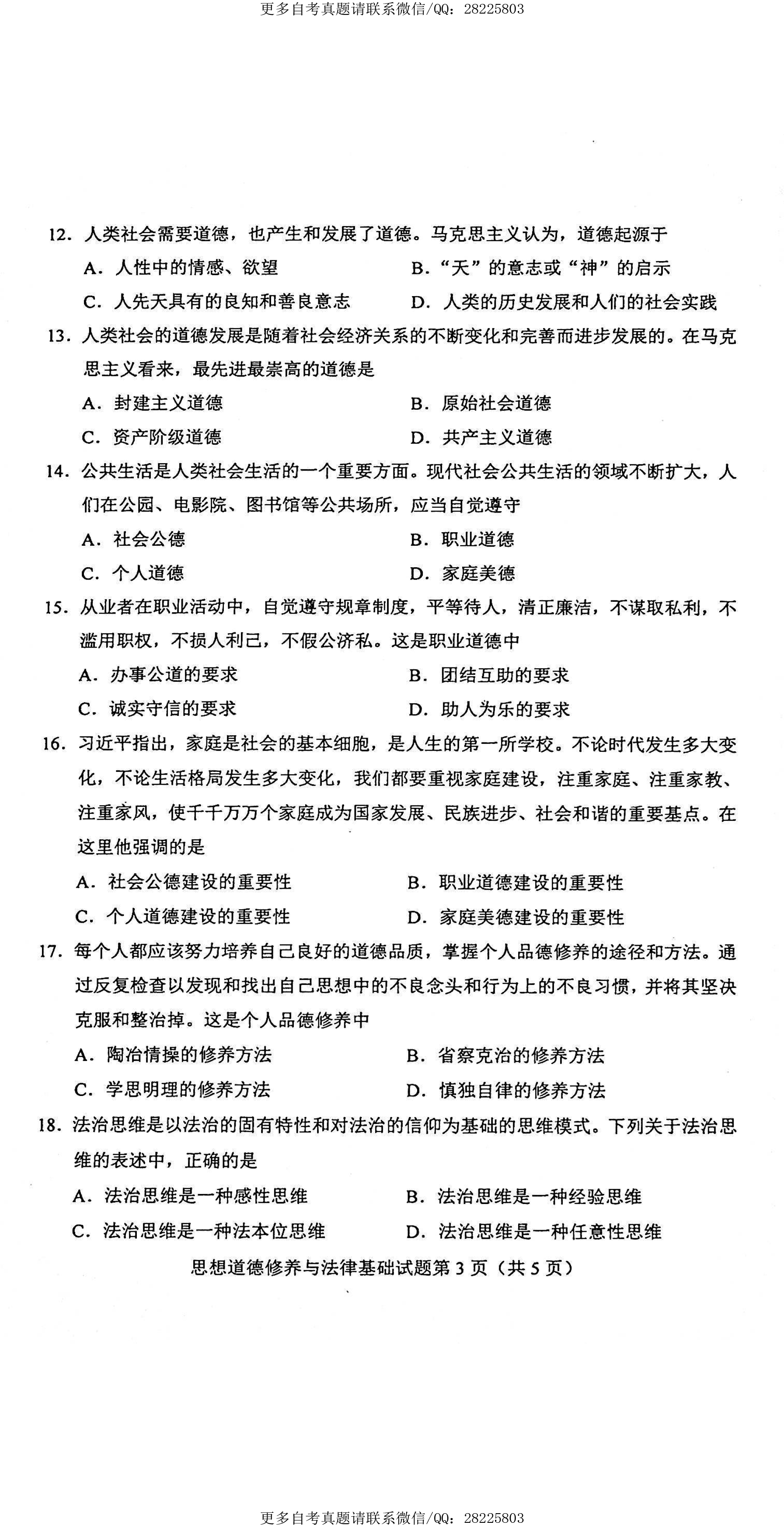 2021年4月贵州省自考03706思想道德修养与法律基础真题及答案
