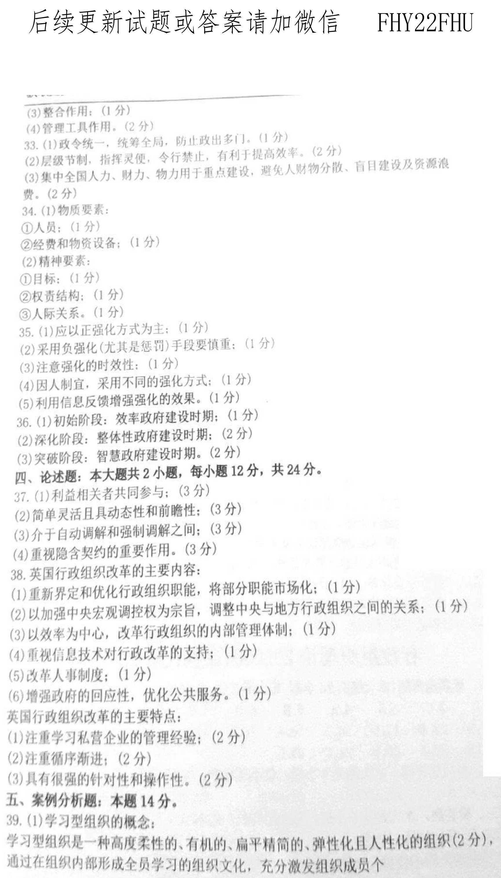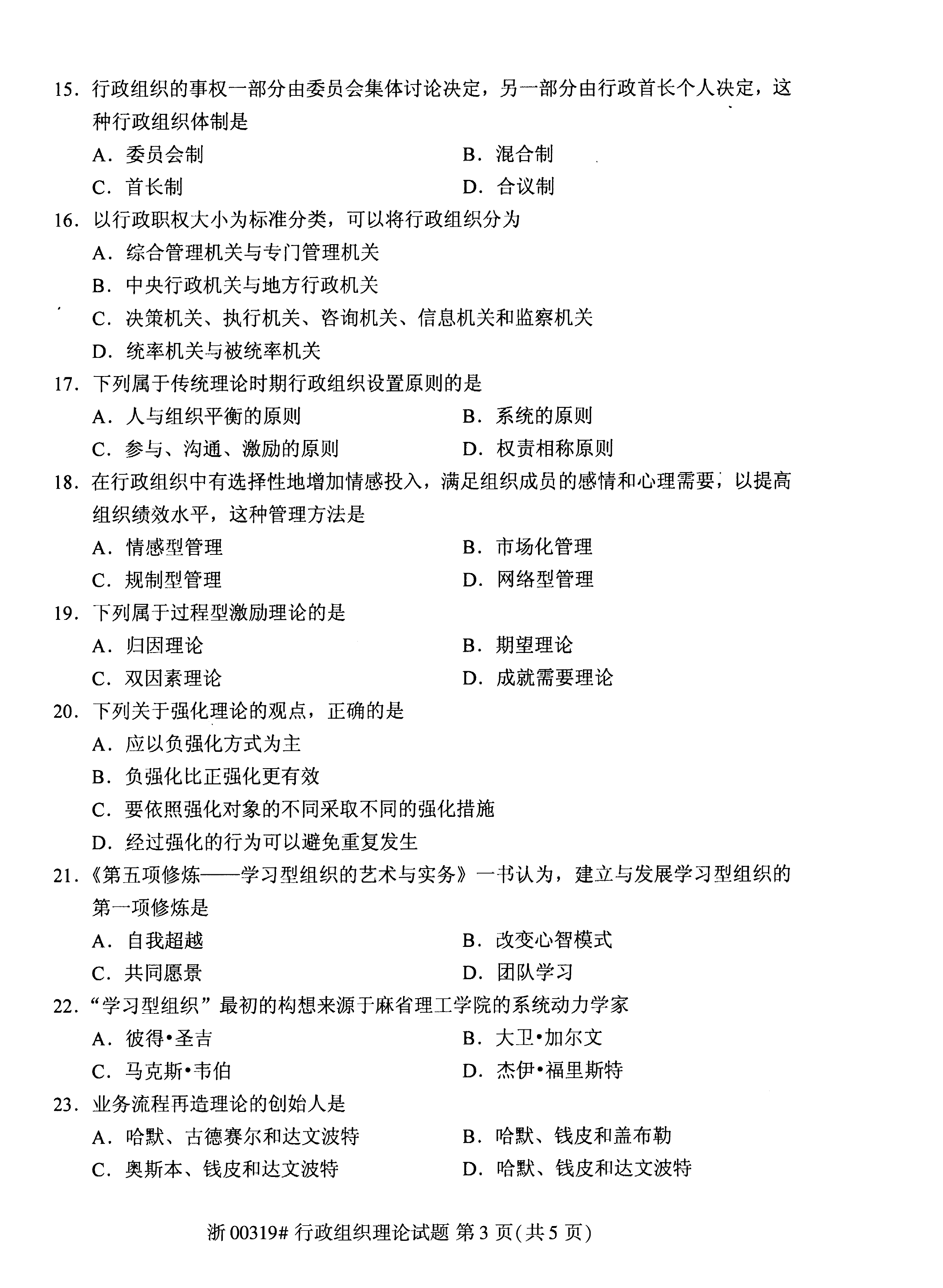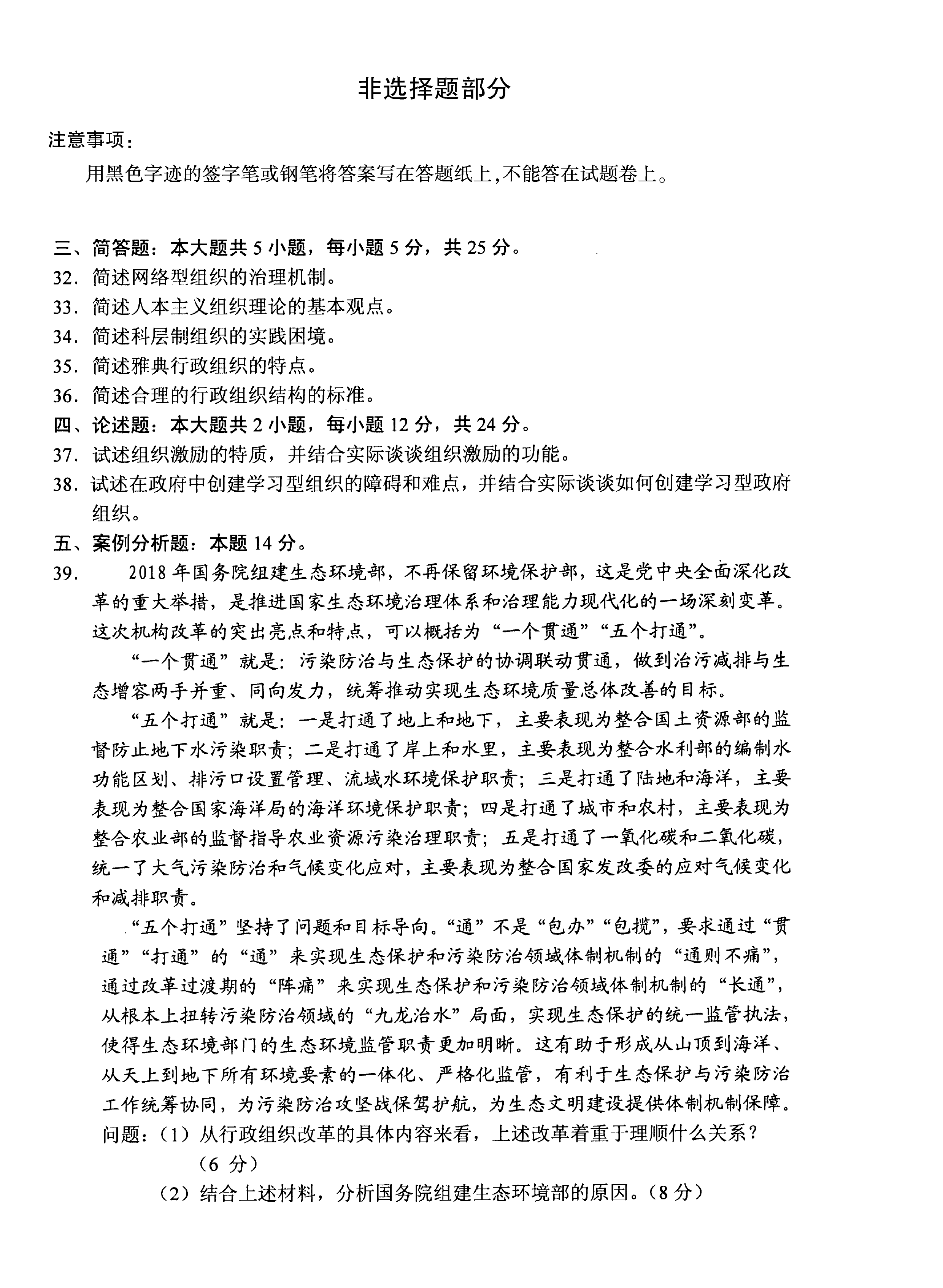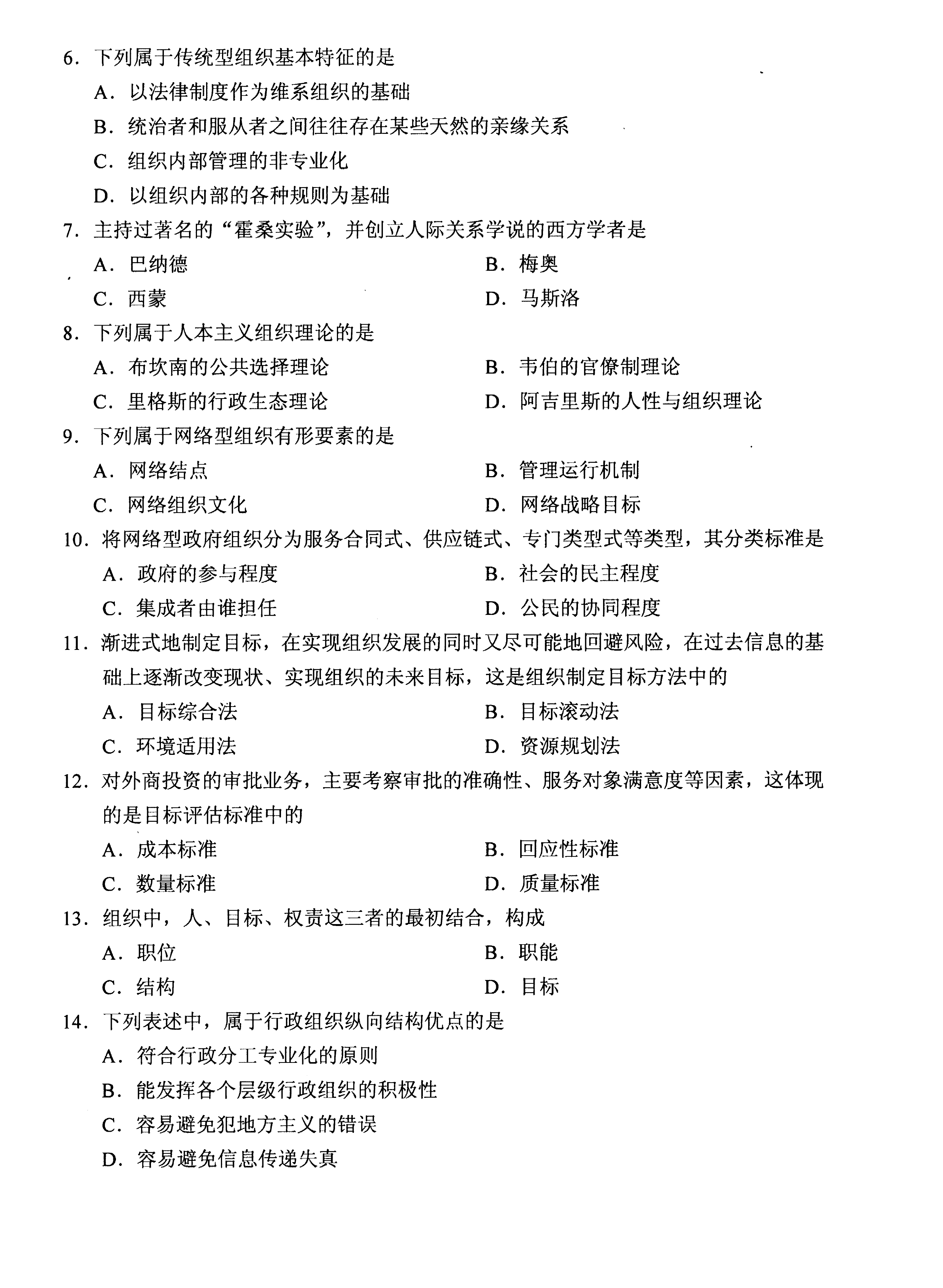贵州省2020年10月自考00319行政组织理论真题及答案