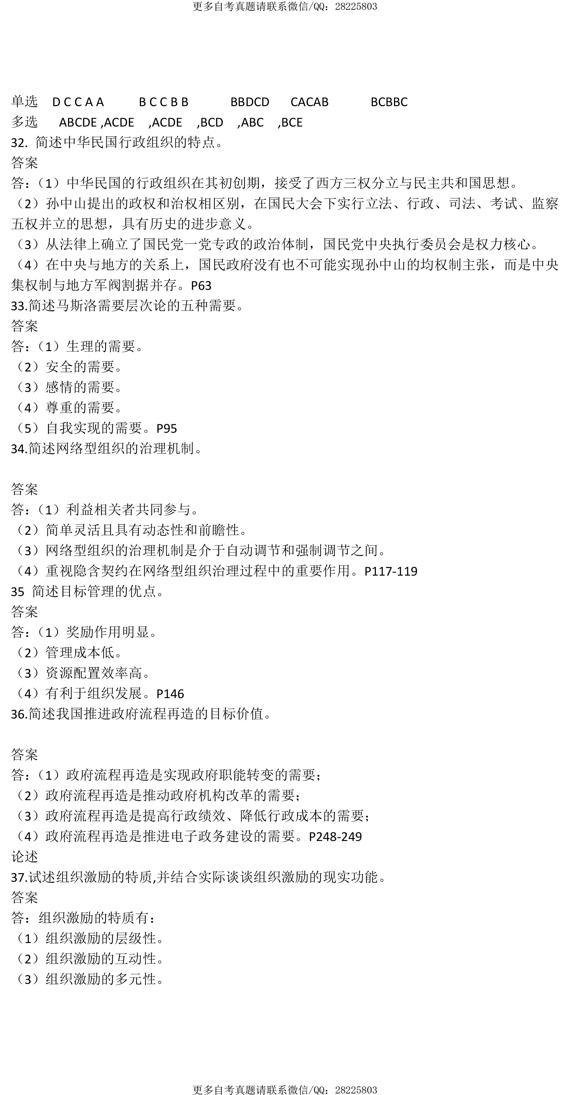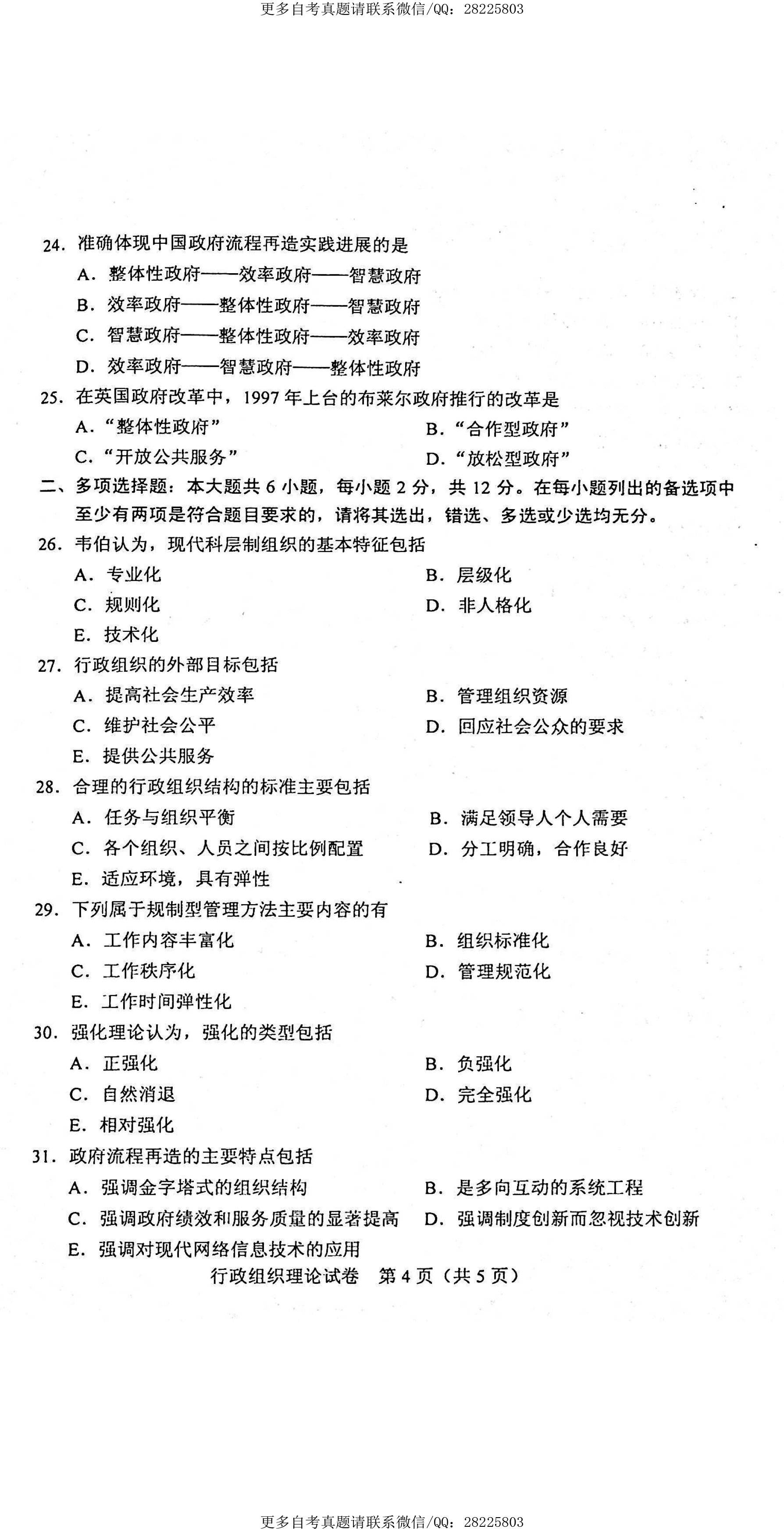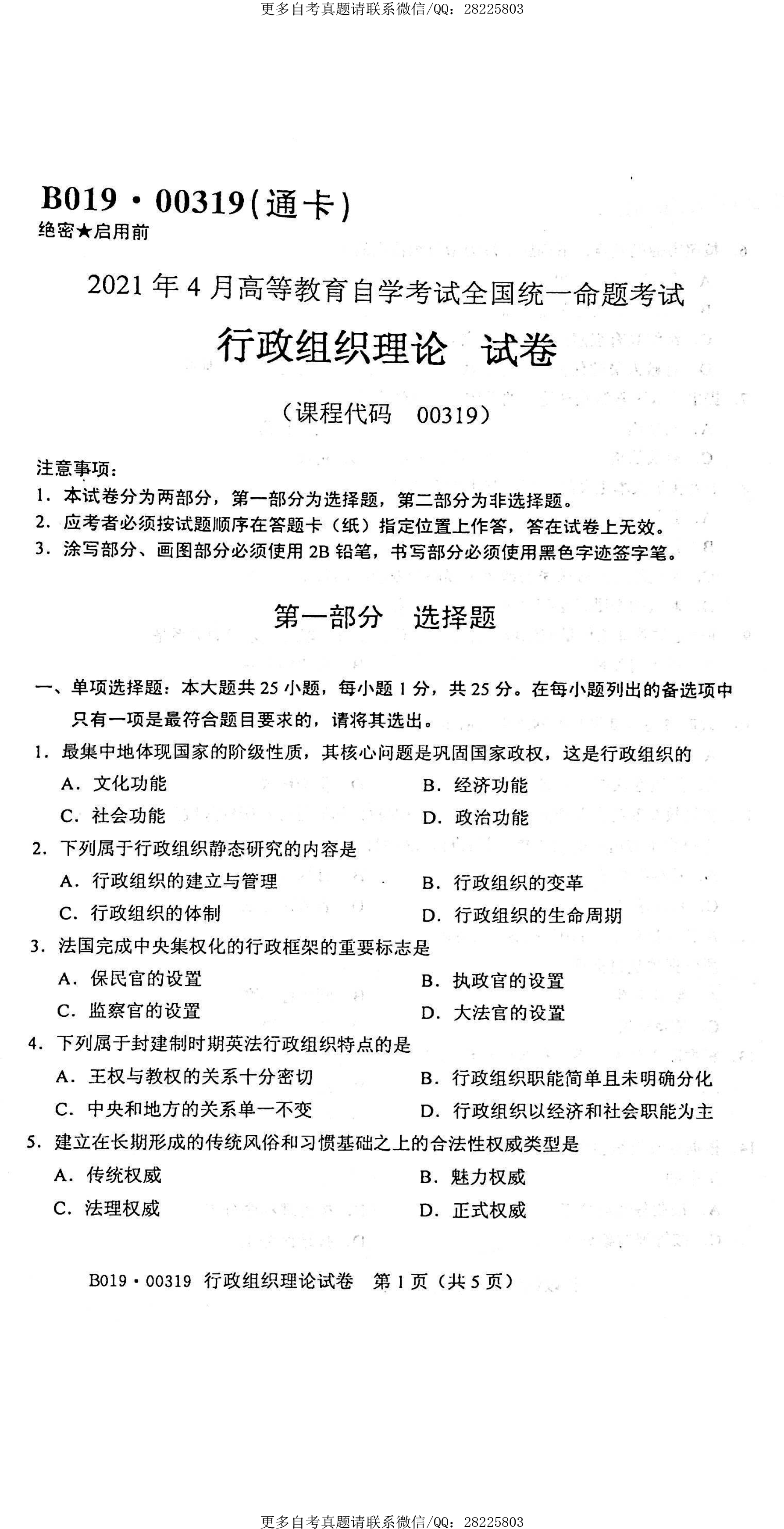 贵州省2021年04月自考00319行政组织理论真题及答案