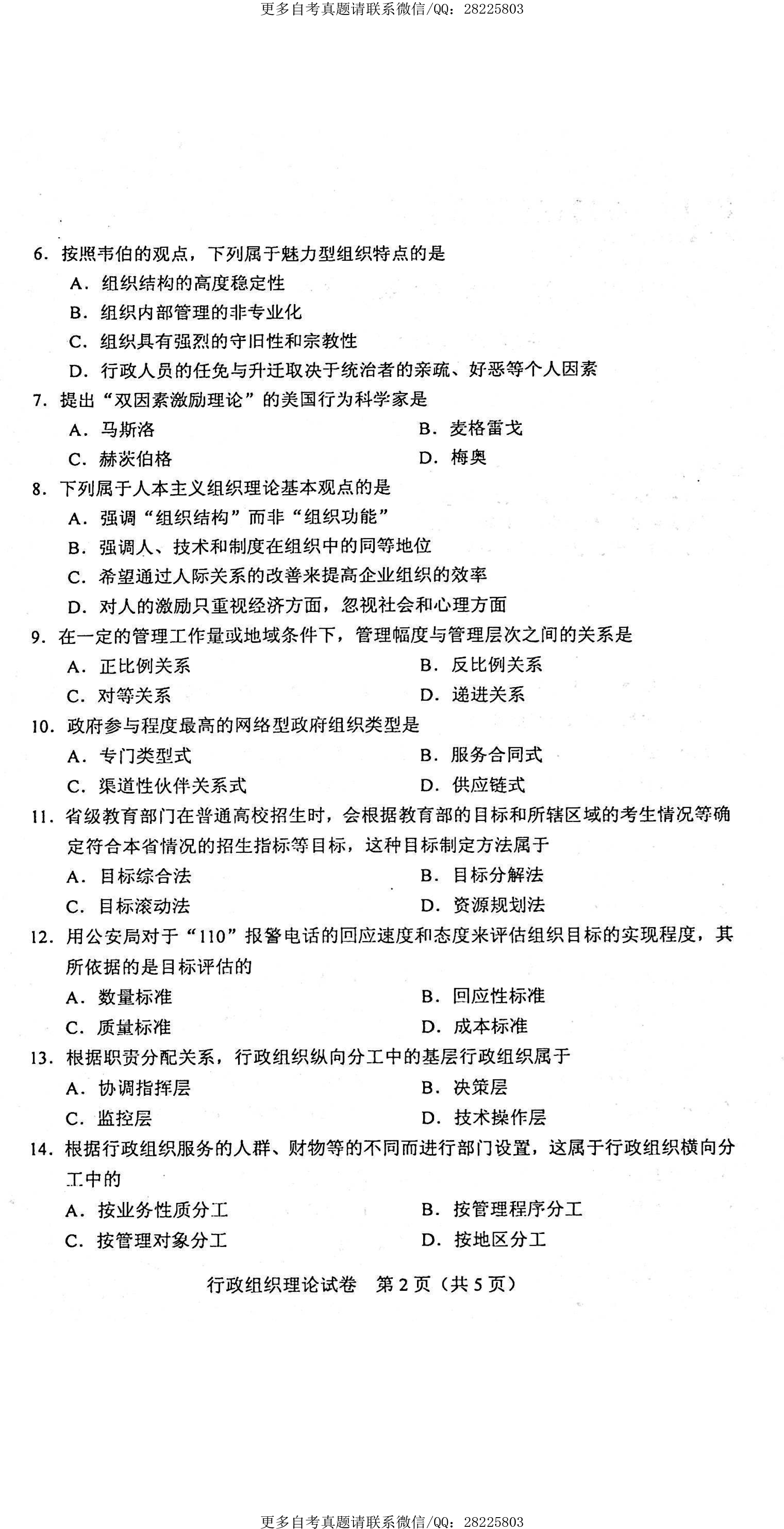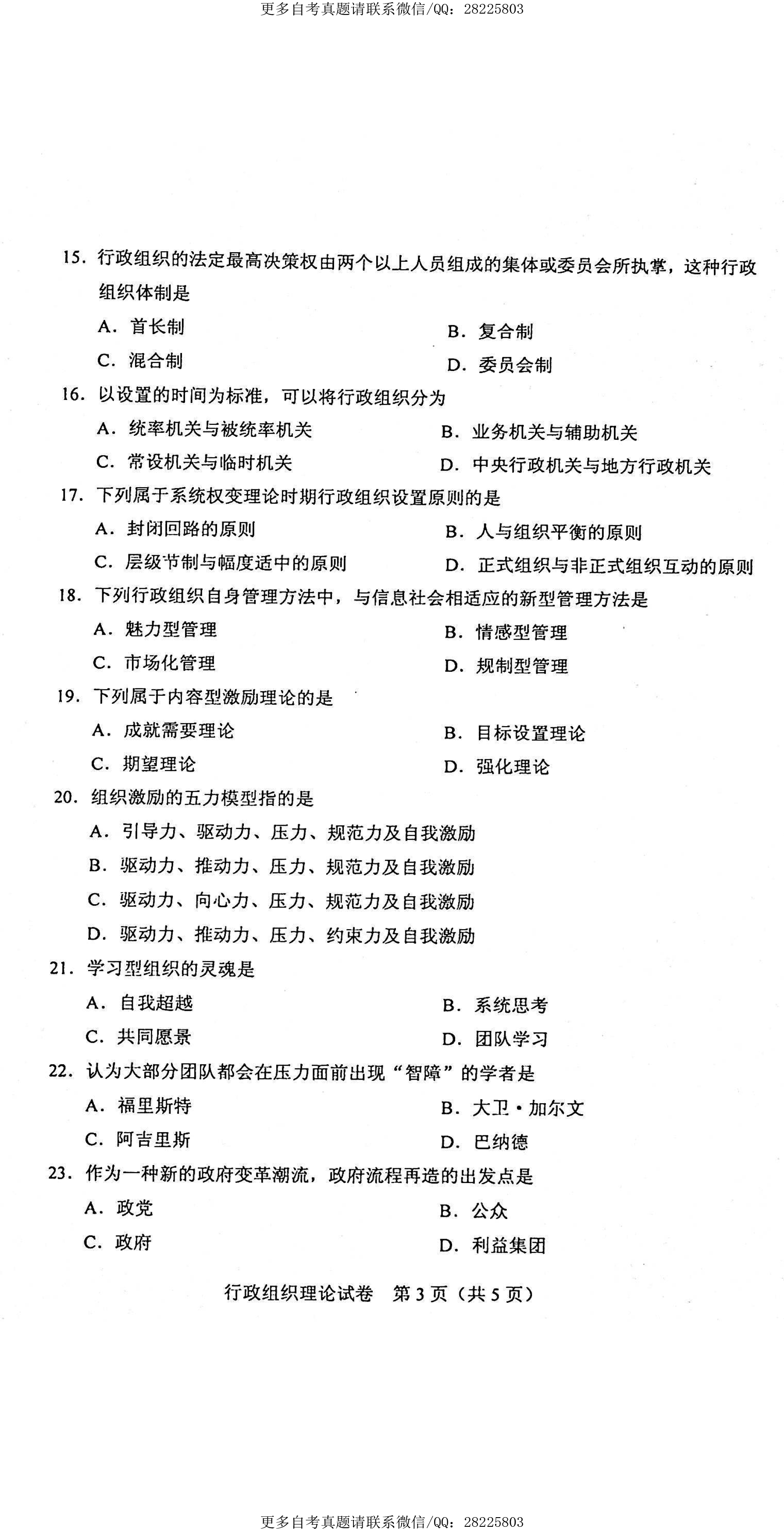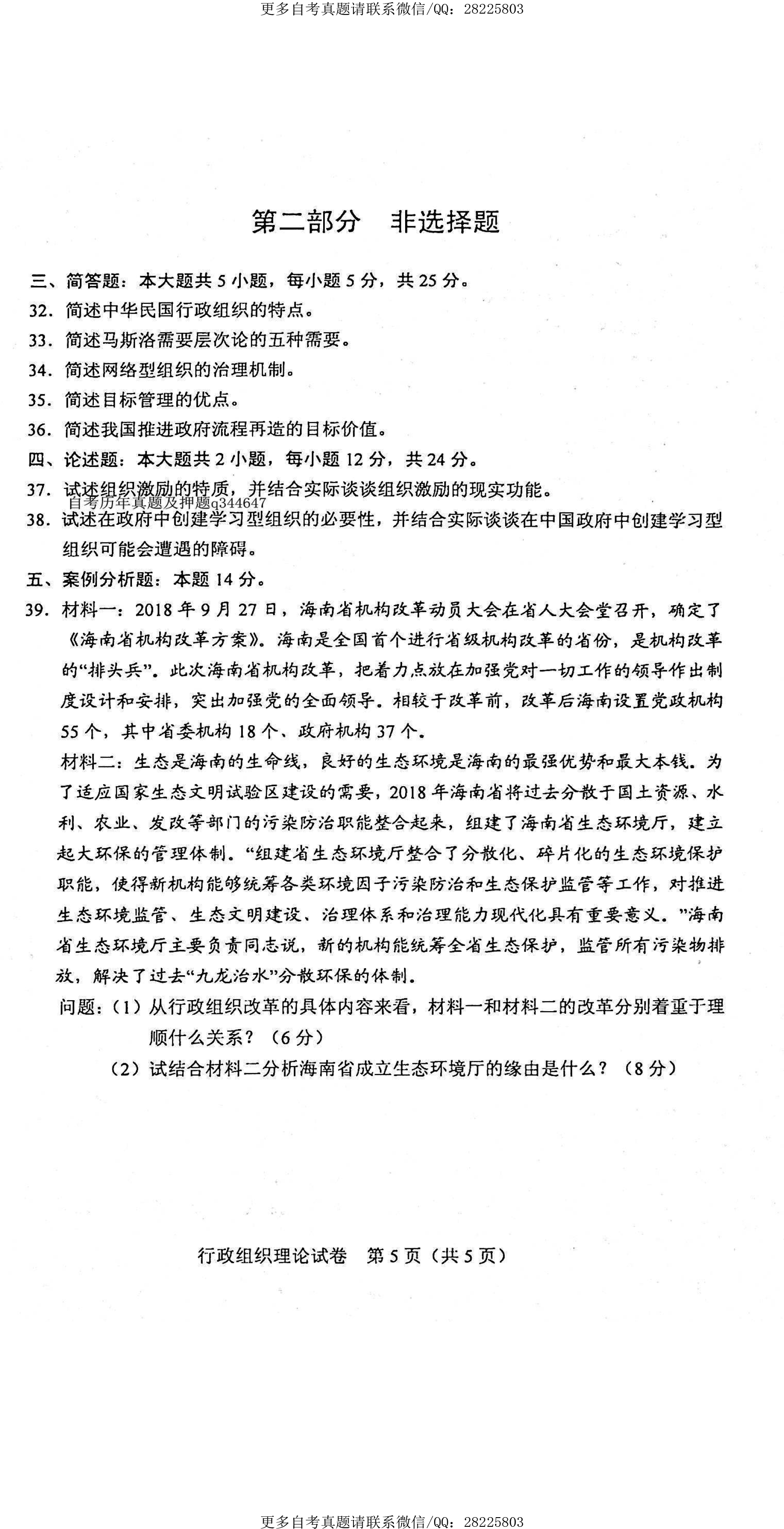 贵州省2021年04月自考00319行政组织理论真题及答案