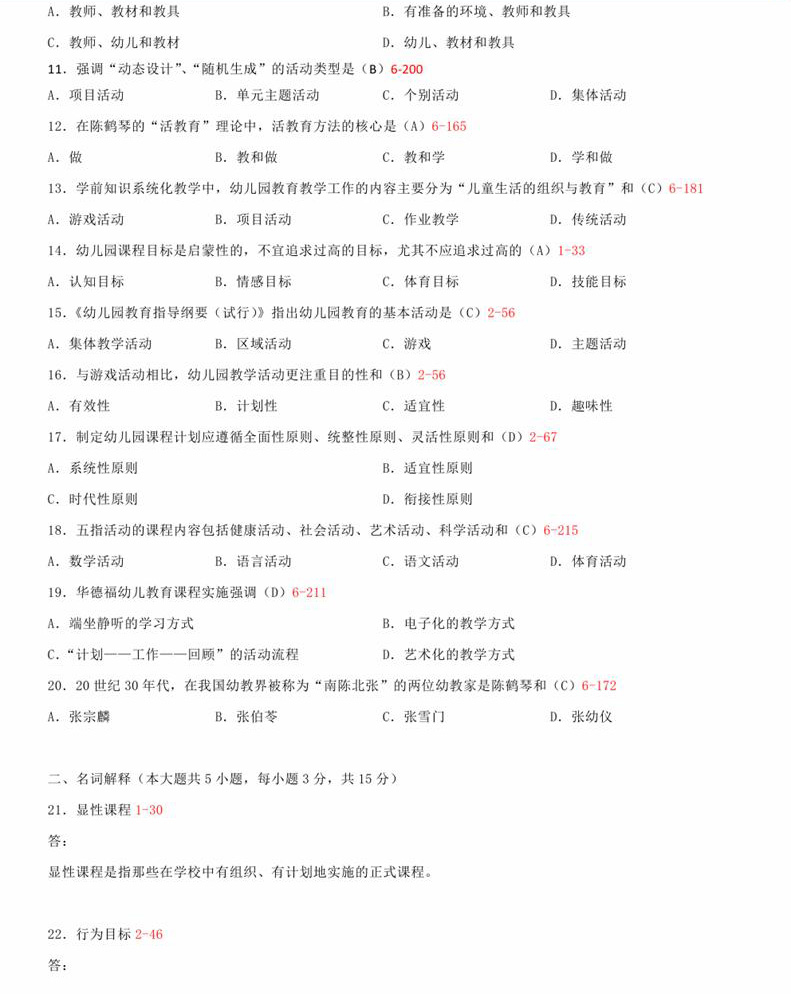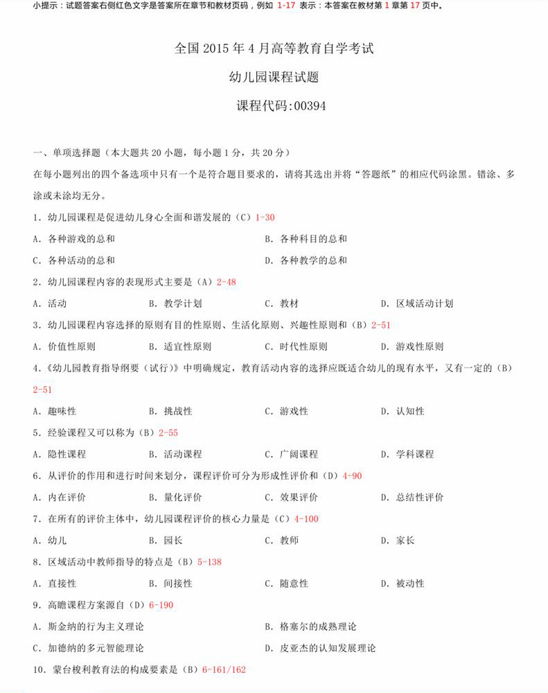 2015年04月贵州省自学考试00394幼儿园课程真题及答案
