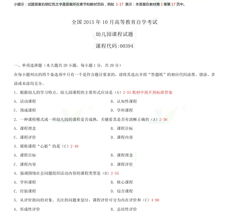 贵州省2015年10月自学考试00394幼儿园课程真题及答案