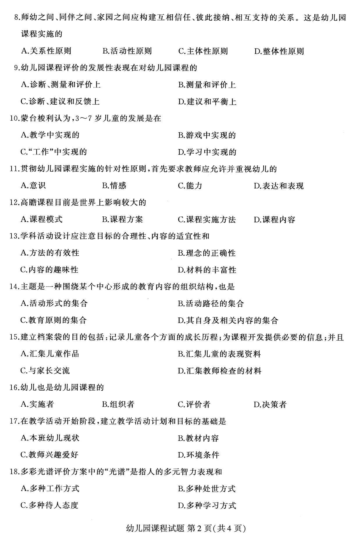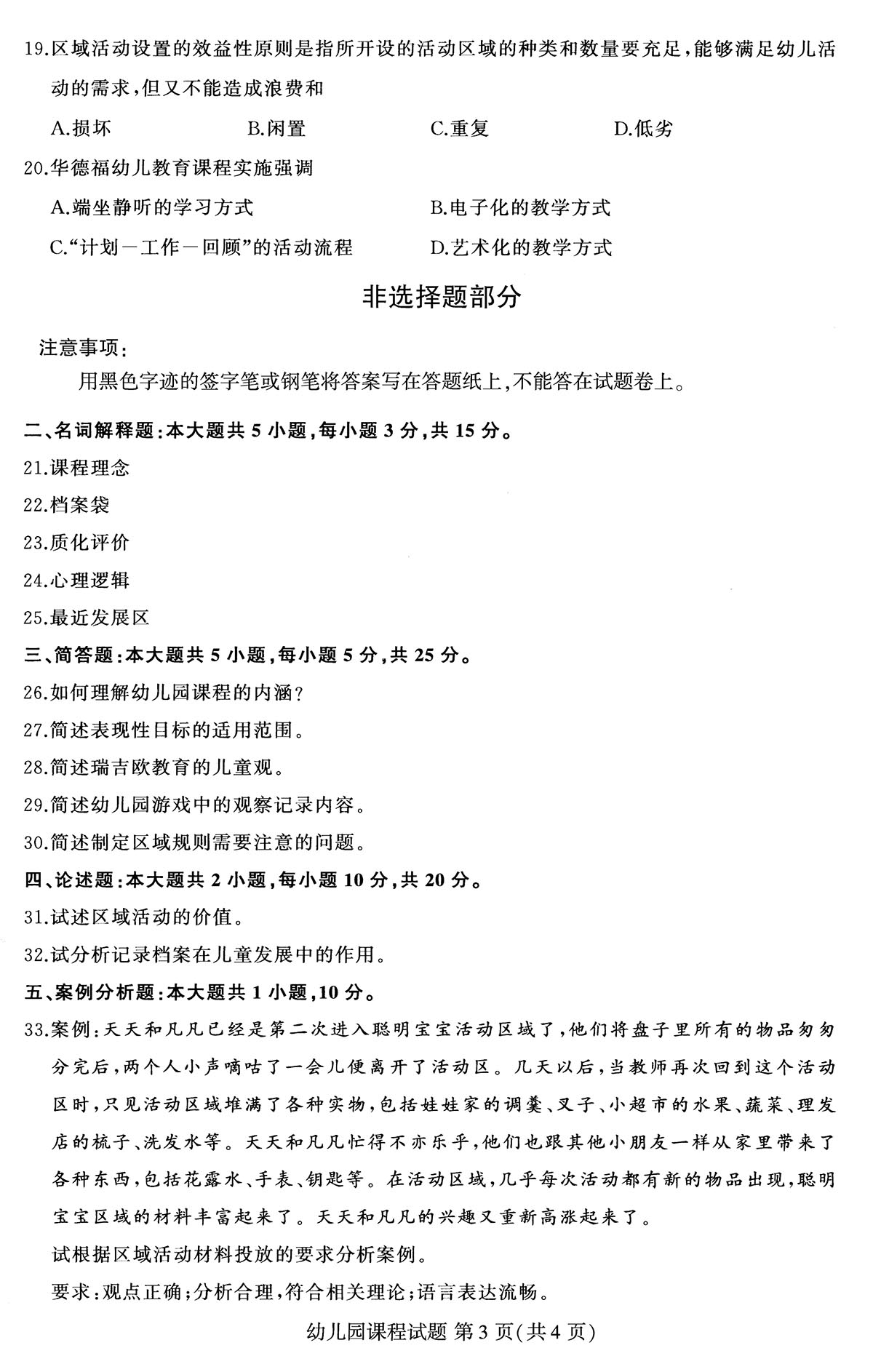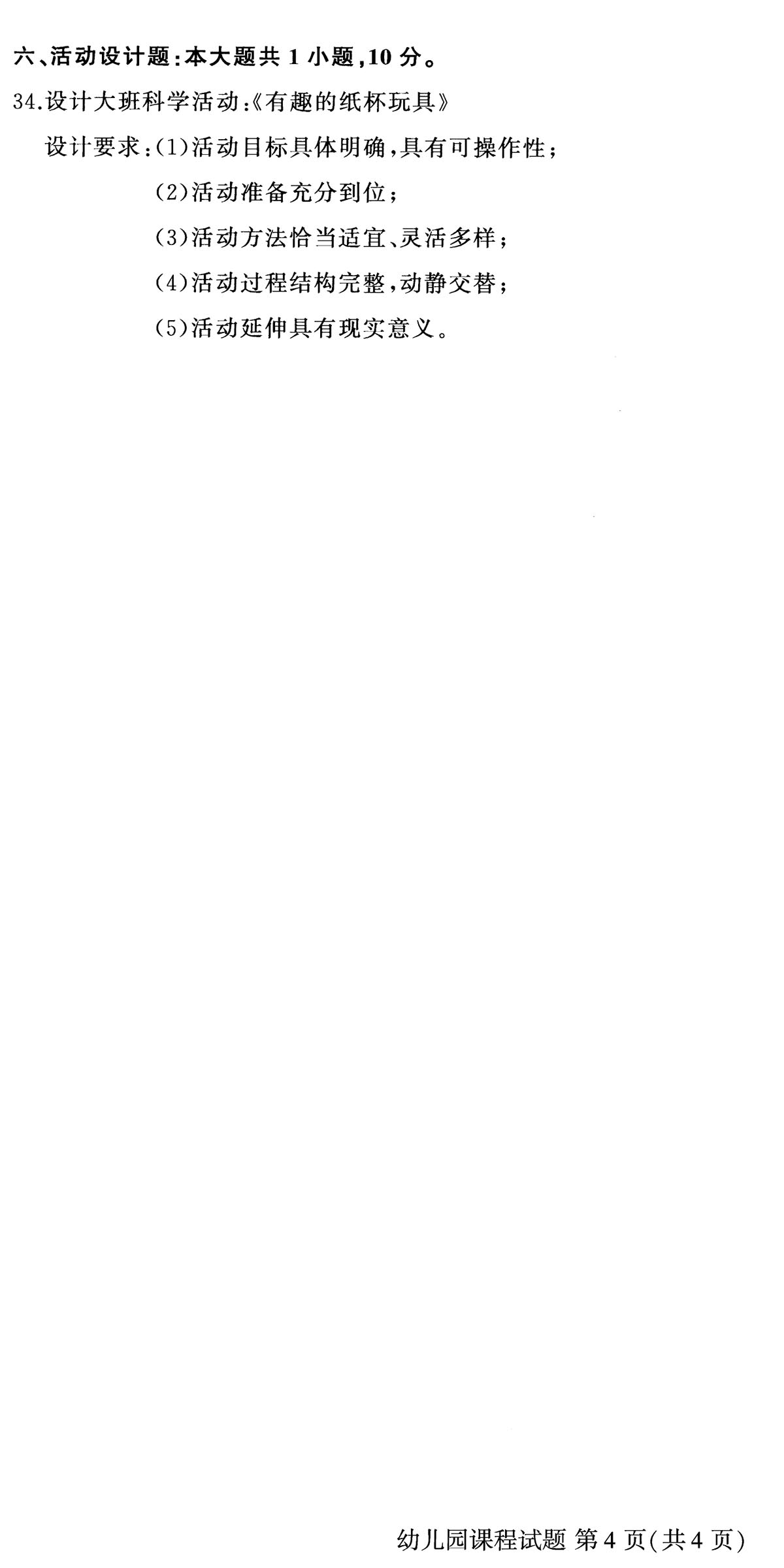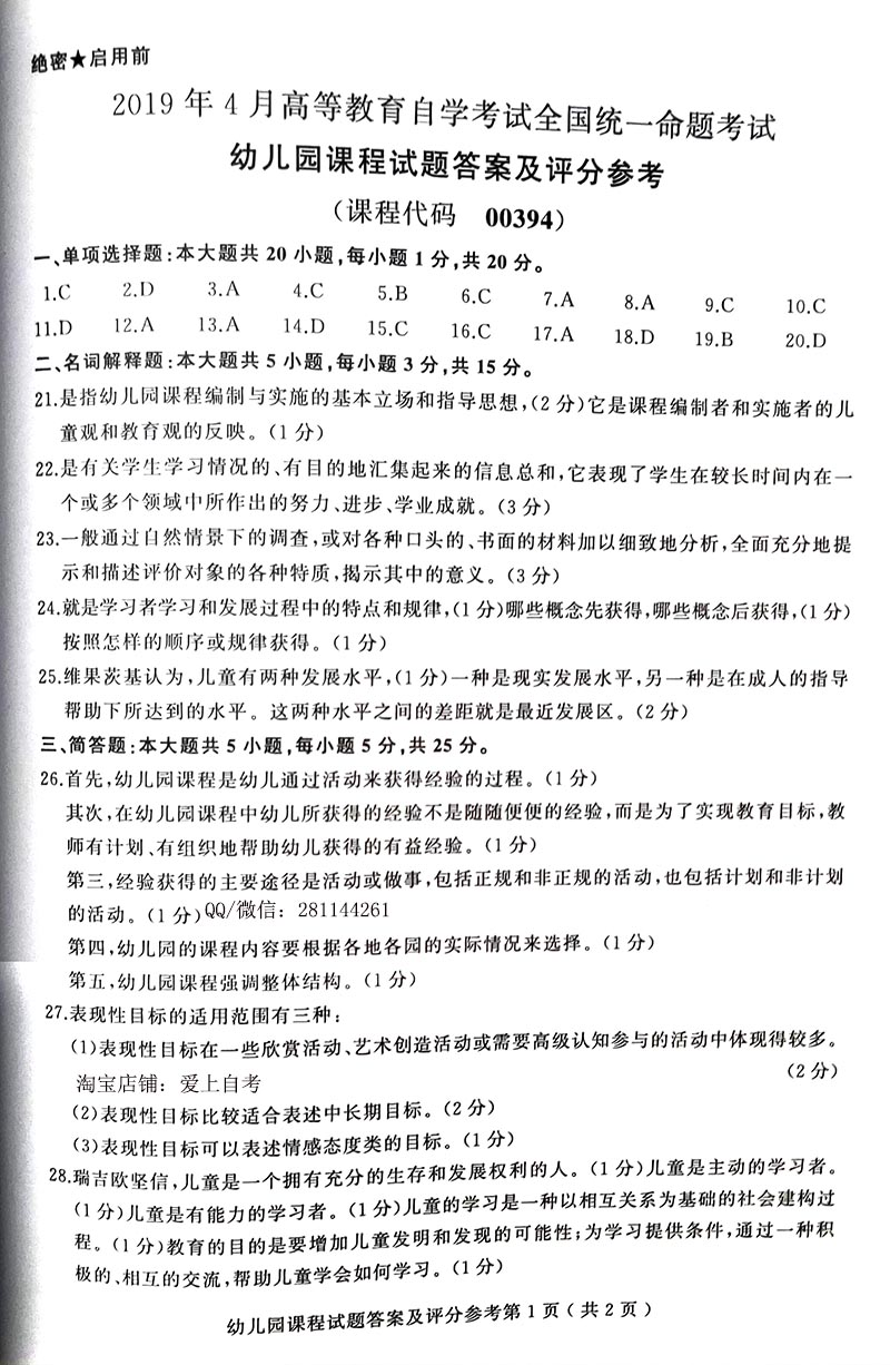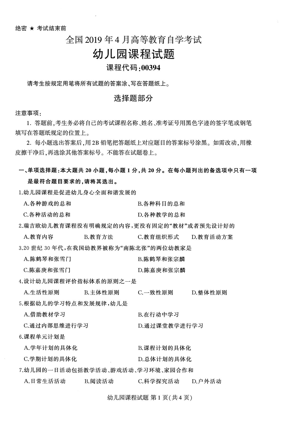 贵州省2019年04月自学考试00394幼儿园课程真题及答案