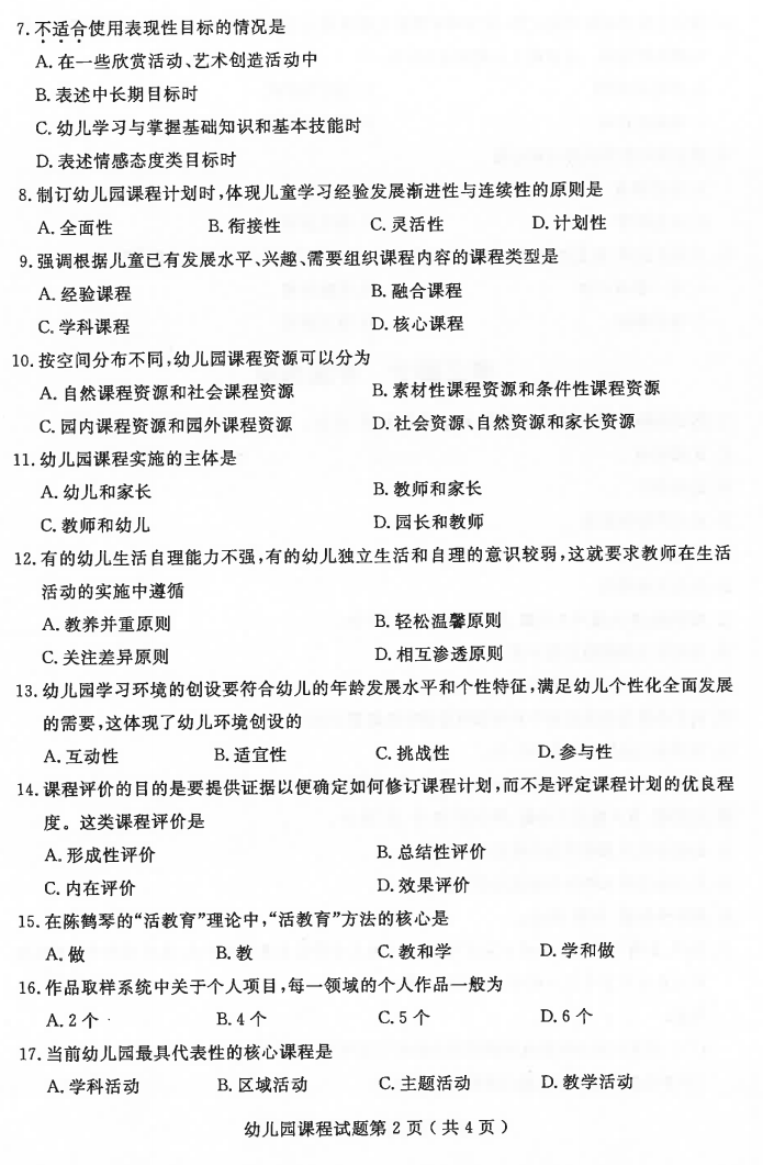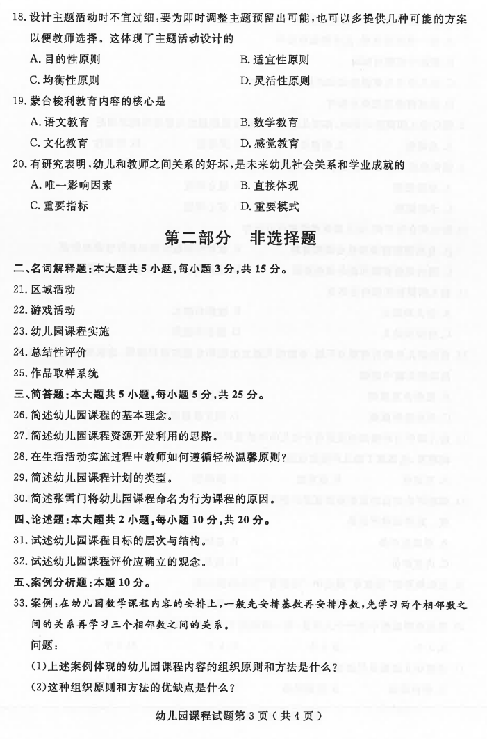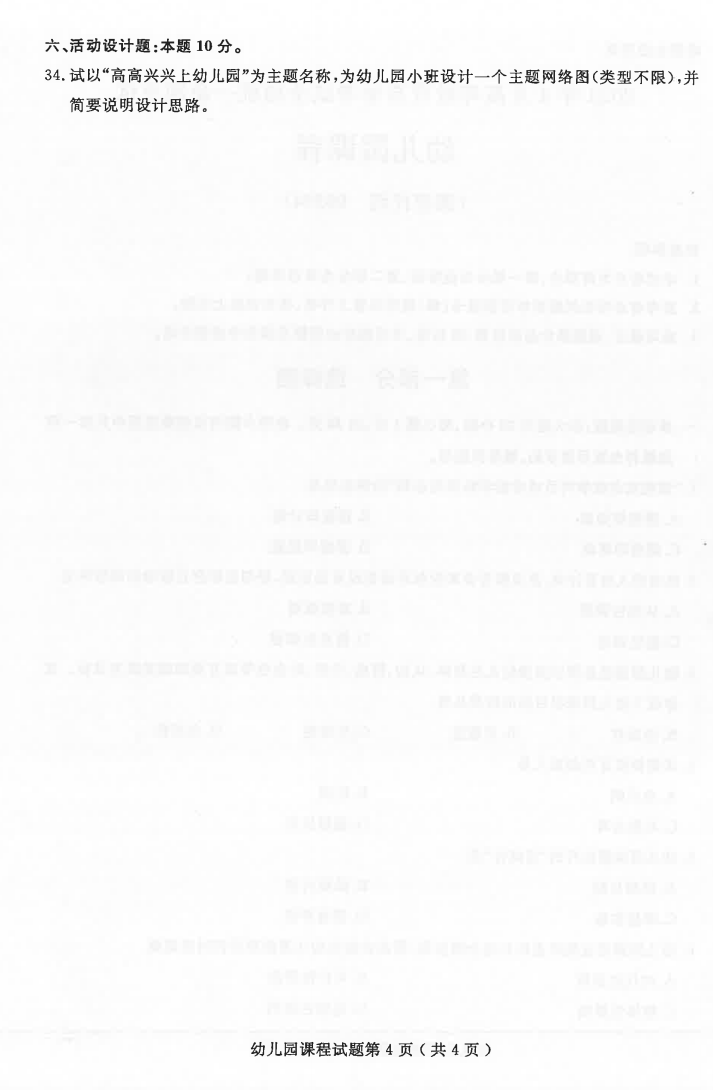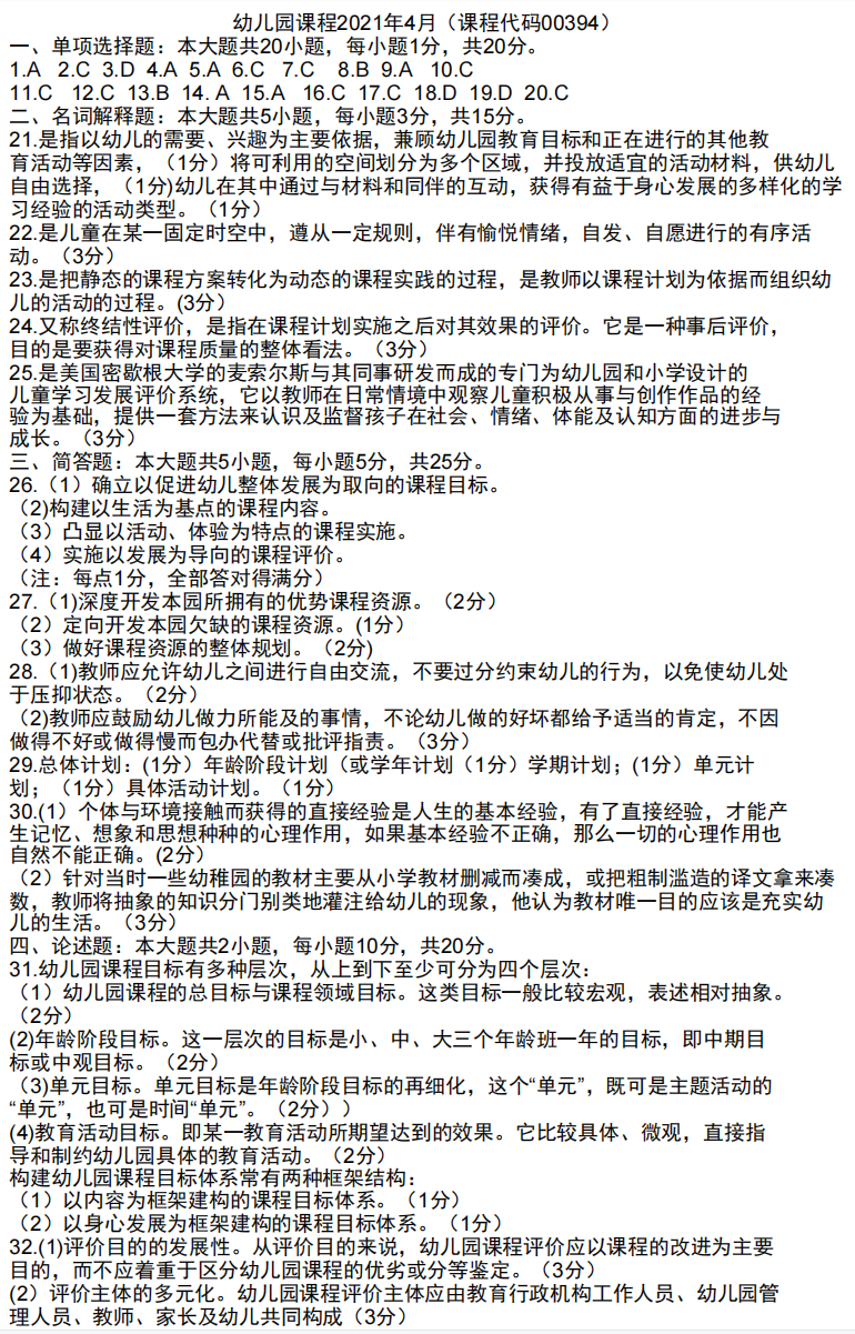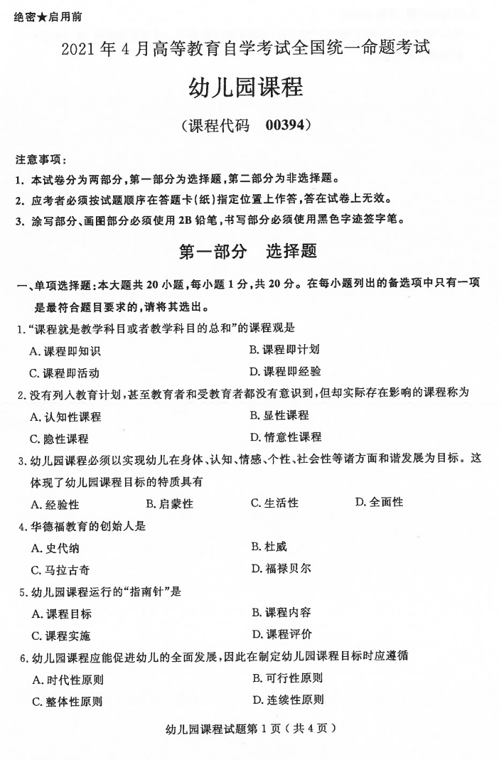 2021年04月贵州省自考00394幼儿园课程真题及答案