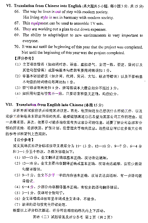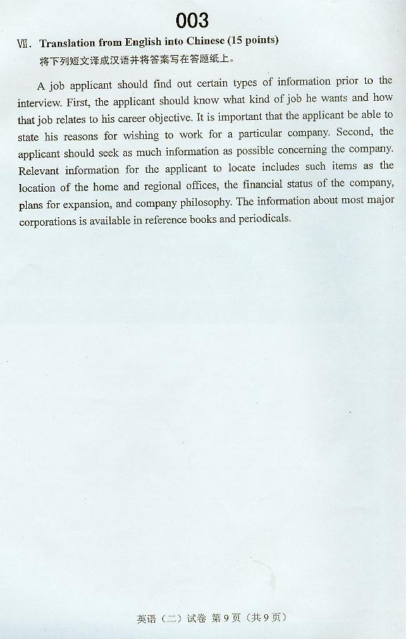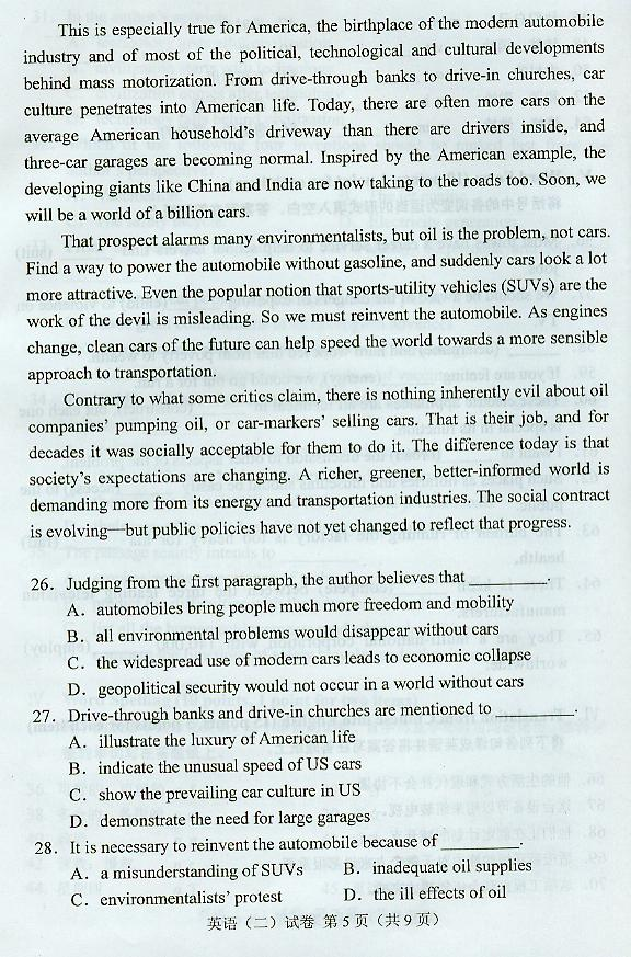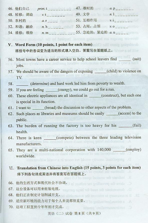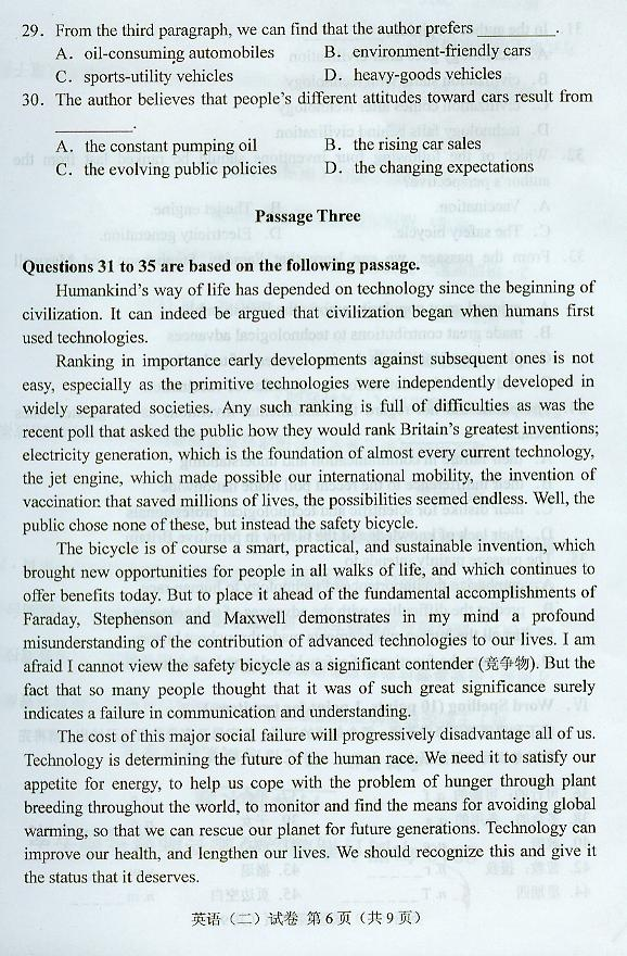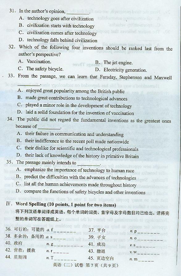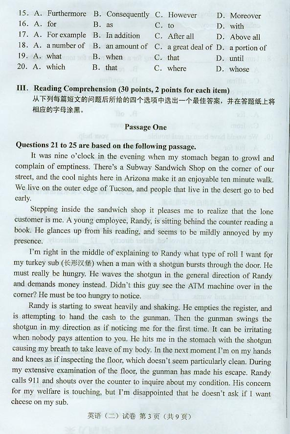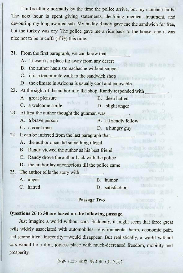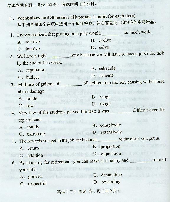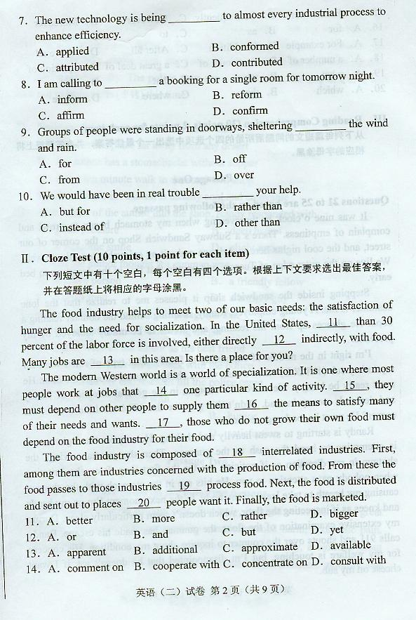 英语(二) 试卷