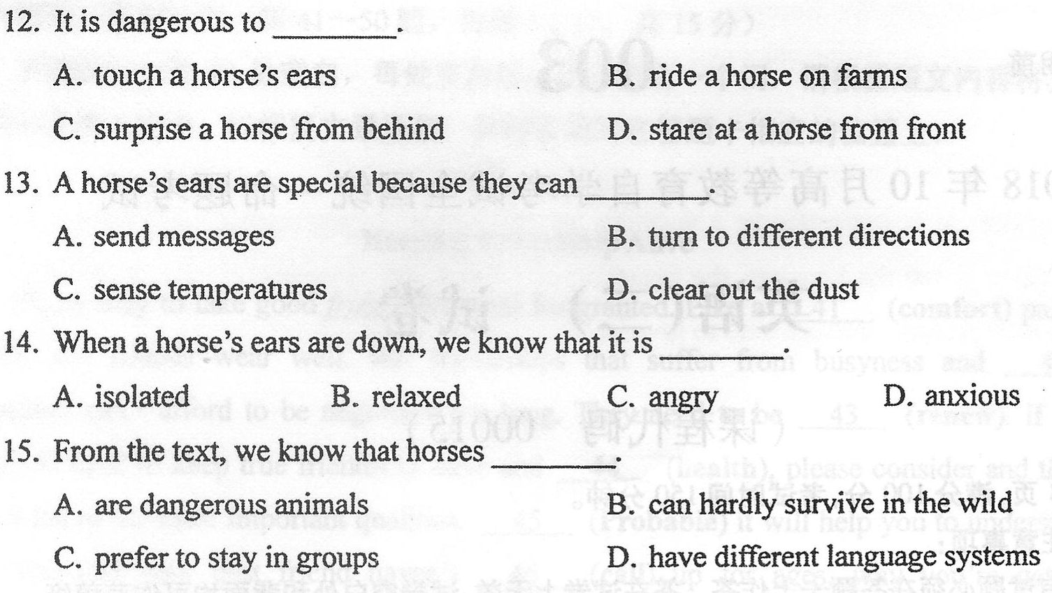 4) When a horse’s ears are down, we know that it is________.
