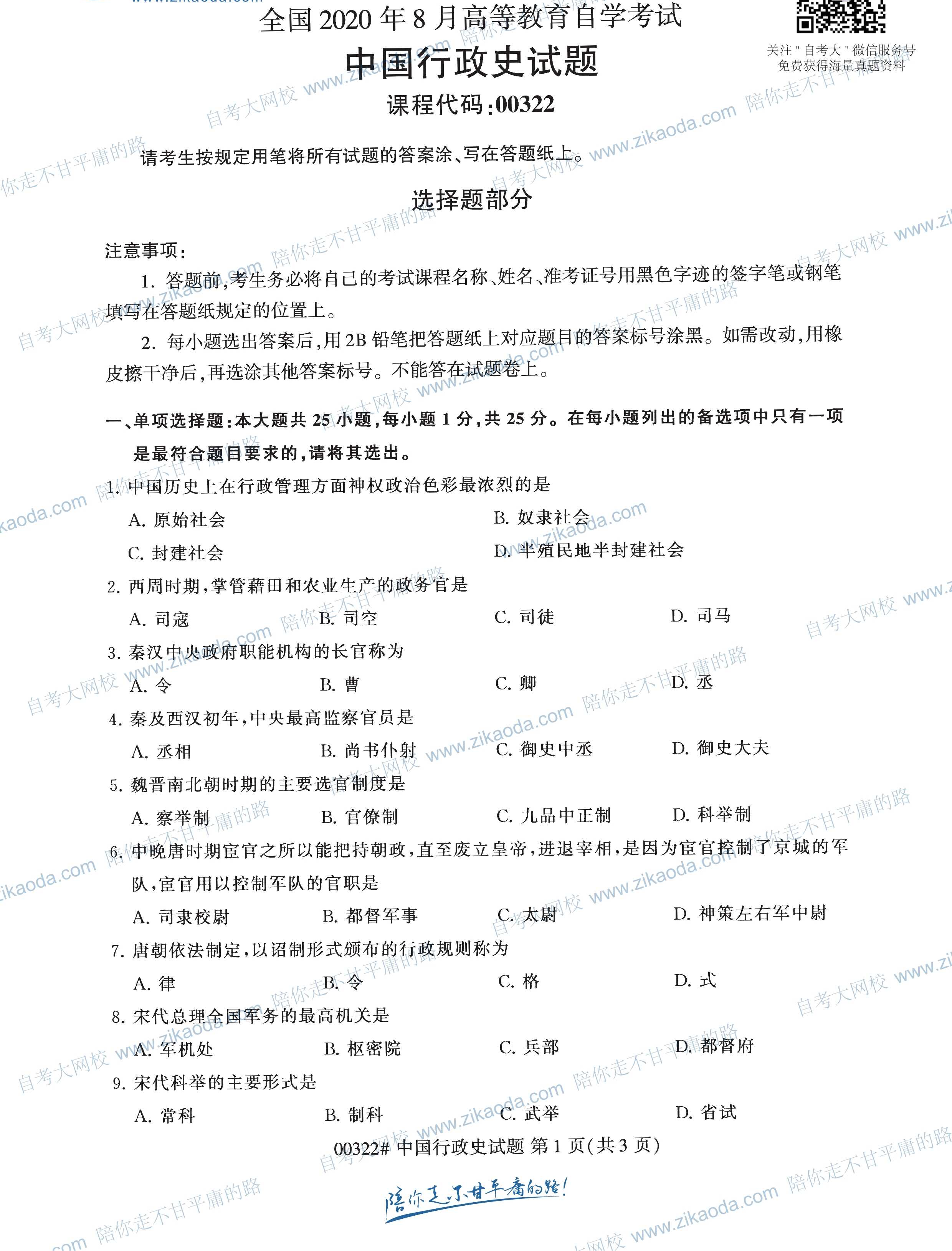 2020年08月贵州省自考中国行政史真题试卷答案解析