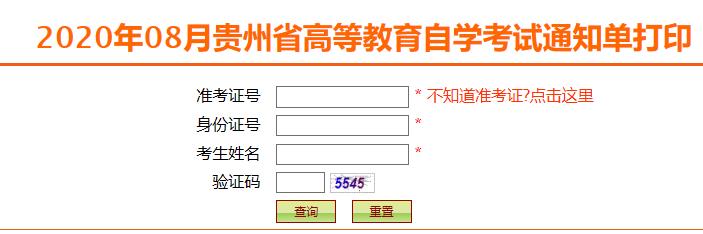 1.登录 贵州省高等教育自学考试通知单打印入口