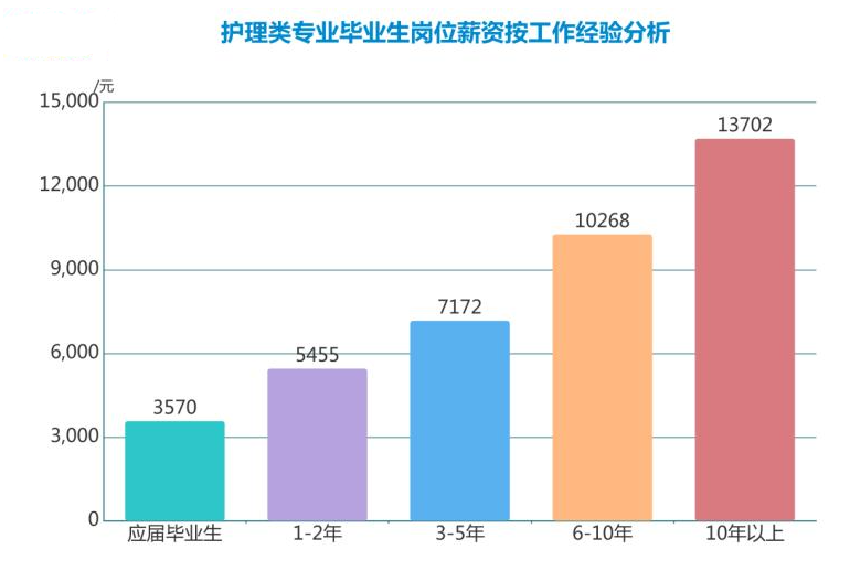 护理专业毕业的考生,其薪资待遇和经验有正比关系,如下图所示: